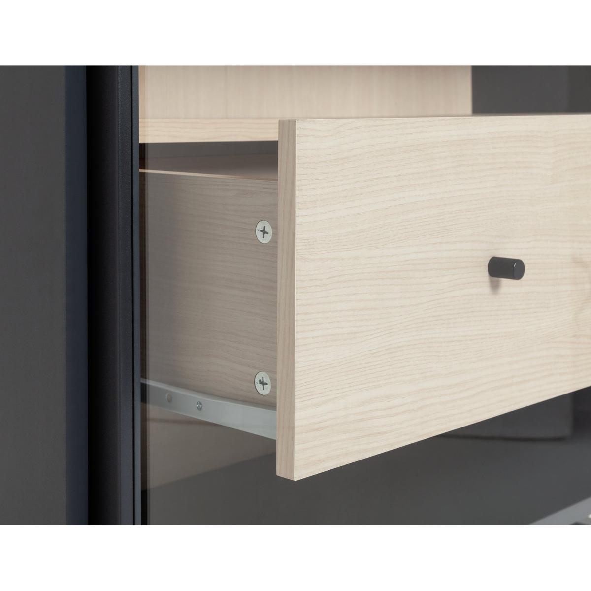 What a showoff. Create a gorgeous feature in any room with our Jadon Glass Display Unit. Ultra-smart dark grey wood effect on the outside contrasts strikingly with the light oak effect inside. Warm, inviting and utterly modern, it's the perfect place to display hardback books, beautiful stemware, pottery or any other collectibles you just can't keep to yourself.