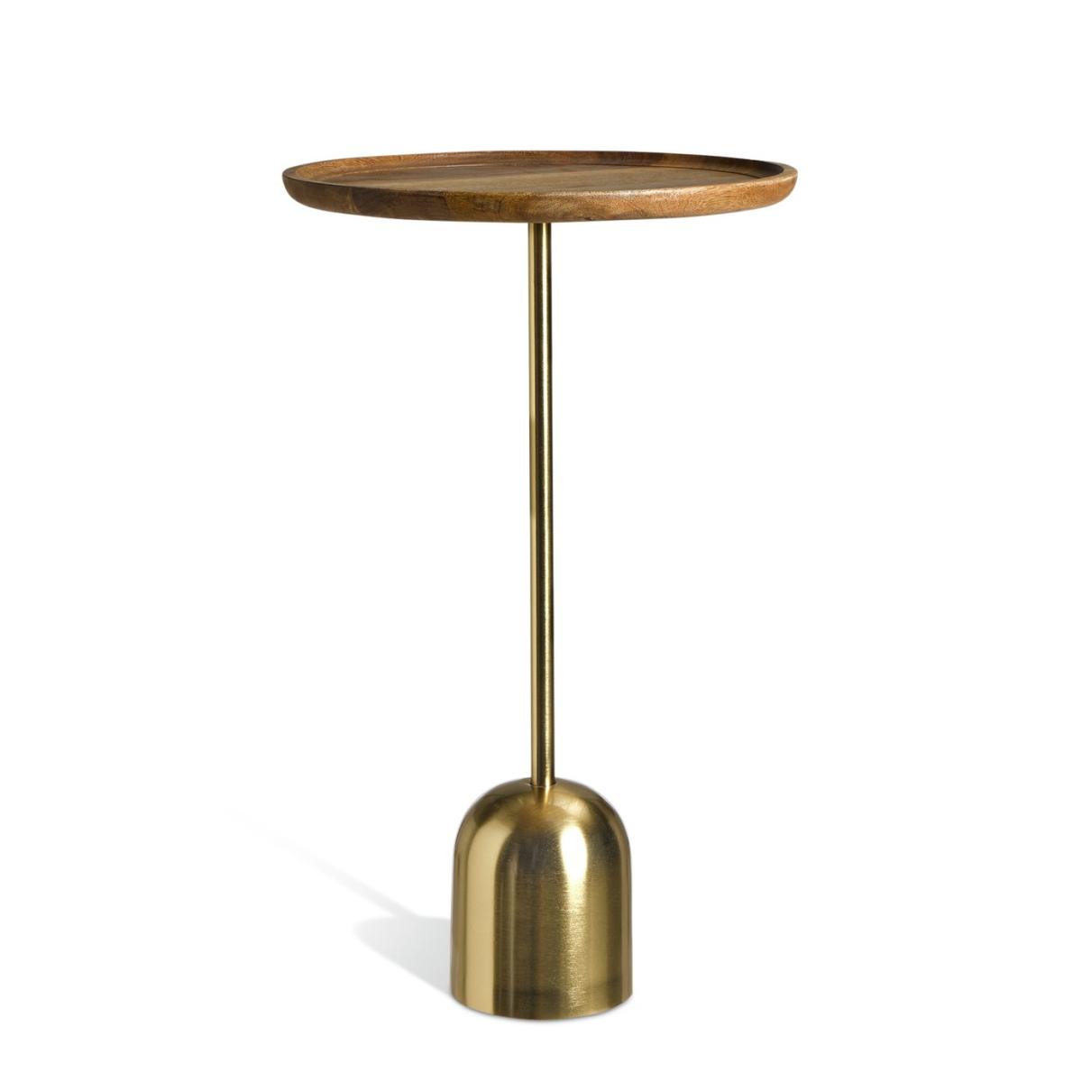 A cool way to serve something on the side. Jantis features a natural wooden tray sitting on a burnished copper stand. Ready to hold tea, coffee or cocktails. It's your call. There's space for a lamp or that novel you are halfway through too. This is an elegant and timeless piece that sits comfortably in most decors. Don't mind if I do. Part of the Jantis collection. Size H 52, W 34, D 34cm. Diameter 34 cm. Made from wood and steel. Weight 3.5kg. Maximum load weight 7kg. Package Dimensions: Package 1 dimensions: H55, W38, D38cm. Package 1 weight: 5.1kg. General information: Manufacturer's 1 year guarantee.