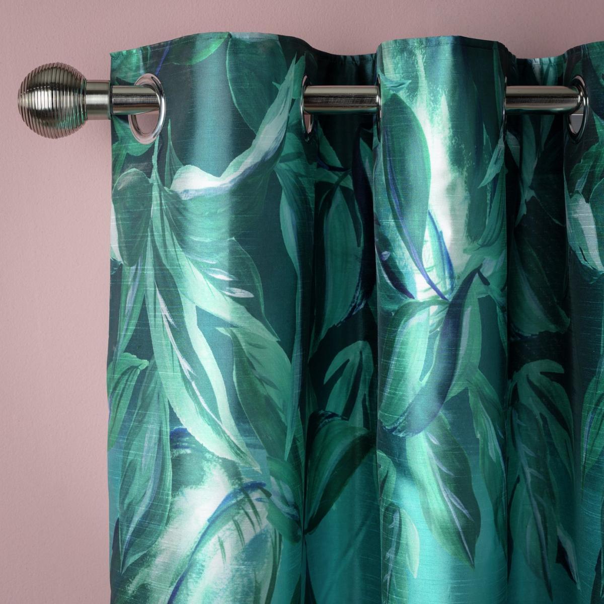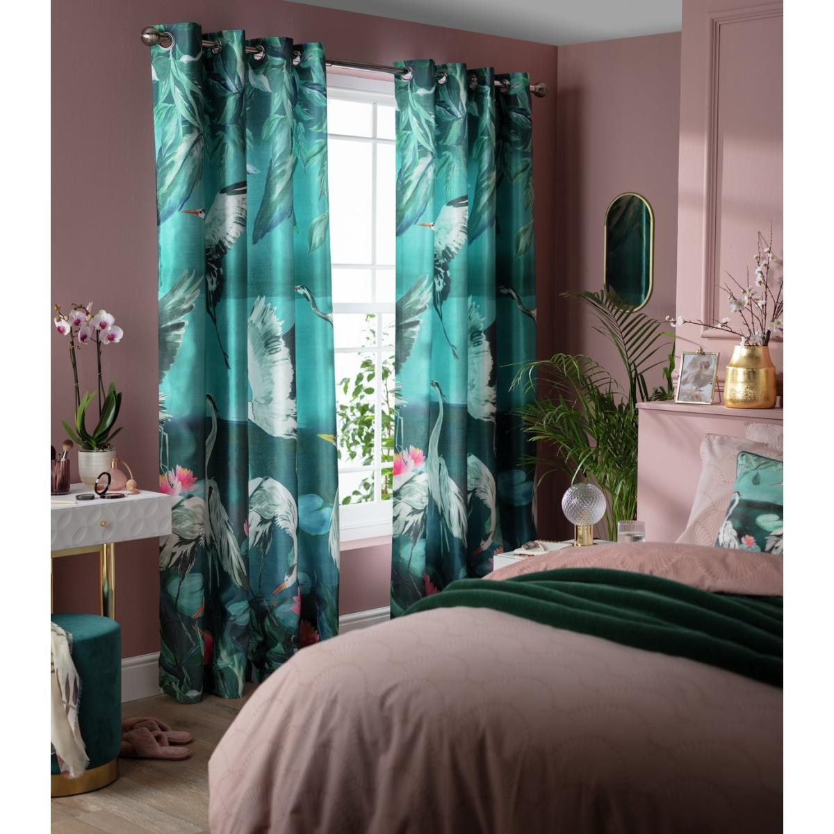 Habitat Japonica Crane faux Silk Eyelet Lined Curtain -Green