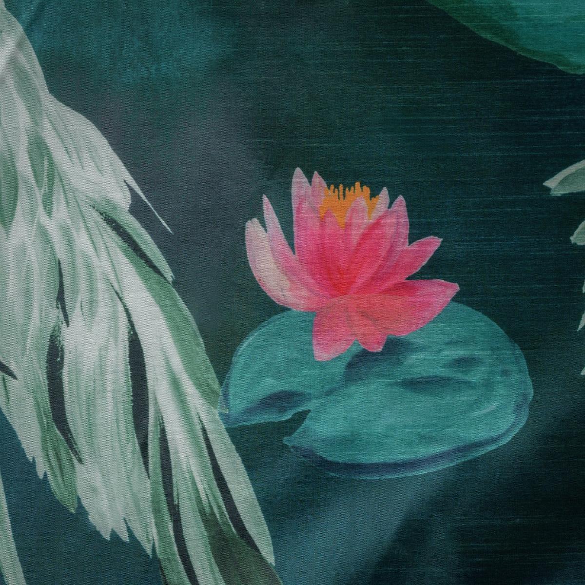 Calming curtains. Featuring an all-over waterscape with vibrant pink lily pads and deep blue hues. How very zen. Fully lined and made from faux silk, they feel luxurious to the touch while blocking out unwanted glare. Ideal for Sunday snoozes or movie-marathons. With eyelet headings, it's easy to just slide them on a pole and you're ready to go. A pair that adds interest to any room.