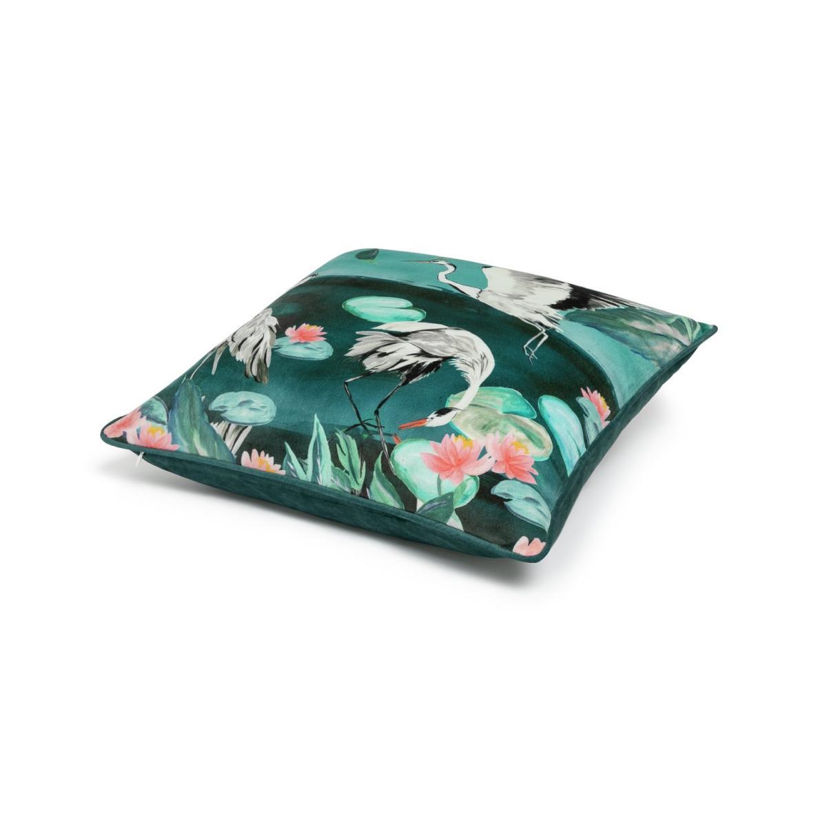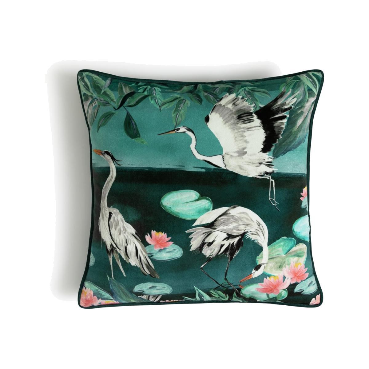 Habitat Japonica Crane Patterned Cushion - Teal - 43x43cm