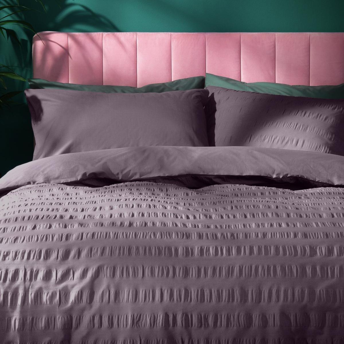 Puckered and pretty. Snuggle up. Our charcoal reversible duvet features classic seersucker to keep it looking fresh and fabulous. A great choice if you're looking for a bedroom makeover and want to create a bit of a statement. Flip it over to its smooth side when you feel like a change. Seersucker is easy to keep looking good. Just pop the polycotton mix in the wash, there's no need to iron before it goes back on the bed. The naturally gathered design will look as fresh as hotel sheets. Fabulous.