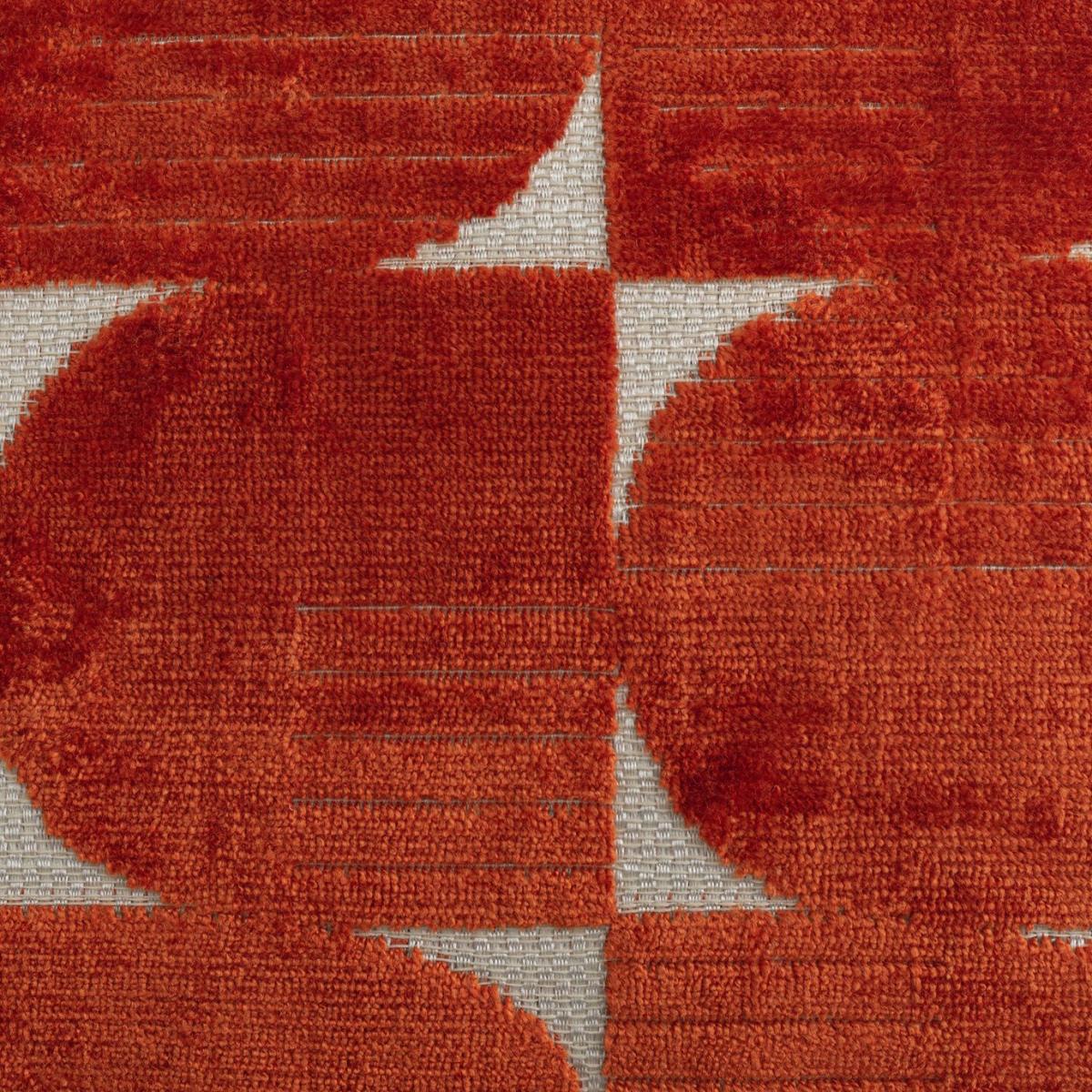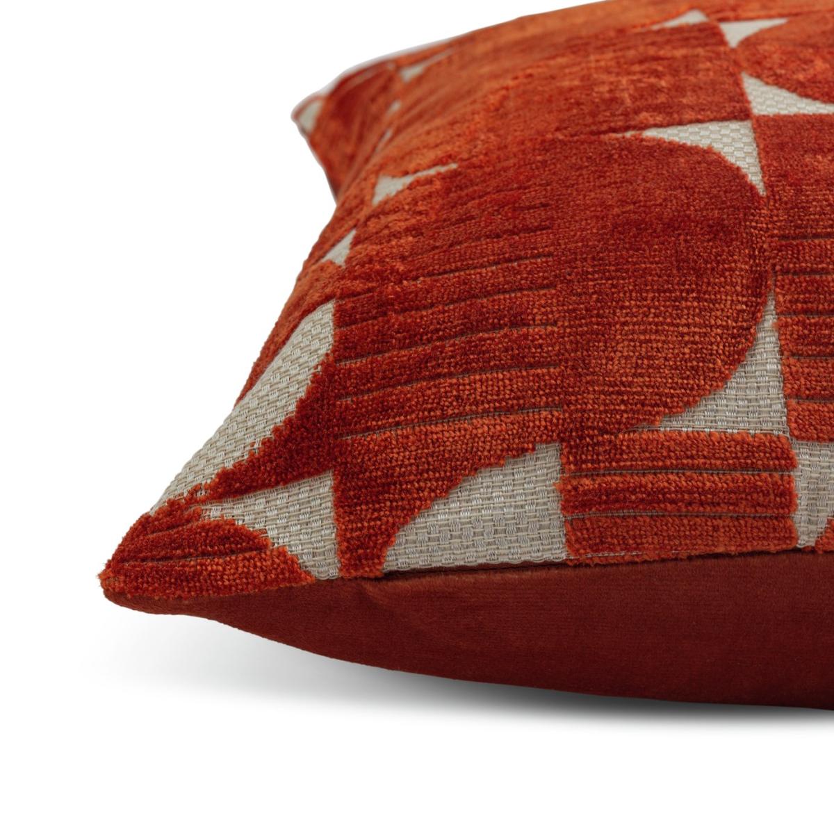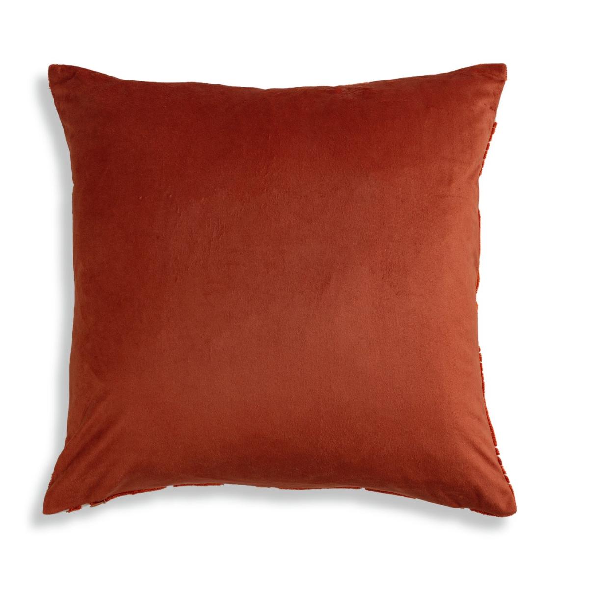 A comforting pop of Mid-Century style. With its cut velvet effect, this rust coloured Jacquard design cushion will add a warm focal point to a sofa, chair or bed. Plumply stuffed and snuggly soft. The zip off cover is washable making it easy to keep looking tip top and fresh as new. Zip fastening. Cover 59% polyester, 41% viscose. Size L43, W43cm. This cover is machine washable.