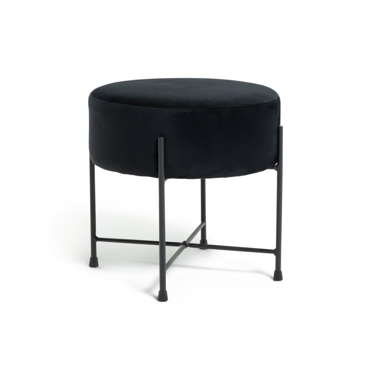 Habitat Jax Velvet Footstool - Black
