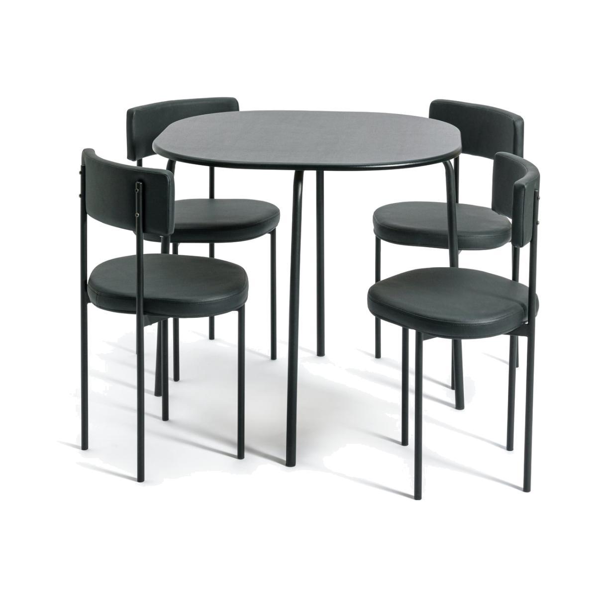 This dining set strikes a sleek, modern balance with its wood-effect table and contrasting black chairs, making it highly versatile for various interiors. I love how the round table encourages intimate, family-friendly meals and can fit well into both contemporary and minimalist spaces. It also works nicely in small dining areas or kitchens, thanks to its compact shape. Styling tips include pairing it with light, neutral walls to enhance its clean lines or adding textured tableware and cushions on the chairs for a cosy touch. To keep the look fresh, consider monochrome or subtle colour accents in your décor, ensuring the wood effect remains a understated focal point.