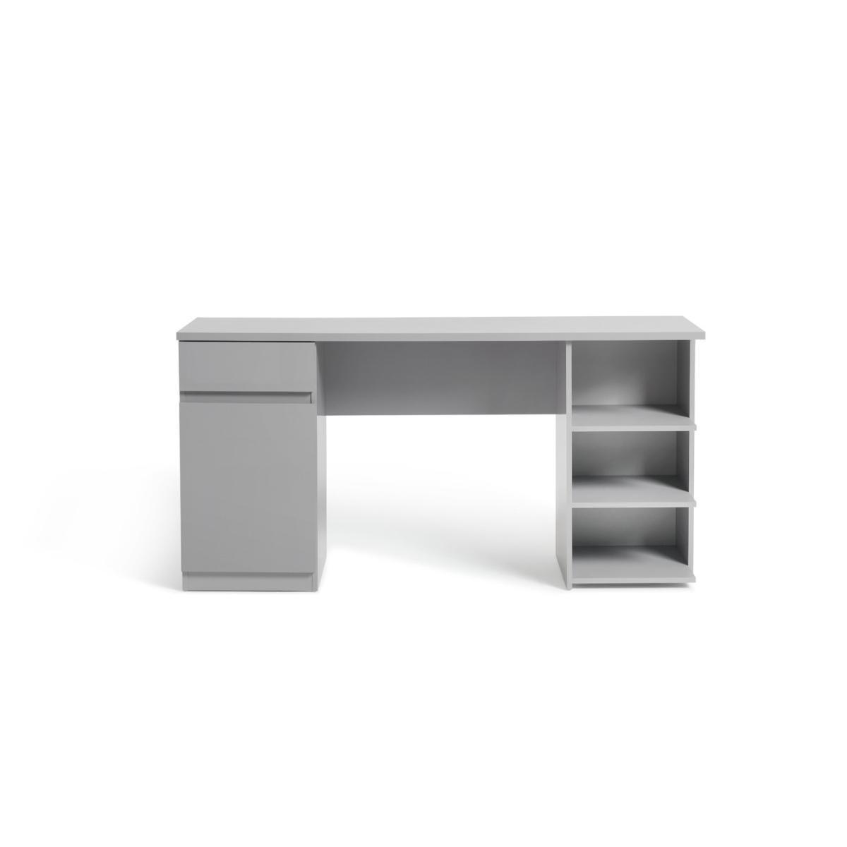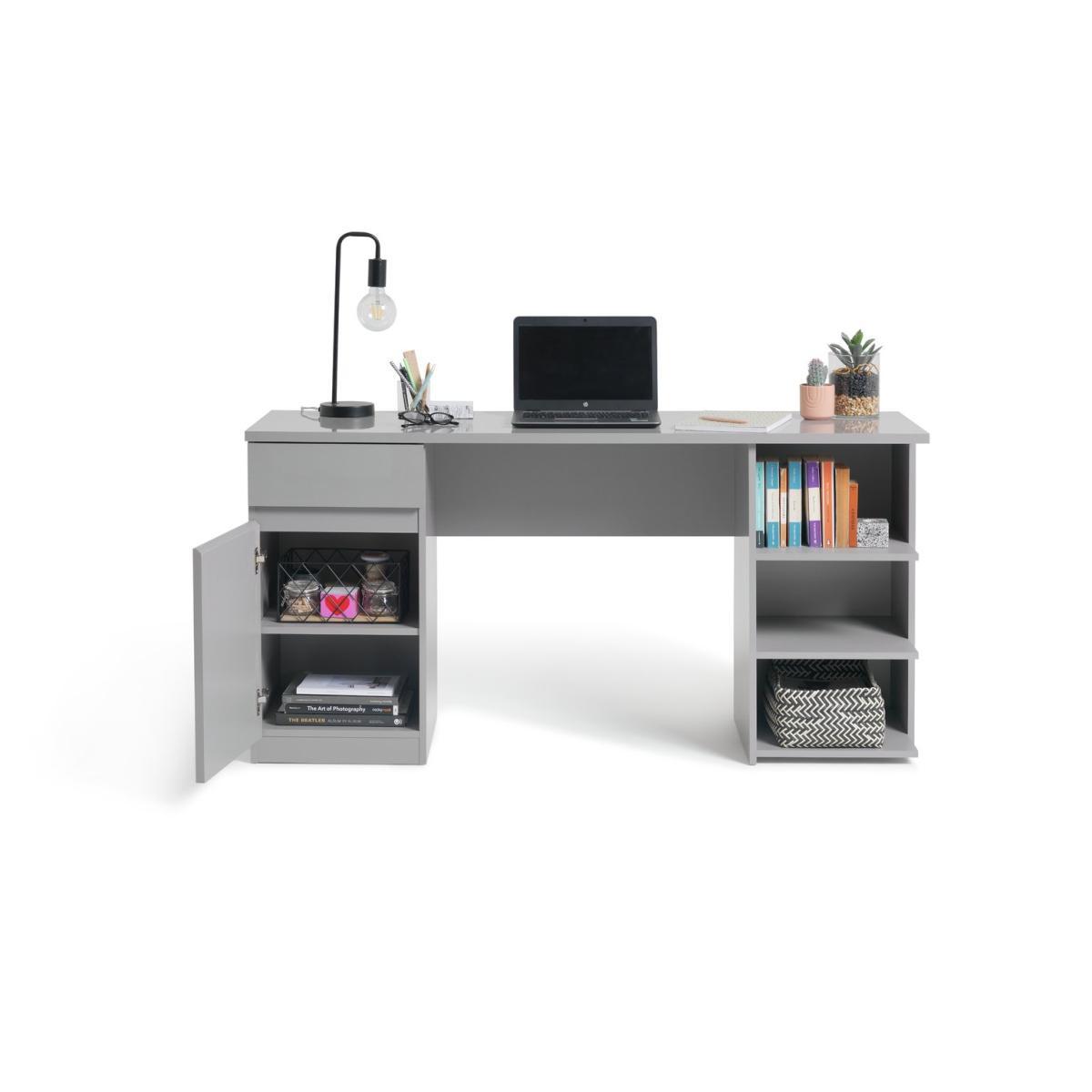 I really like this grey desk for its clean, minimal look, making it versatile across many interiors-be it contemporary, industrial, or even scandinavian-inspired spaces. It works well in home offices that need efficient storage without clutter, thanks to the handy drawer and open shelving for books or desk accessories. Practical styling tips include pairing it with a sleek desk chair in complementary tones, adding a small indoor plant for freshness, or layering with textured accessories to soften the grey. Its neutral hue makes it easy to integrate with different colour palettes and allows for flexibility if you decide to change your decor style later on.
