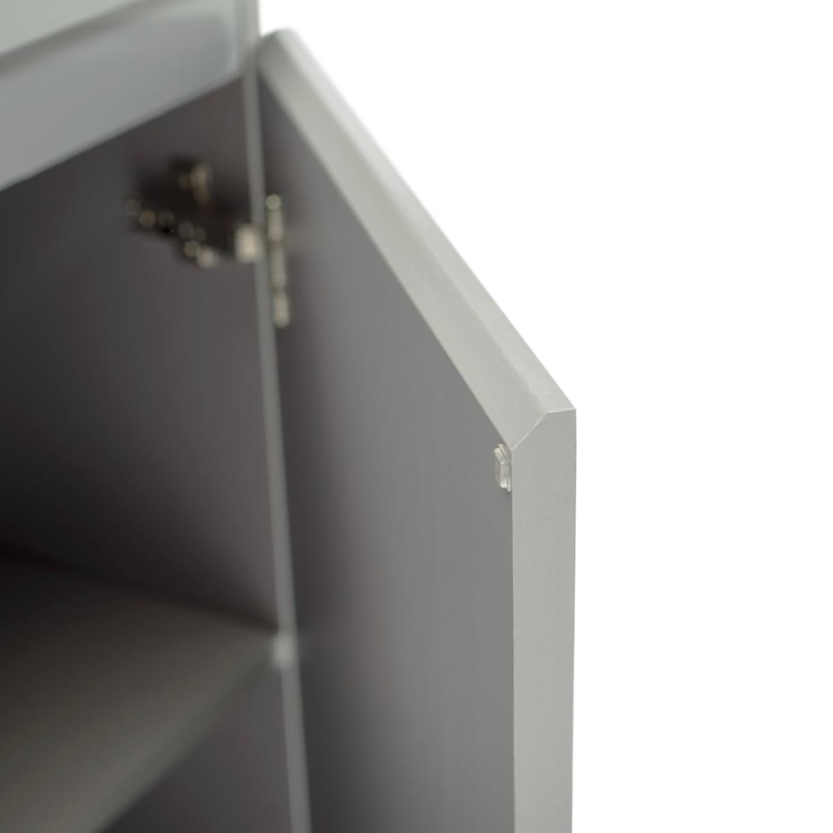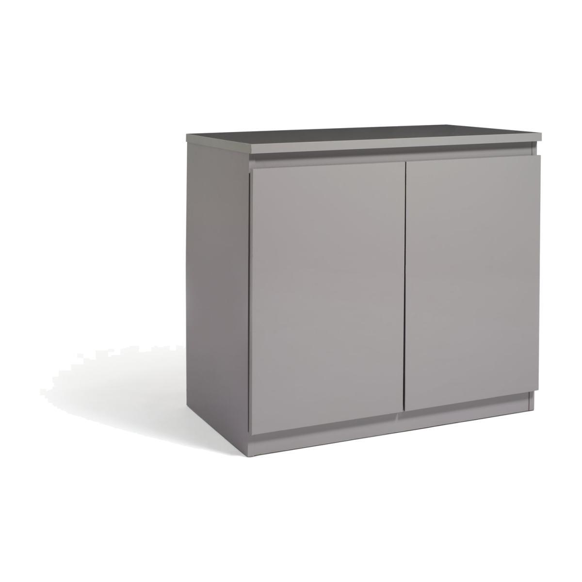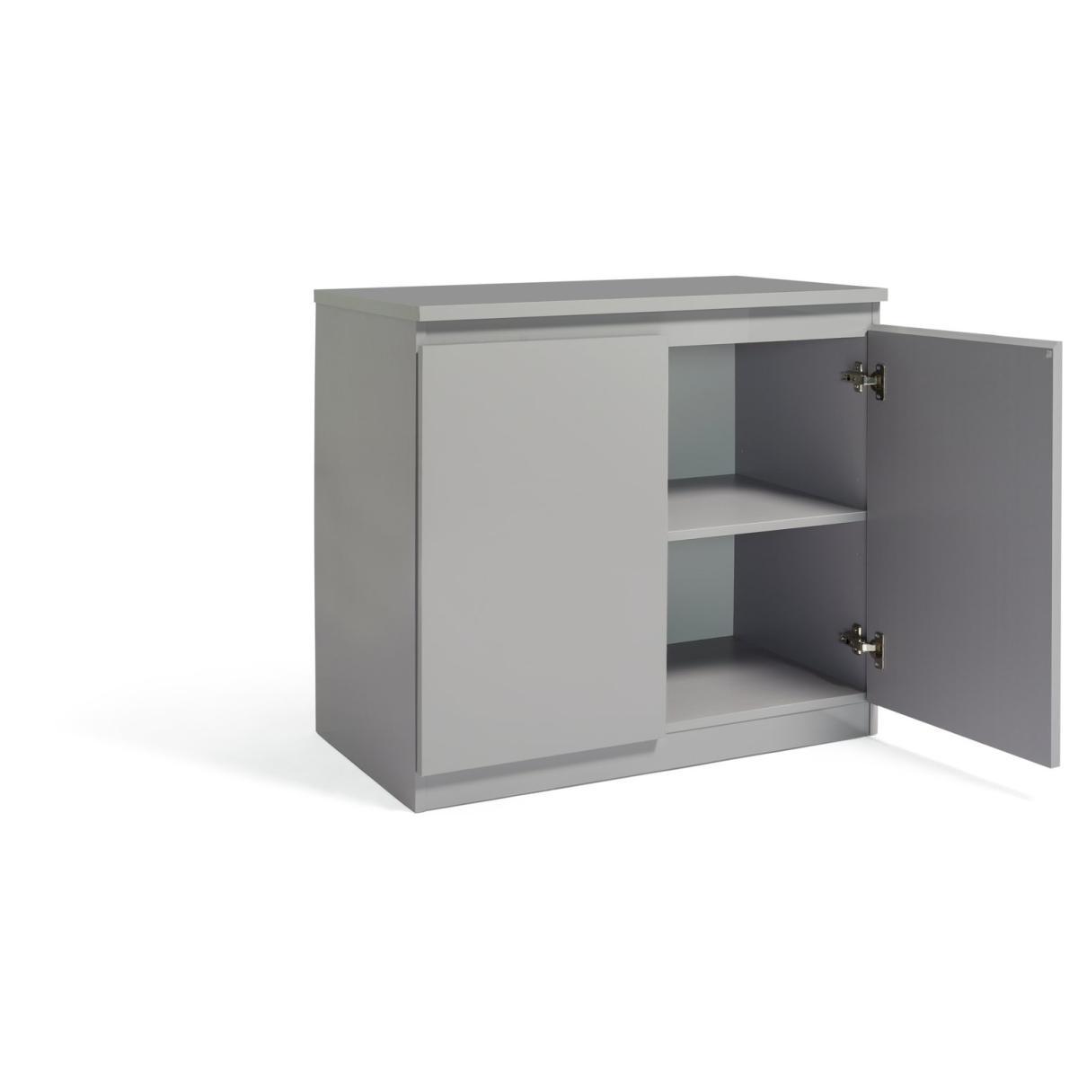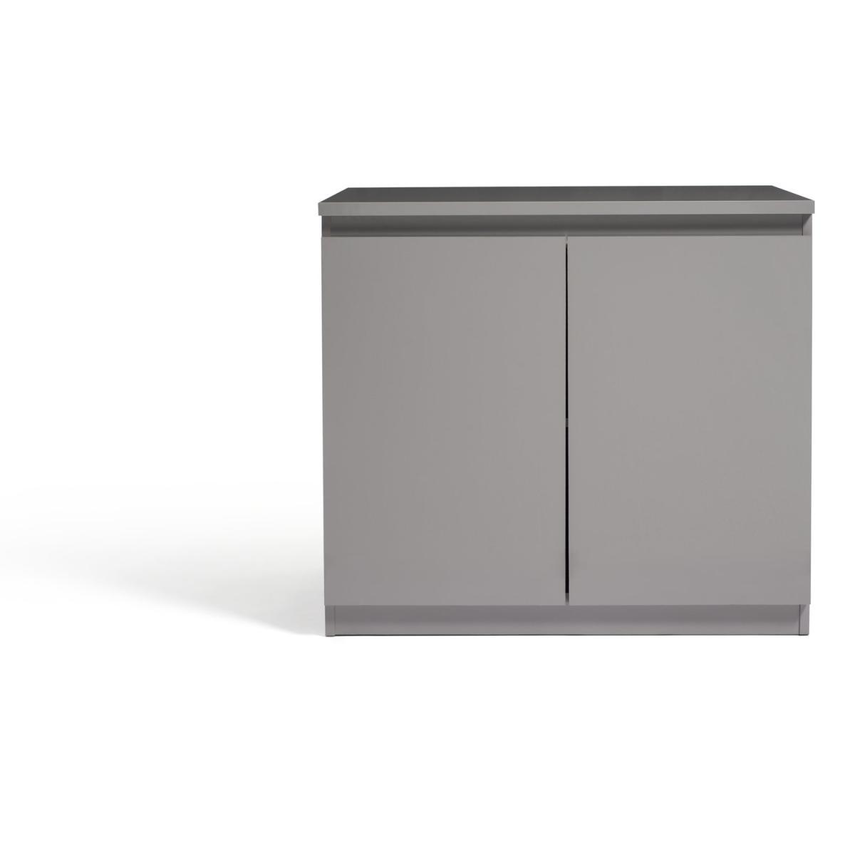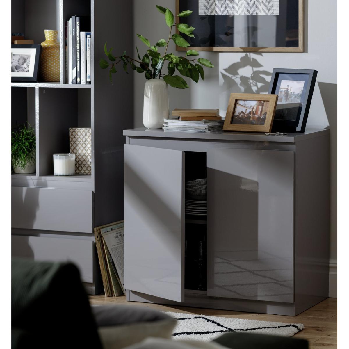 Ooodles of storage space. Clutter happily hidden out of sight. This two-door storage cabinet works equally well in your home office, living space or bedroom. Its sleek, handle-less design gives a clean, minimalist look. And with its finger-tip recessed handle 'lip', its easy to open. Internal shelves provide ample storage for books, files, clothes – you name it. And the gloss-grey finish complements any interior style. Its also super-easy to wipe clean. A perfect way to deal with all your clutter. Out of sight. Out of mind. Perfect.