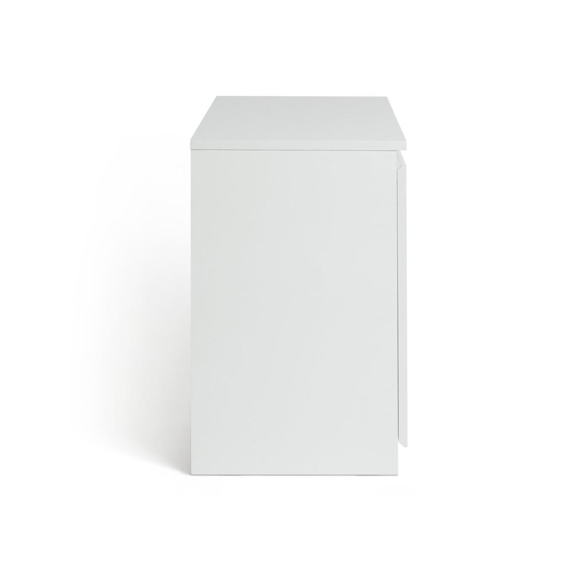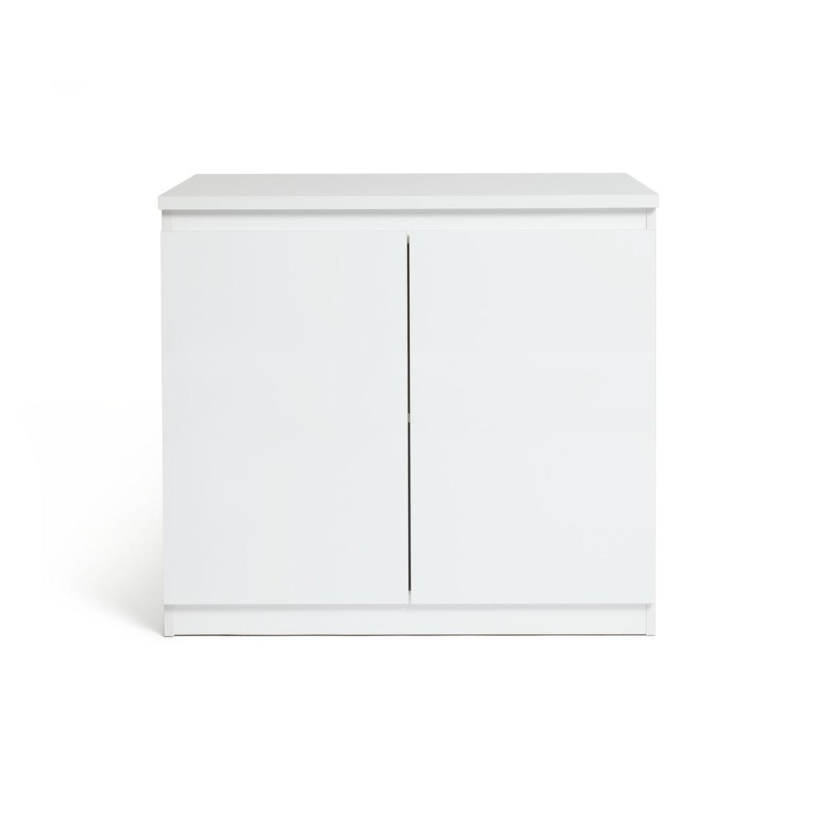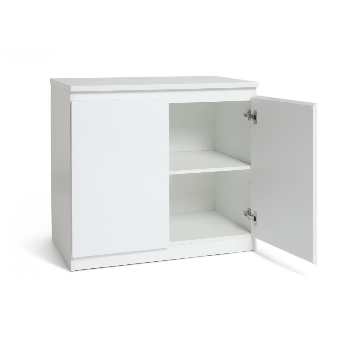 Jenson does it again. Clean lines, smooth white gloss finish, this is a sideboard with universal appeal. Perfect in your dining room, living room or bedroom, it'll help keep any room blissfully clutter-free. Two handle-less doors open to reveal a roomy cupboard with interior shelf space. It's a great no-nonsense modern space-saver.