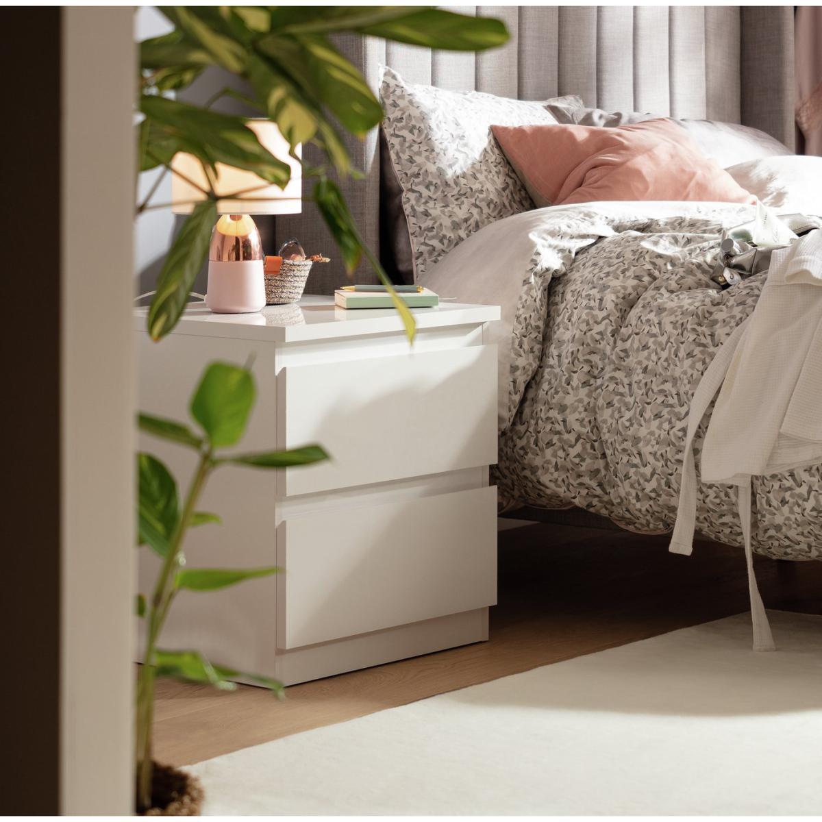 I love this grey gloss bedside table for its sleek, contemporary look that adds a touch of modern sophistication to any bedroom. Its neutral tone makes it versatile enough to fit in with both minimalist and more eclectic interiors, while the gloss finish brings a bit of light and brightness to the space. It works well in rooms with colour schemes that range from monochrome to pastel shades. For styling tips, consider pairing it with simple ceramic lamps, small vases, or framed photos for an uncluttered yet personalised setup. Practical as it is stylish, its two drawers offer ample storage for nighttime essentials, making it a functional choice that keeps the surface clutter-free.
