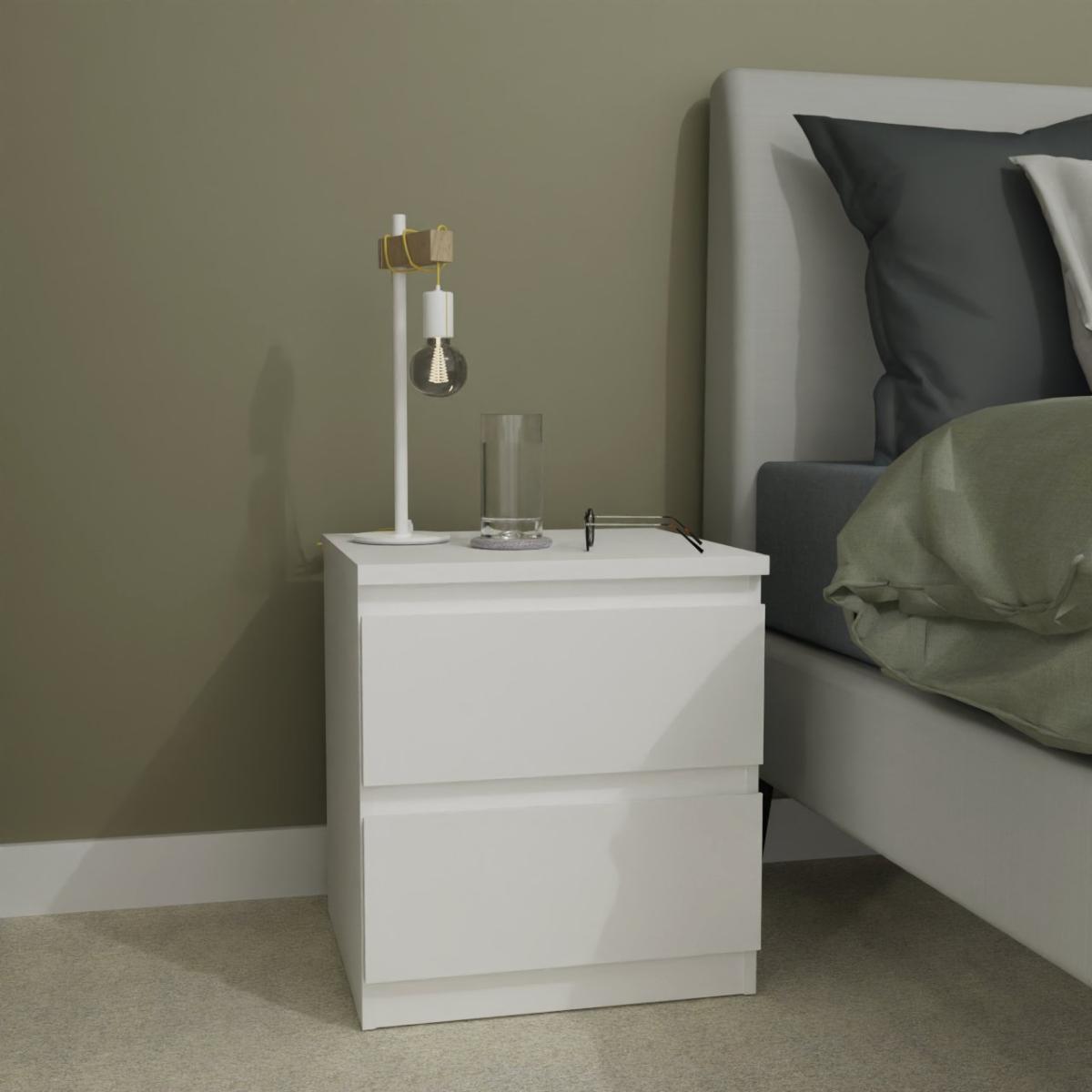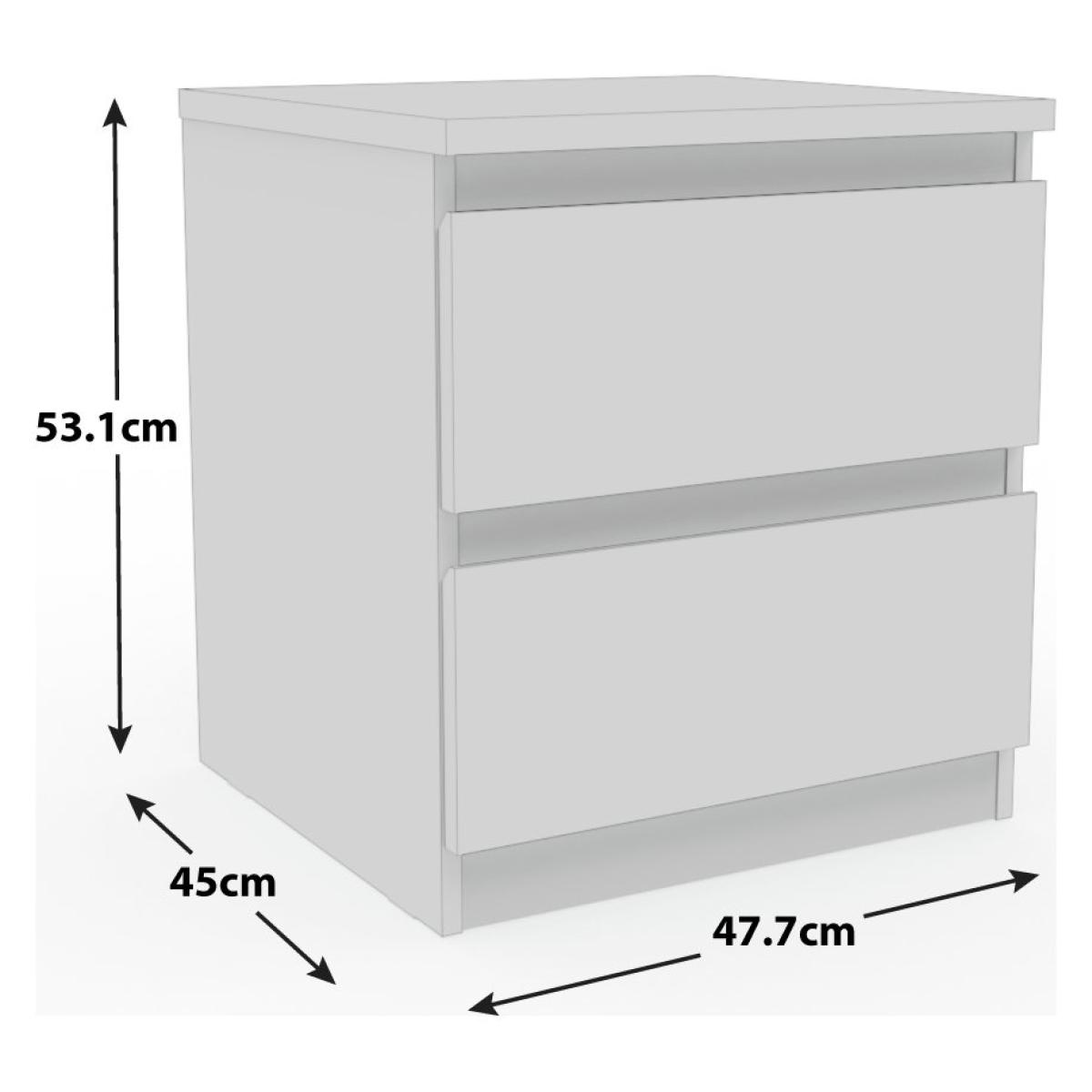 Our Jenson bedroom collection is modern and stylish. Created with clean lines and mimimalist design, it sits comfortably with any interior scheme. This bedside chest has smooth-glide, handleless drawers looking chic and unfussy. Part of the Jenson collection. Made of wood effect. 2 drawers with metal runners. Self-assembly - 1 person recommended. If this product is over 60cm high it must be securely attached to the wall to prevent overturning. Dimensions: Size H53.1, W47.5, D45cm. Internal drawer H14, W41, D38.5cm. Weight 16kg. Package Dimensions: Package 1 dimensions: H64, W46.2, D11.2cm. Package 1 weight: 16kg. General information: FSC certified meaning the materials used for this product are responsibly sourced. Manufacturer's 1 year guarantee.