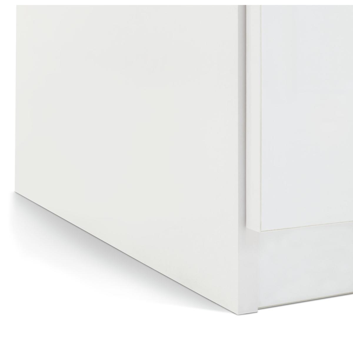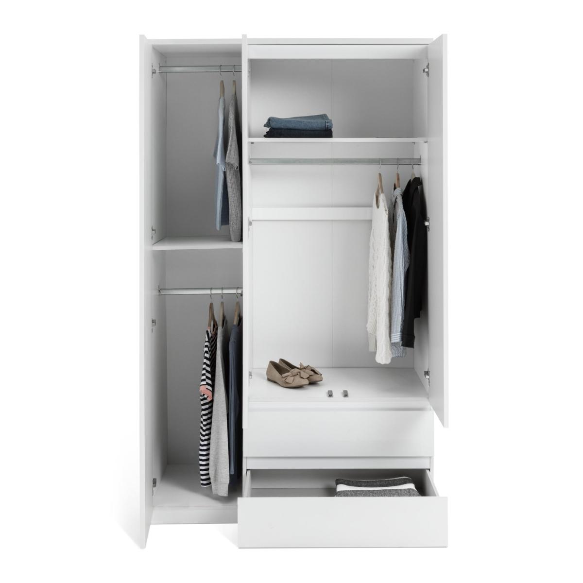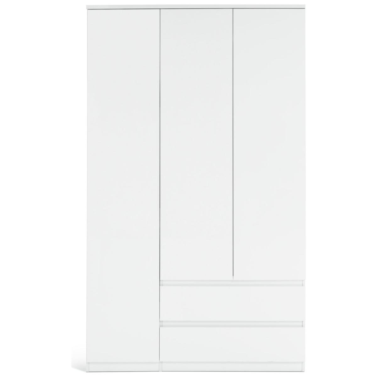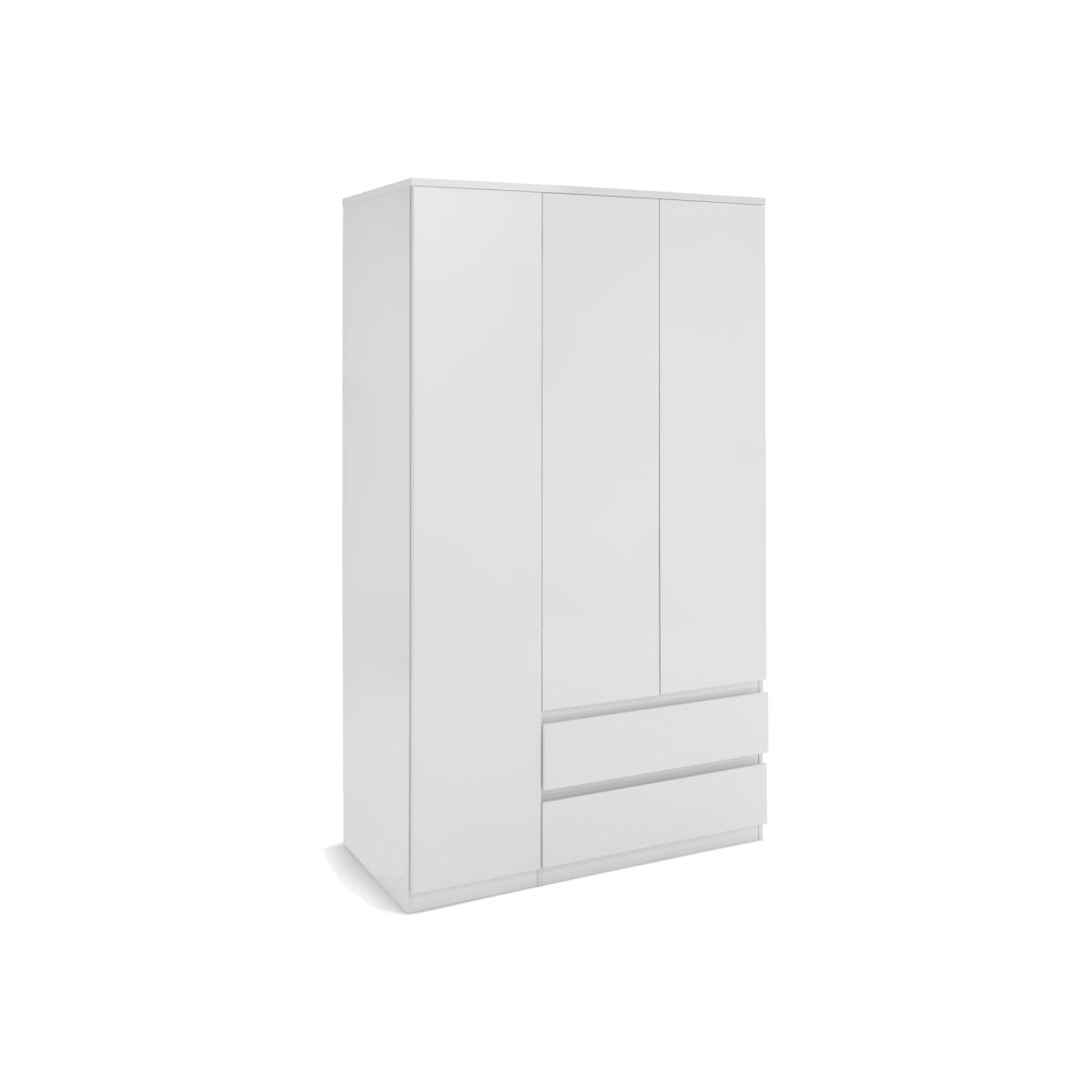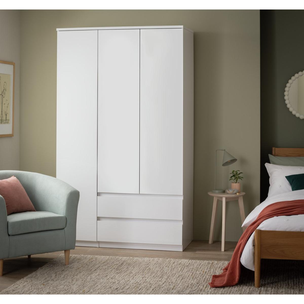 A simple, streamlined design. Our Jenson 3 door wardrobe is pared-back perfection. The 3 adjustable hanging rails keep even long clothes uncrumpled, while the 3 shelves make it easy to stay neat. Plus 2 drawers glide smoothly on metal runners. Finished in white gloss with handle-less fronts for a minimalist look. Looking for more? Just search Jenson to find matching pieces to keep things organised. Part of the Jenson collection. Made of MDF and particleboard. 3 doors. 2 drawers with metal runners. 3 adjustable hanging rails. 1 fixed shelf. 2 adjustable shelves. Self-assembly - 2 people recommended (includes wall fixings). If this product is over 60cm high it must be securely attached to the wall to prevent overturning. Dimensions: Size H202.2, W119.5, D59cm. Internal hanging space H187, W37.4, D55cm. Internal drawer H12.6, W73.1, D52.5cm. Weight 98kg. Package Dimensions: Package 1 dimensions: H10.2, W206.5, D56.6cm. Package 1 weight: 49kg. Package 2 dimensions: H10, W206.5, D60cm. Package 2 weight: 51kg. FSC certified meaning the materials used for this product are responsibly sourced. General information: We are excited to be welcoming some of our favourite HOME products into the Habitat range. Your product may arrive in Habitat or HOME packaging.