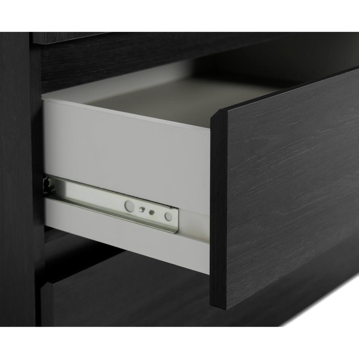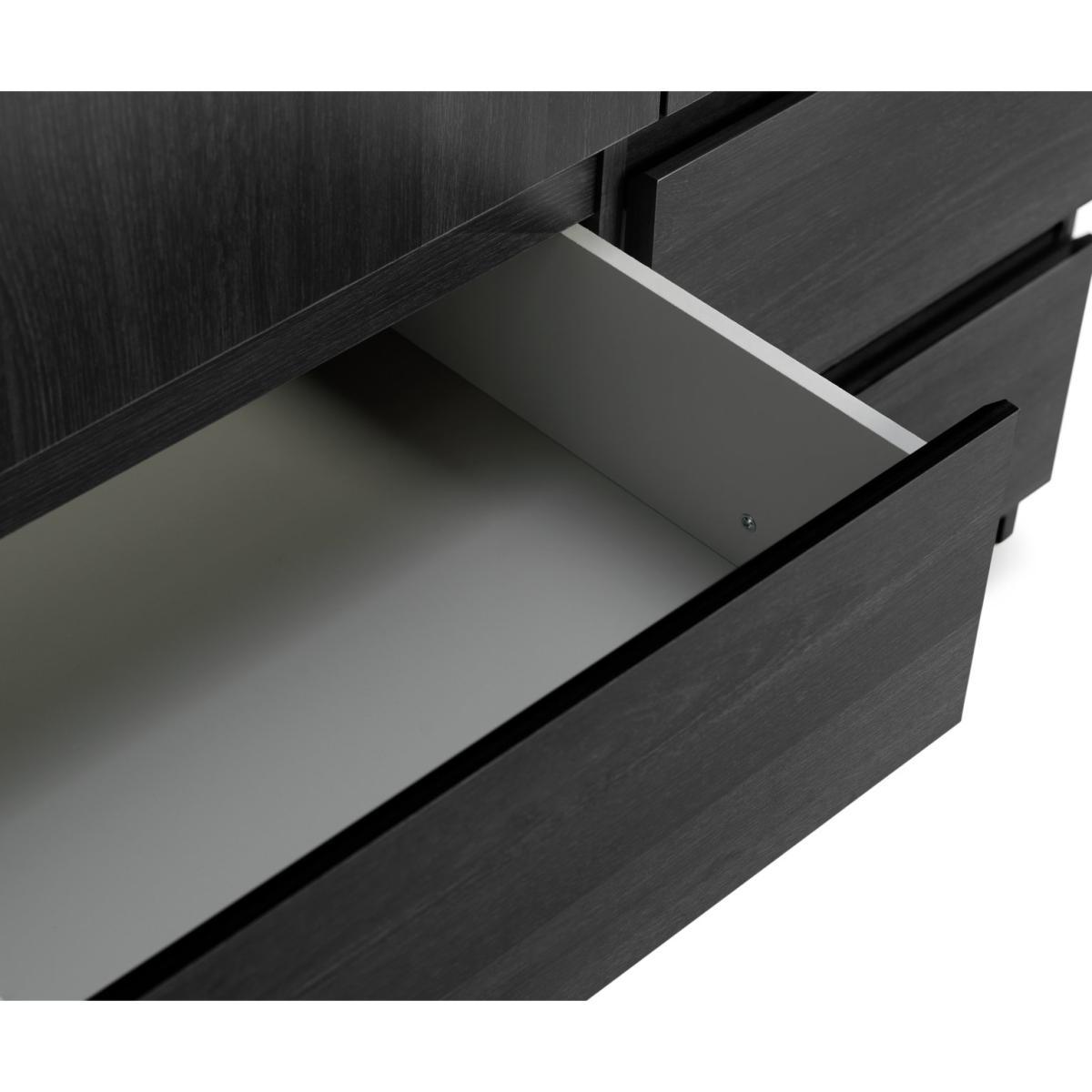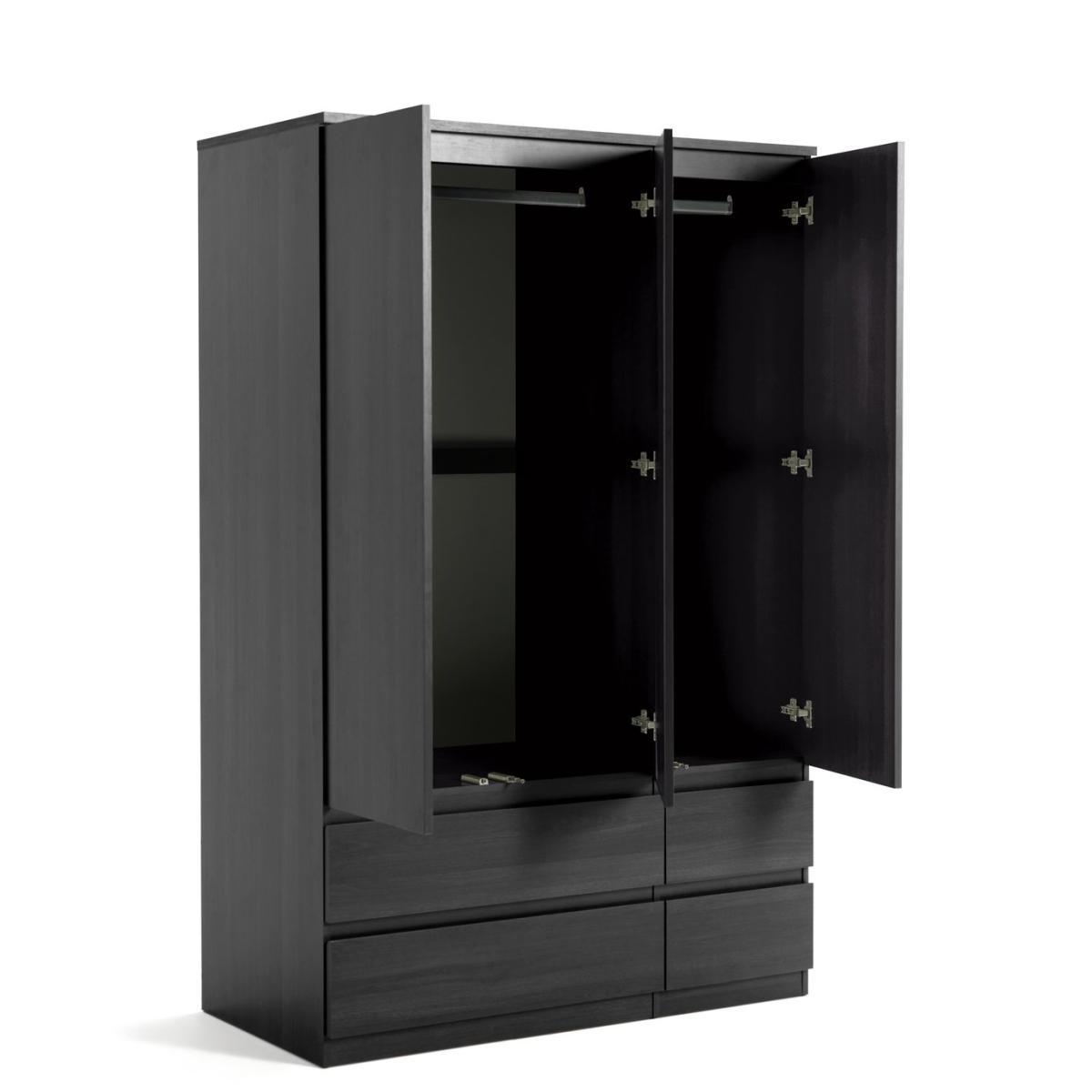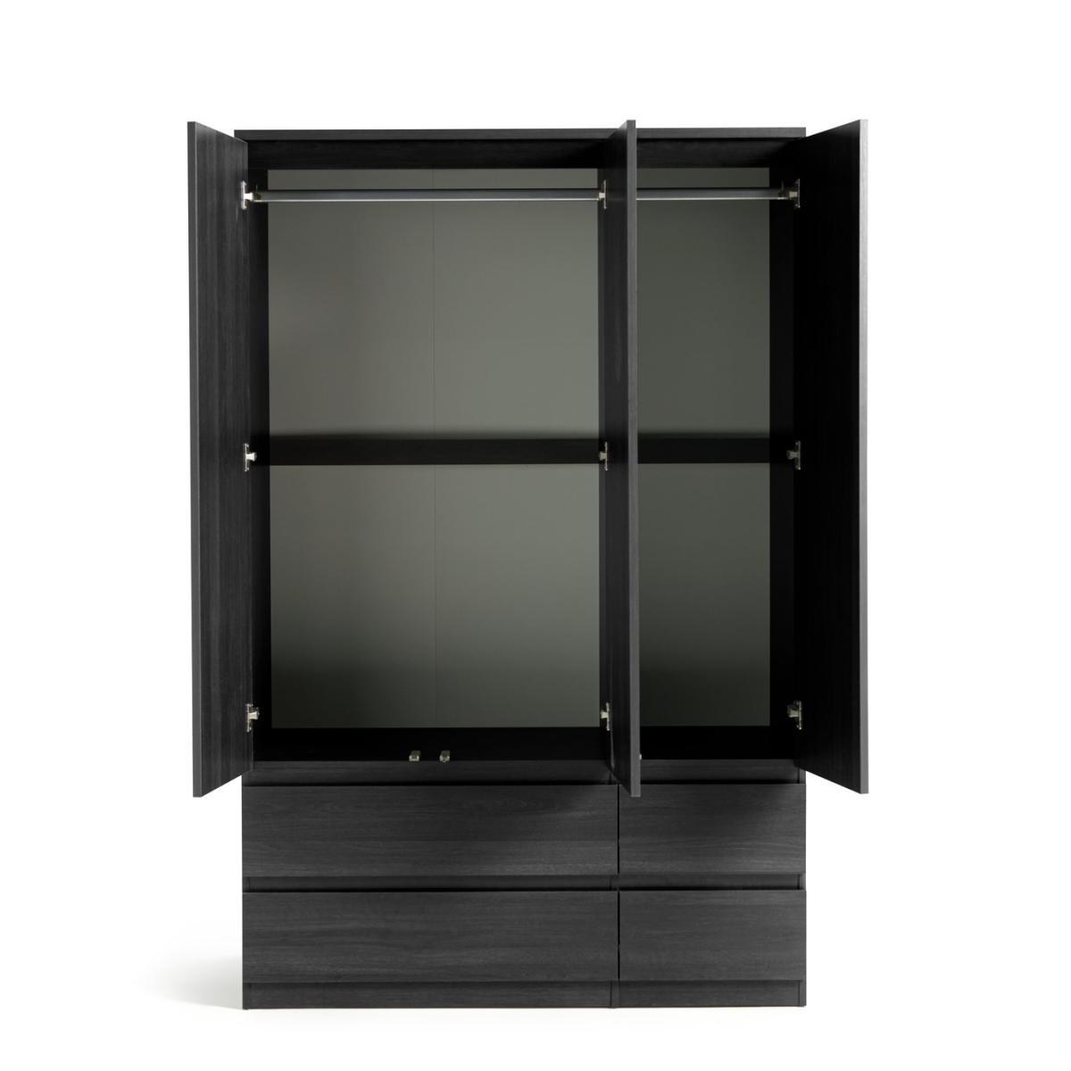 Keep it clean. Our Jenson bedroom collection is modern and stylish. Created with clean lines and minimalist design, it sits comfortably with any interior scheme you stick it into. This generously-sized wardrobe features 3 doors of hanging space and 4 drawers for organising folded clothing, shoes or anything else you want neatly kept out of sight. Finished in a black oak effect, glossy sheen for a sleek, smart look. And smooth-glide, handleless drawers look chic and unfussy.