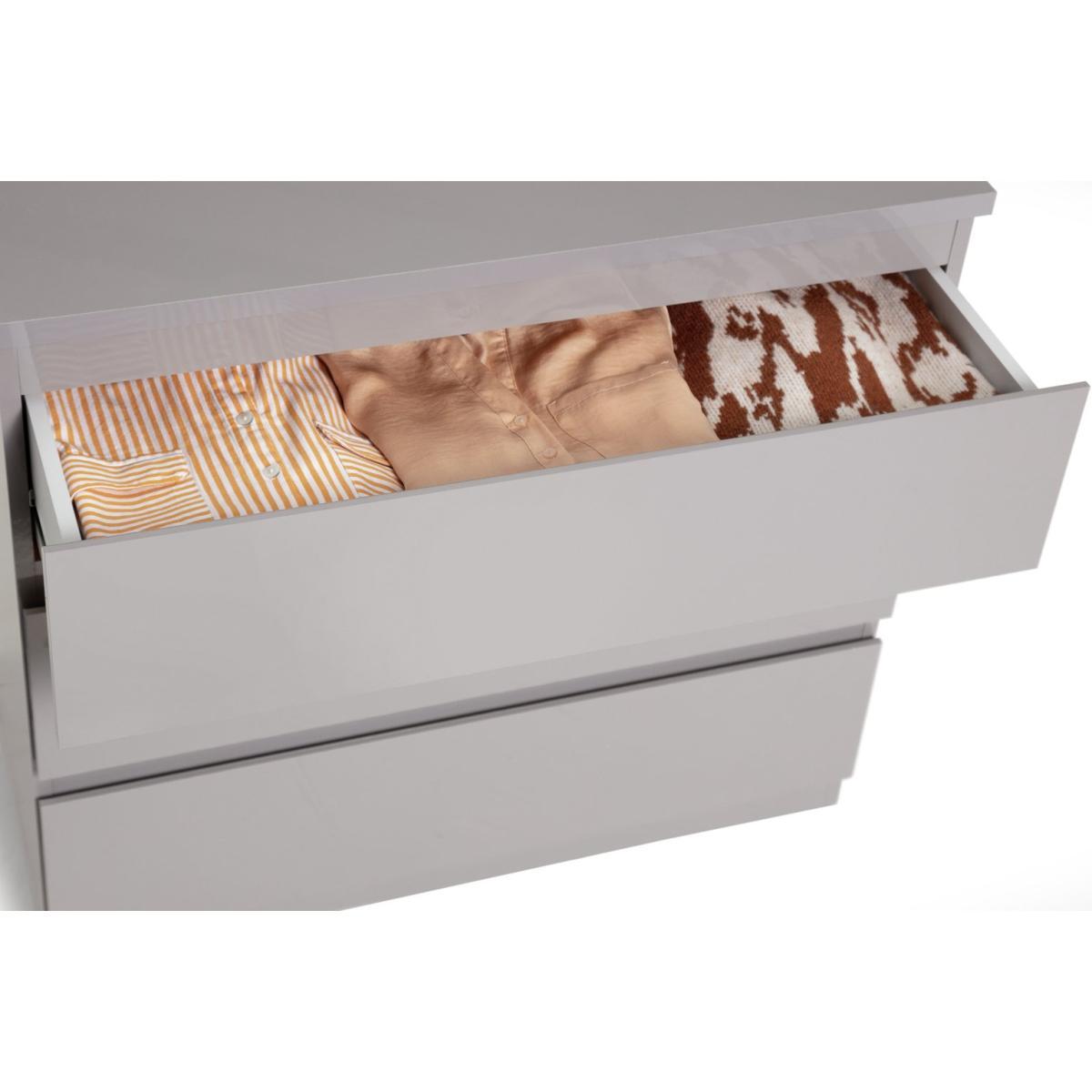I love this grey gloss chest for its sleek, contemporary look that works well in modern or minimalist interiors. Its neutral tone makes it versatile, pairing nicely with colour-rich schemes or monochrome palettes. Practical styling tips include keeping the top surface simple with a few well-chosen accessories like a small lamp or decorative tray to keep it functional yet stylish. Inside, the drawers offer plenty of storage, making it ideal for bedrooms or living spaces where organisation is key. This piece has a fresh, clean feel that anchors a room without overwhelming it, making it a great choice for those aiming for a polished yet understated look.