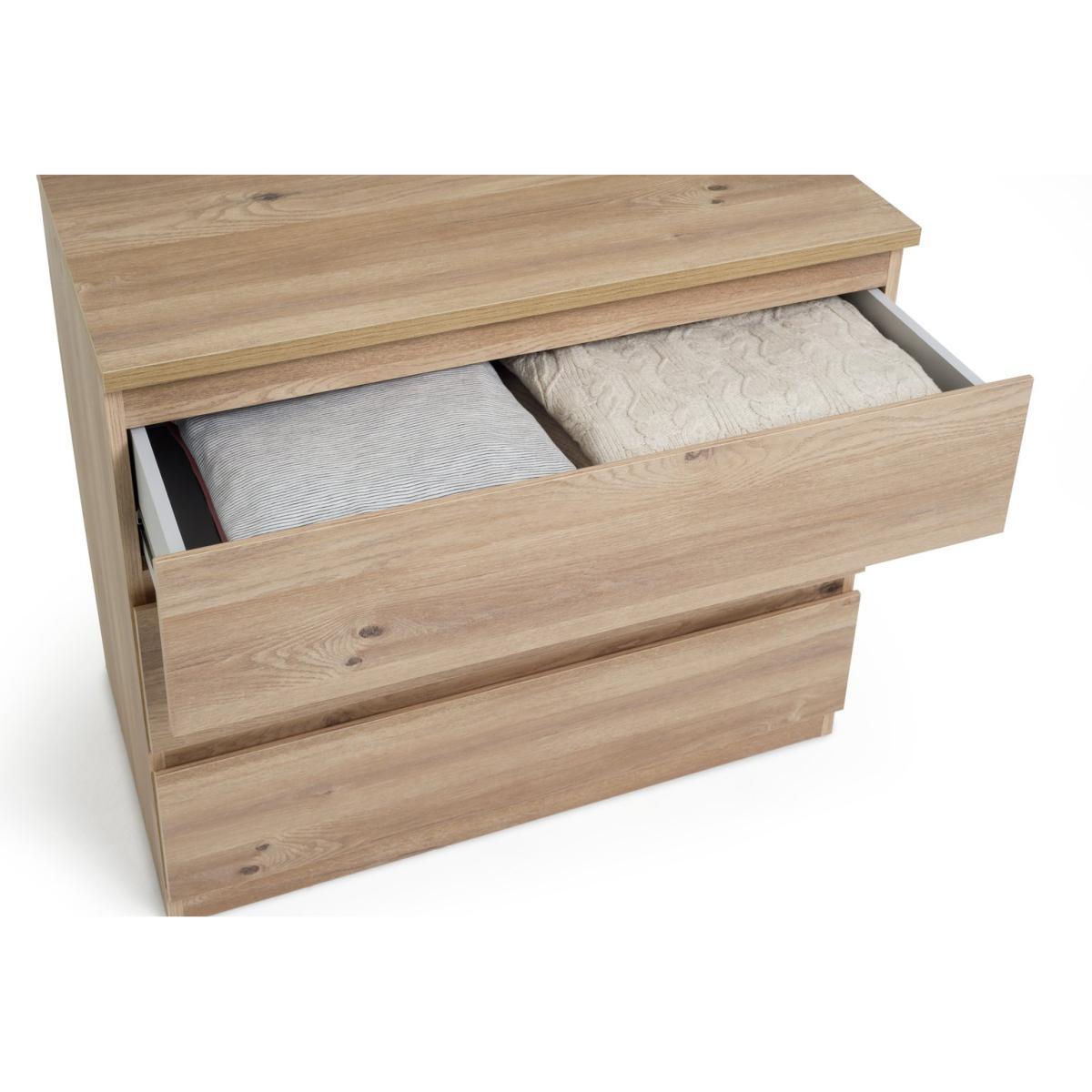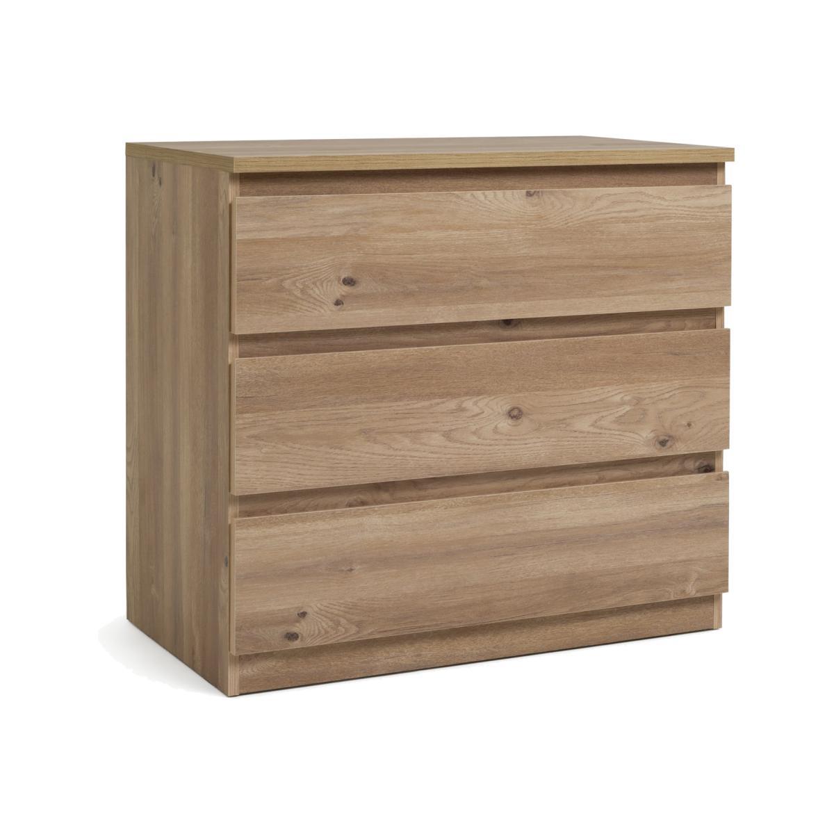 Keep it clean. Our Jenson bedroom collection is modern and stylish. Created with clean lines and mimimalist design, it sits comfortably with any interior scheme you stick it into. This 3 drawer chest is wide and chunky, ideal for refreshing the look of your bedroom. The oak effect finish has a warm and natural feel which is bang on trend. And smooth-glide, handleless drawers look chic and unfussy.