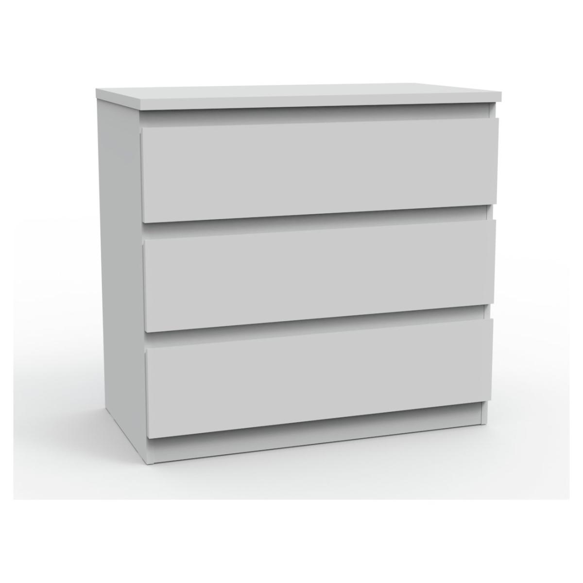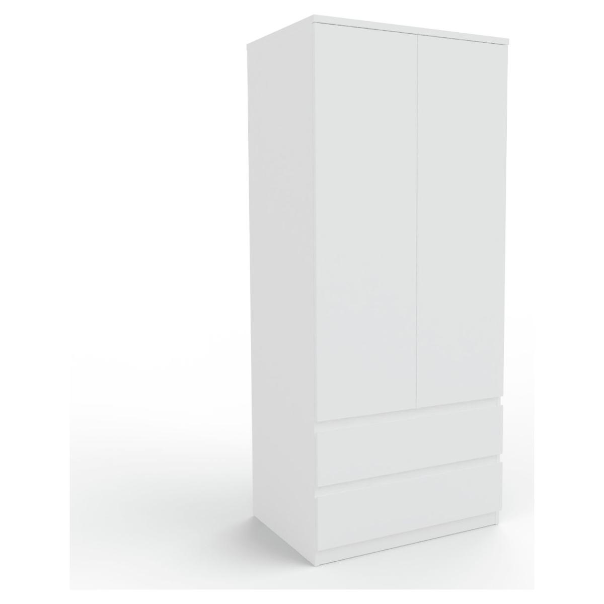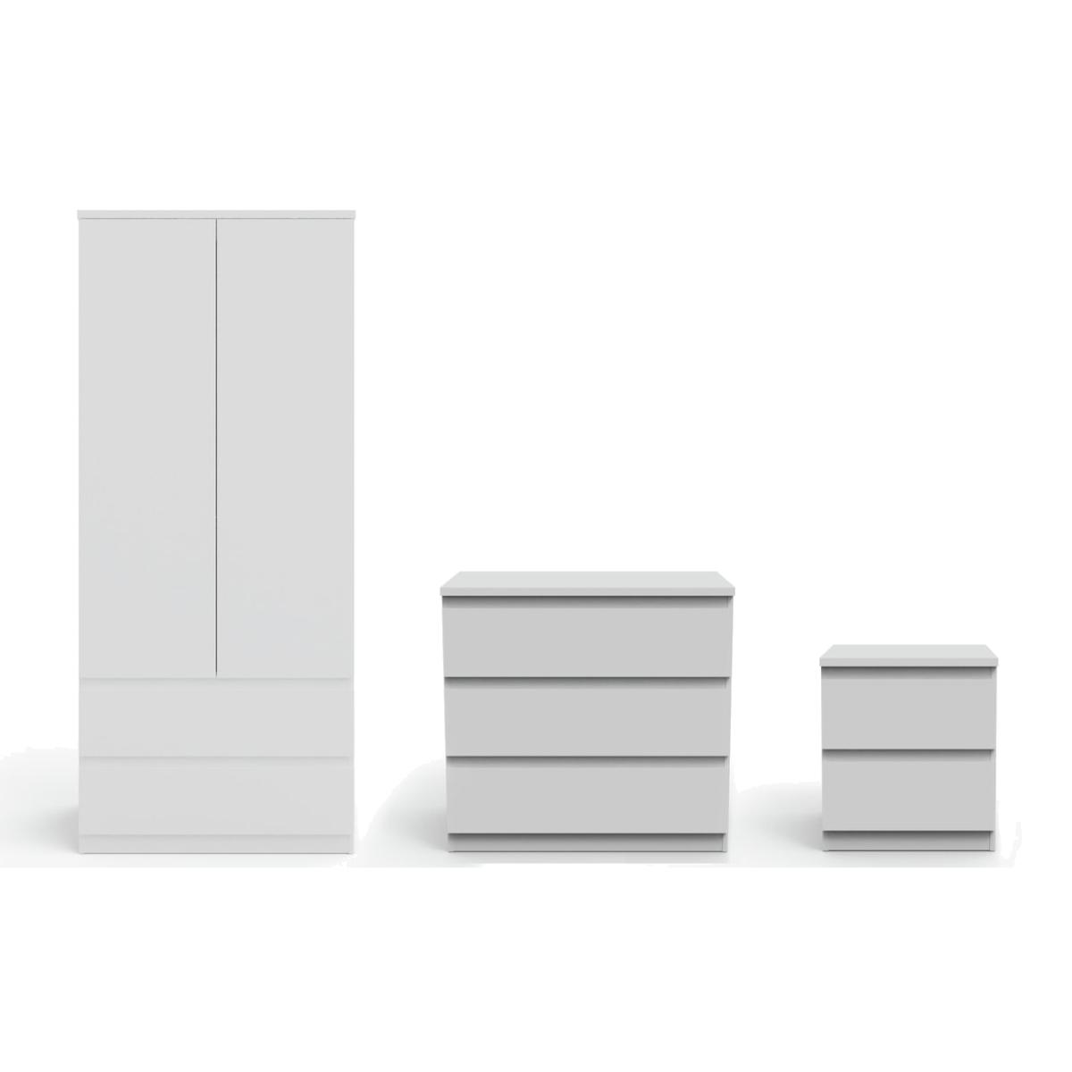 A simple, streamlined design. This smart Jensen 3-piece set has everything you need for a thoroughly modern bedroom. A 2 door, 2 drawer wardrobe offers space for hanging jackets and tucking away tops, the 3 drawer chest stores jumpers, jeans socks and smalls. And the bedside cabinet makes a perfect perch for night-time essentials. All finished in matt white with handleless fronts and drawers that glide open smoothly on metal runners. A tip-top trio. Made in the UK. Part of the Jenson collection. Wardrobe: Size H185, W79.6, D59cm. Internal hanging space H120, W76.4, D55.5cm. Internal drawer size H14, W73.1, D52.5cm. 1 fixed hanging rail. Rail holds up to 11kg. Wardrobe has 2 doors and 2 drawers. Self-assembly - requires 2 people (wall fixings included). Weight 64kg. Chest of drawers: Size H75.9, W79.6, D45cm. Internal drawer size H14, W73.1, D38.5cm. 3 drawers. Self-assembly - requires 2 people (wall fixings included). Weight 29kg. Bedside table: 1 bedside table(s). Size H53.1, W47.5, D45cm. Internal drawer size H14, W41, D38.5cm. 2 drawers. Self-assembly requires 1 person. Weight 16kg. General information: Made from wood effect. If this product is over 60cm high it must be securely attached to the wall to prevent overturning. Drawers in this unit have metal runners. FSC certified meaning the materials used for this product are responsibly sourced. Manufacturer's 1 year guarantee.