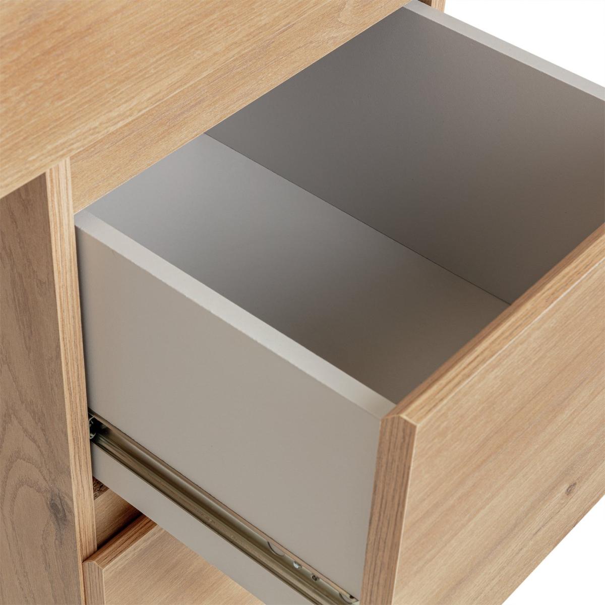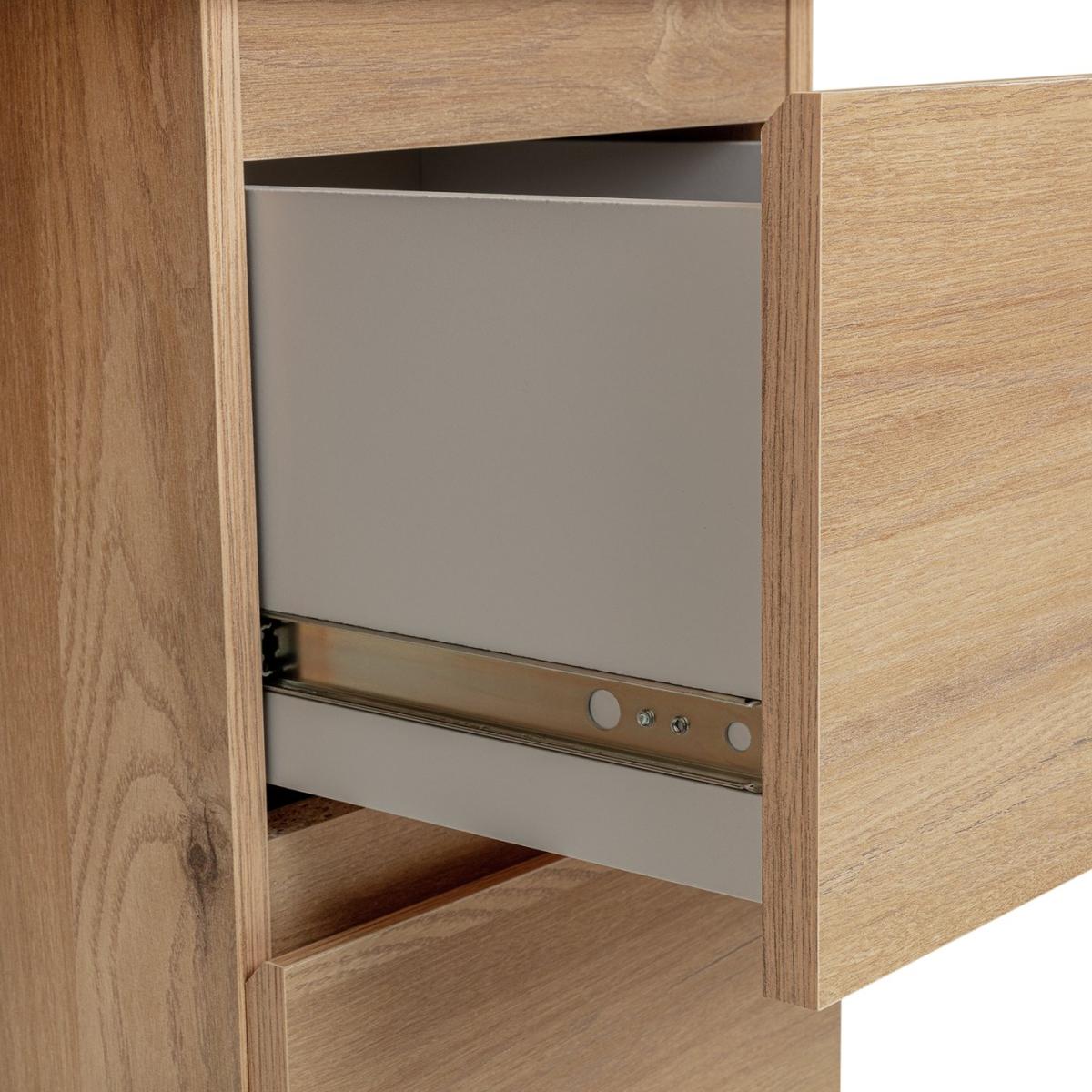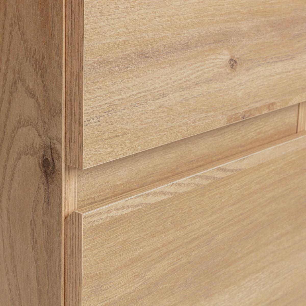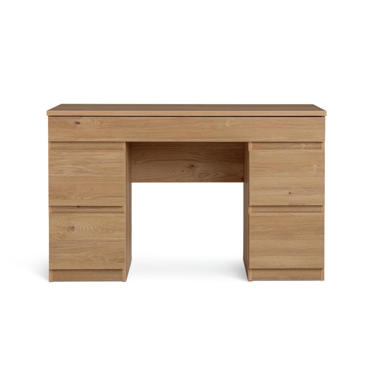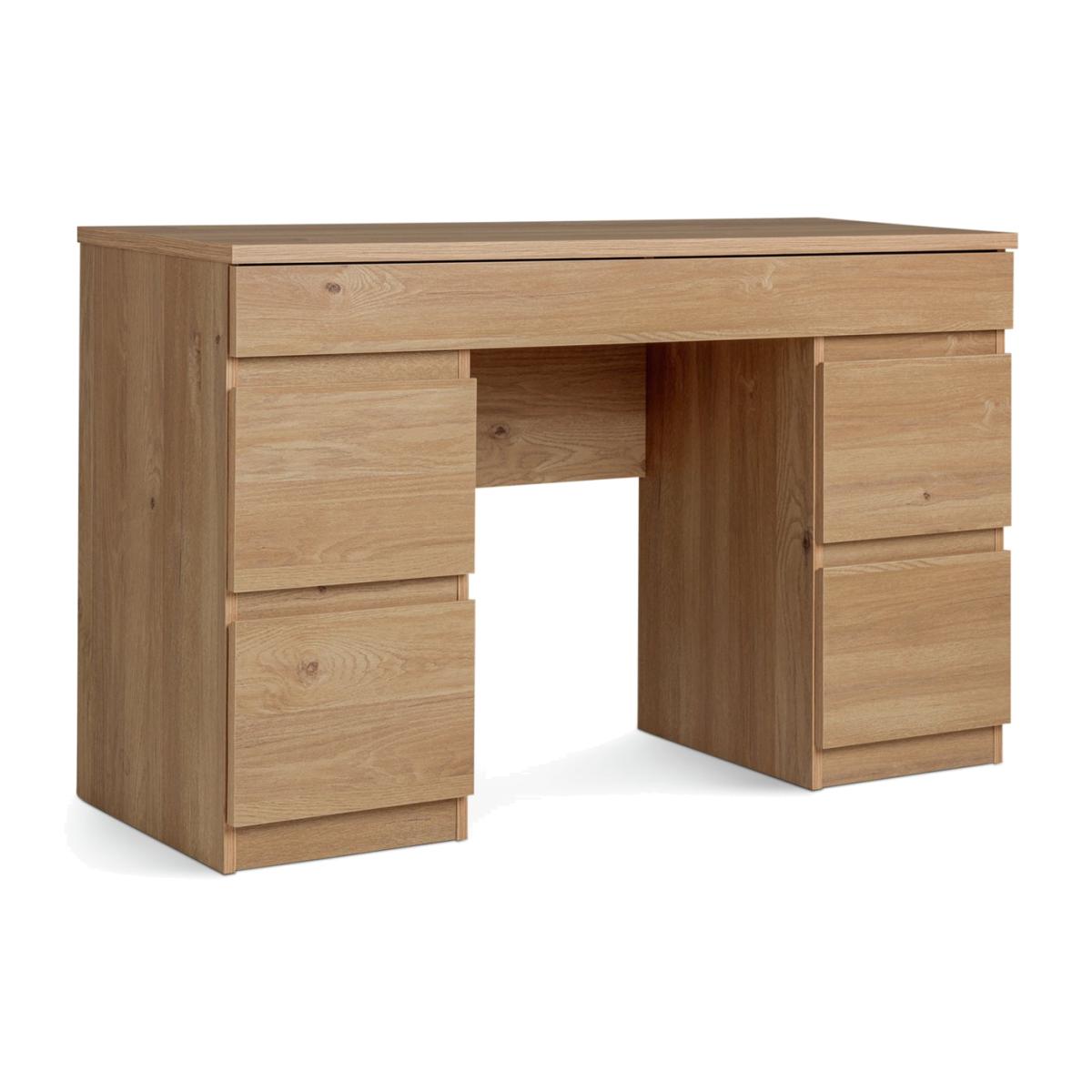 A smooth, streamlined design. With a natural oak-effect finish, this handleless dressing table has universal appeal. Perfect in a bedroom or a study as it makes a smart work desk too. It has a full width top drawer for cosmetics or stationery. And 4 deep drawers to tuck away anything from foldables to files. All 5 glide open effortless on metal runners. Plus, plenty of room on top for a mirror or computer. Part of the Jenson collection. Made from wood effect. 5 drawers with metal runners. Self-assembly - 2 people recommended (includes wall fixings). If this product is over 60cm high it must be securely attached to the wall to prevent overturning. Dimensions: Size H75.3, W120, D45cm. Internal drawer H18, W26.7, D38.8cm. Weight: 47kg. Package Dimensions: Package 1 dimensions: H79, W45, D15cm. Package 1 weight: 25kg. Package 2 dimensions: H129, W47, D8cm. Package 2 weight: 22kg. General Information: FSC certified meaning the materials used for this product are responsibly sourced. Manufacturer's 1 year guarantee.