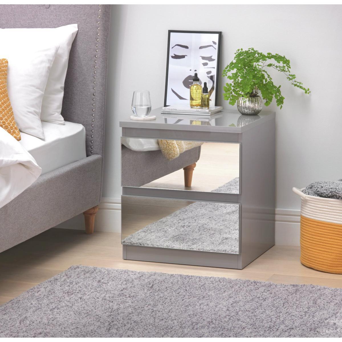 Habitat Jenson Gloss 2 Drawer Mirror Bedside Table - Grey