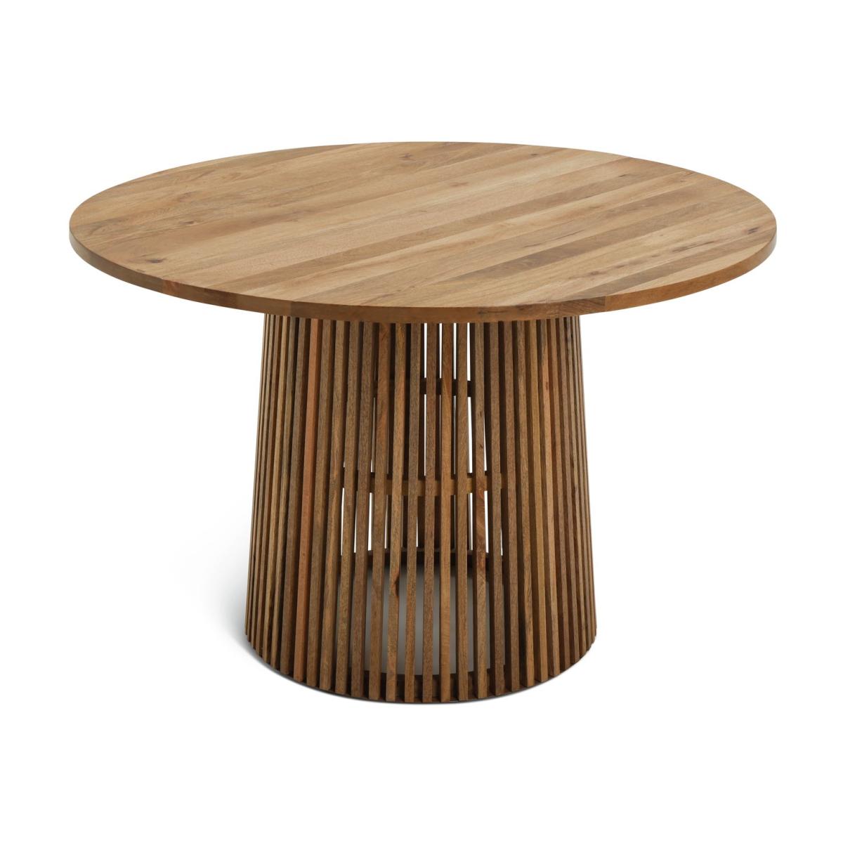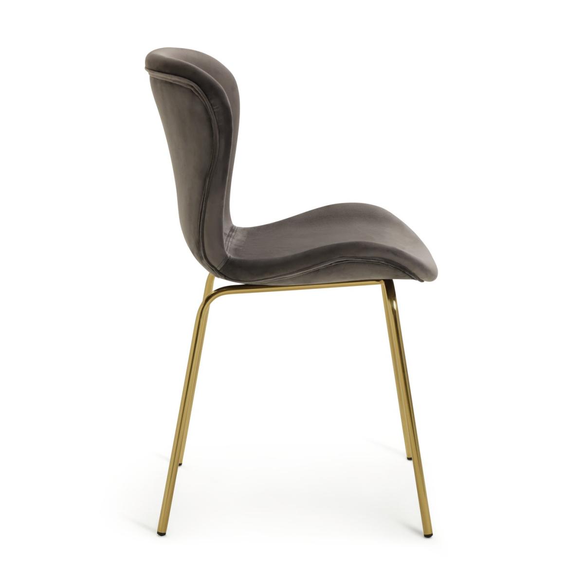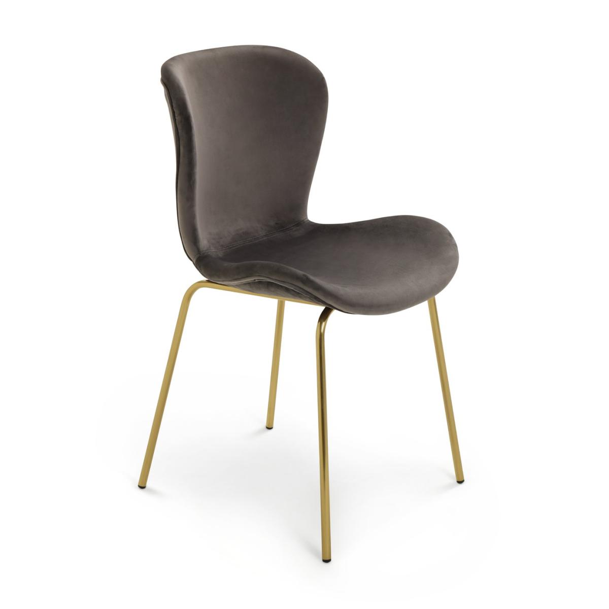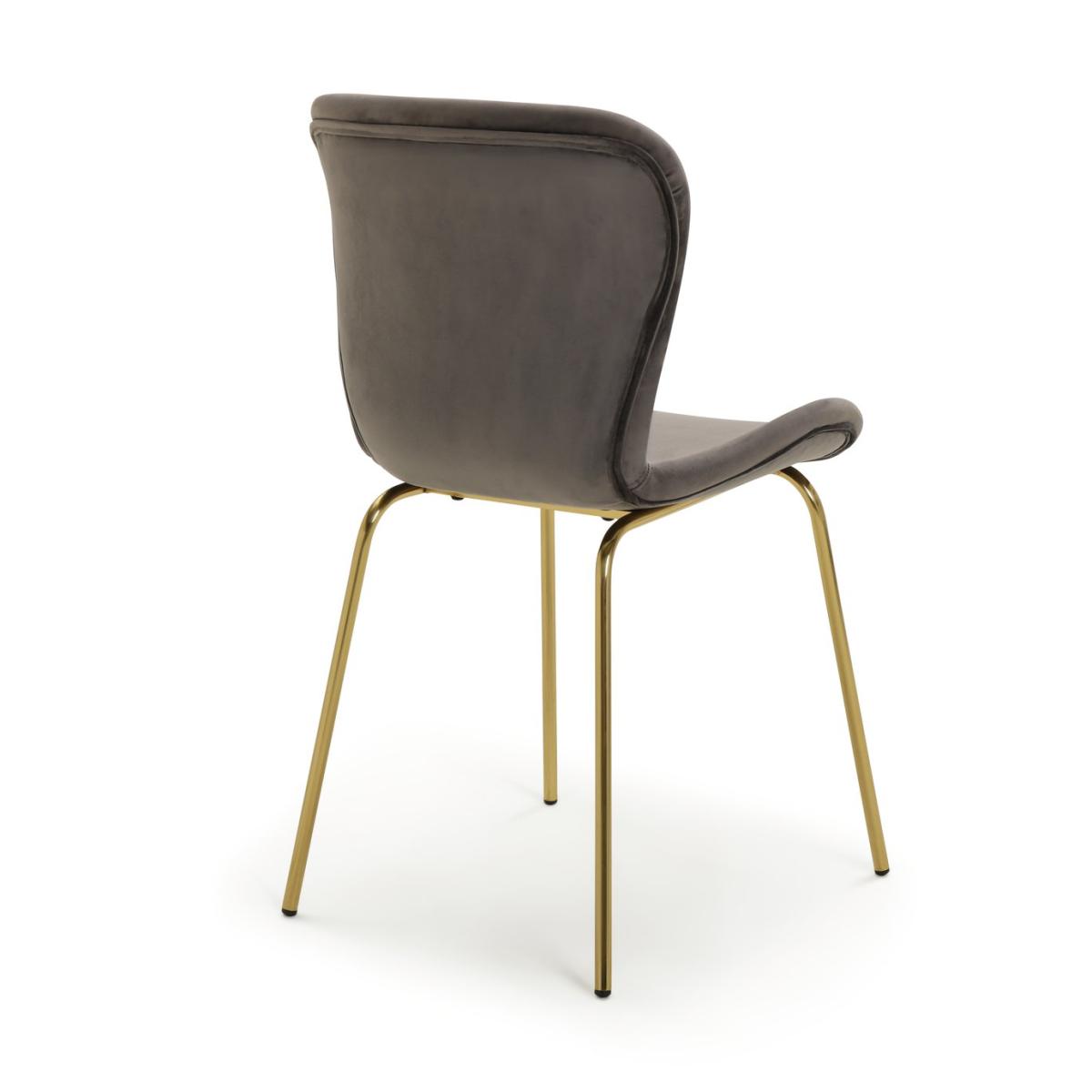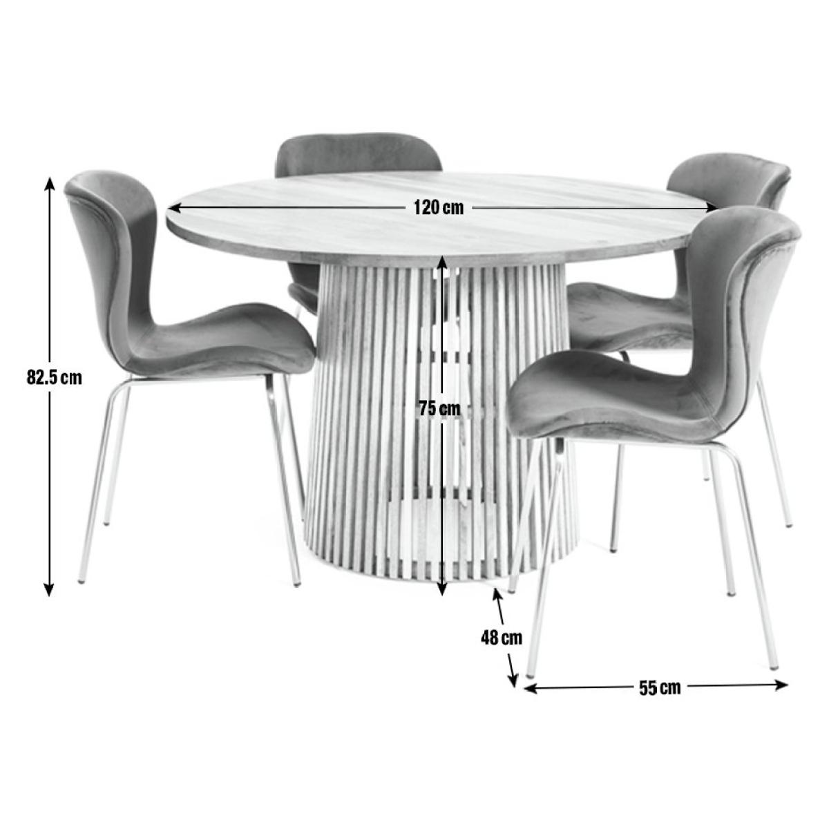 Designer dining. Exclusive to Habitat, this impressive dining set brings a modern relaxed quality to a room. The solid mango wood round table features a statement slatted base. And just look at those chairs. Upholstered in plush grey velvet, the comfortably curved ergonomic shape is so inviting. Gold chrome legs add a solid luxe touch. Together, the table and chairs are contemporary with lashings of cosy. Perfect.