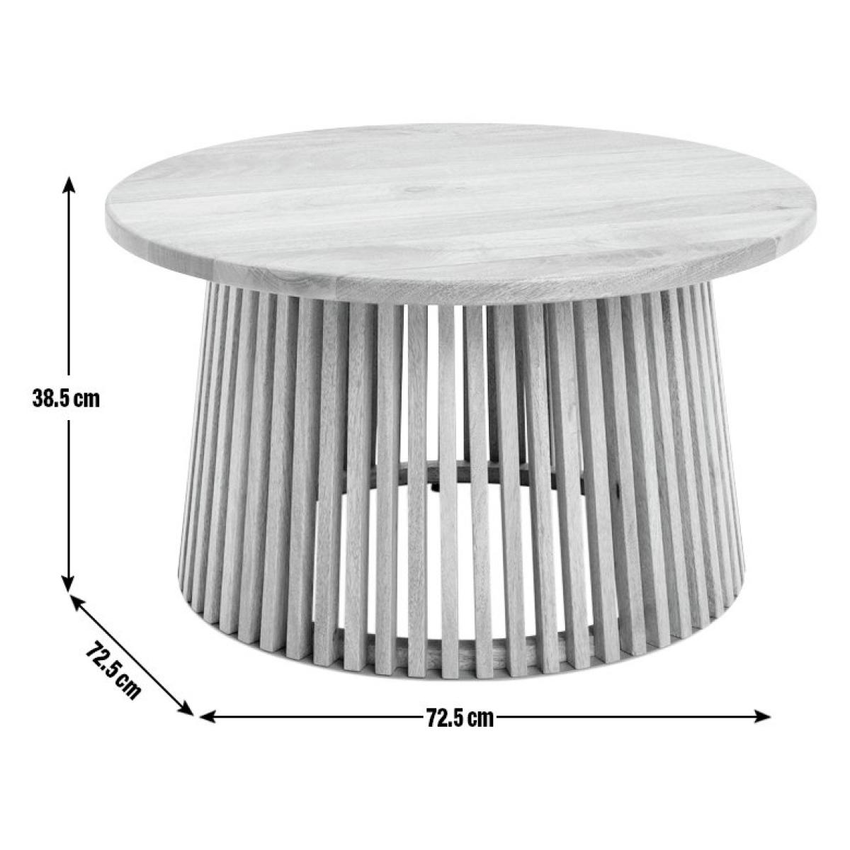 There's something naturally inviting about Jericho. Elevate your interior decor with our round wooden coffee table. Crafted from solid mango so you know it's hardwearing with a beautiful grain. Are you loving the slatted base as much as we are? It's decorative, yet grounded. A genuine show stealer. Why not pop an artisan vase or objet on top for a little extra something? Browse our home accessories for the perfect pick. Have you fallen for Jericho? Take a look at more complementary items in our collection. Part of the Jericho collection. Size H 38.5, W 72.5, D 72.5cm. Made from solid wood. Weight 14.5kg. Fully assembled. General information: Manufacturer's 1 year guarantee.