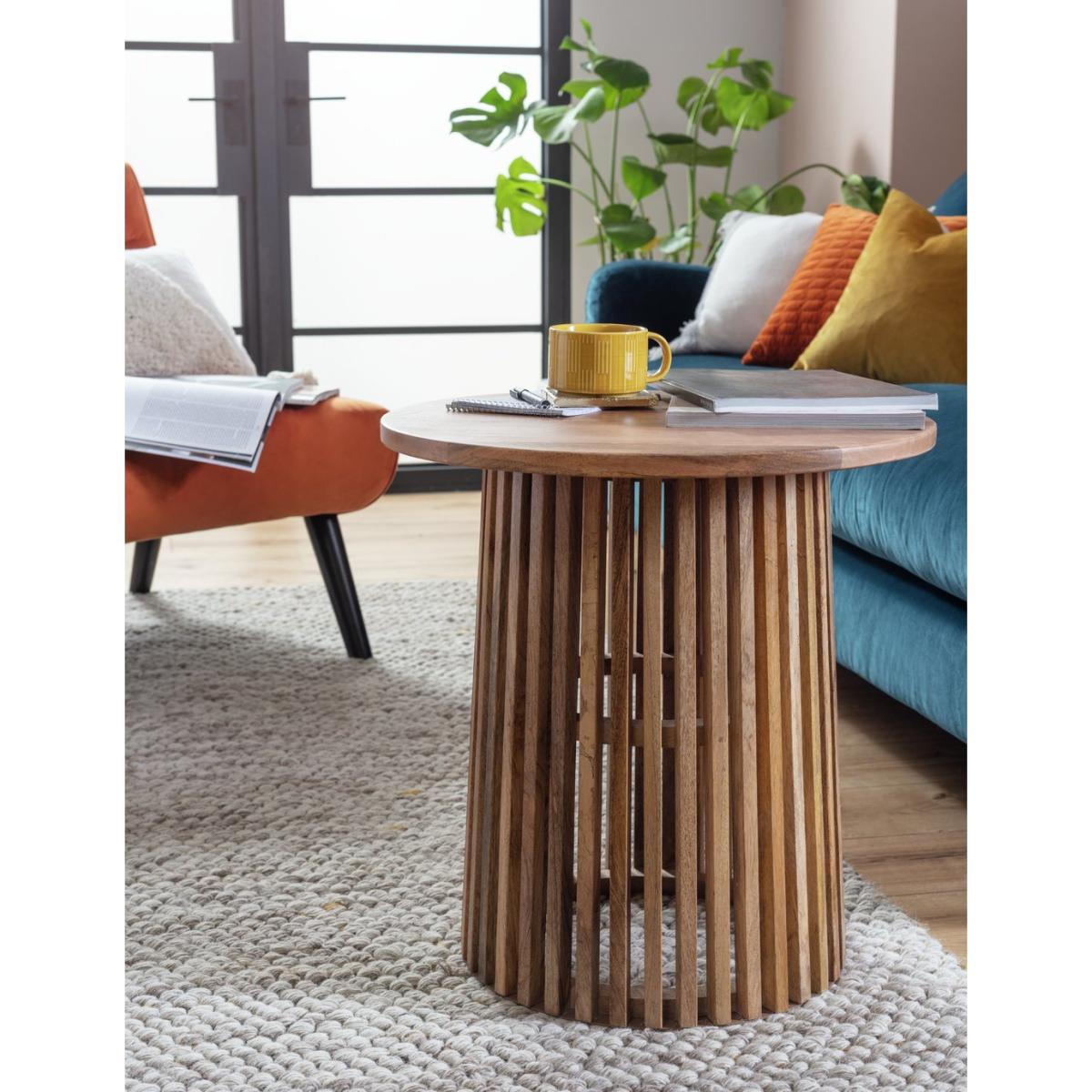 There's something naturally inviting about Jericho. Elevate your interior decor with our wooden side table. Crafted entirely from solid mango, so you know it's hardwearing with a beautiful grain. A great spot to pop your skinny latte. A slated base adds to the eclectic design. We're in love. Are you?