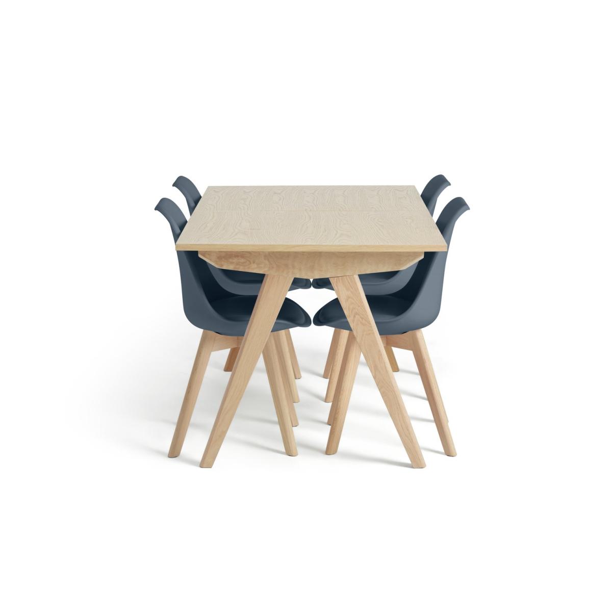 Dinner's served, Skandi style. Meet Jerry, our nifty extendable wooden dining table with 4 matching chairs. Smart, space-saving design fits right in with this clean and contemporary look. Go from feeding 4 to 6 in a flash, just add the central extension piece. This on-trend dining set looks good with minimalist decor and bold colours. Anyone for seconds?