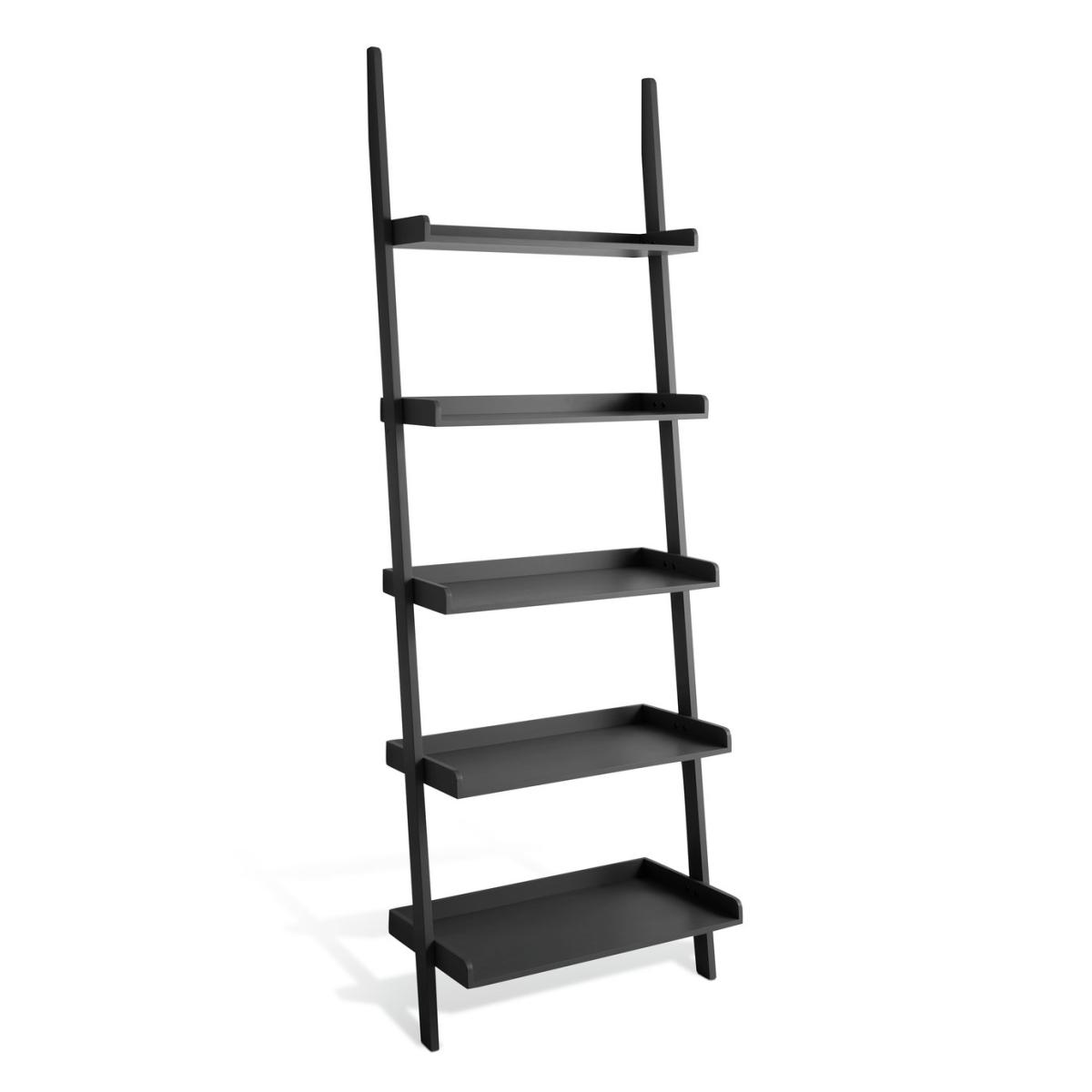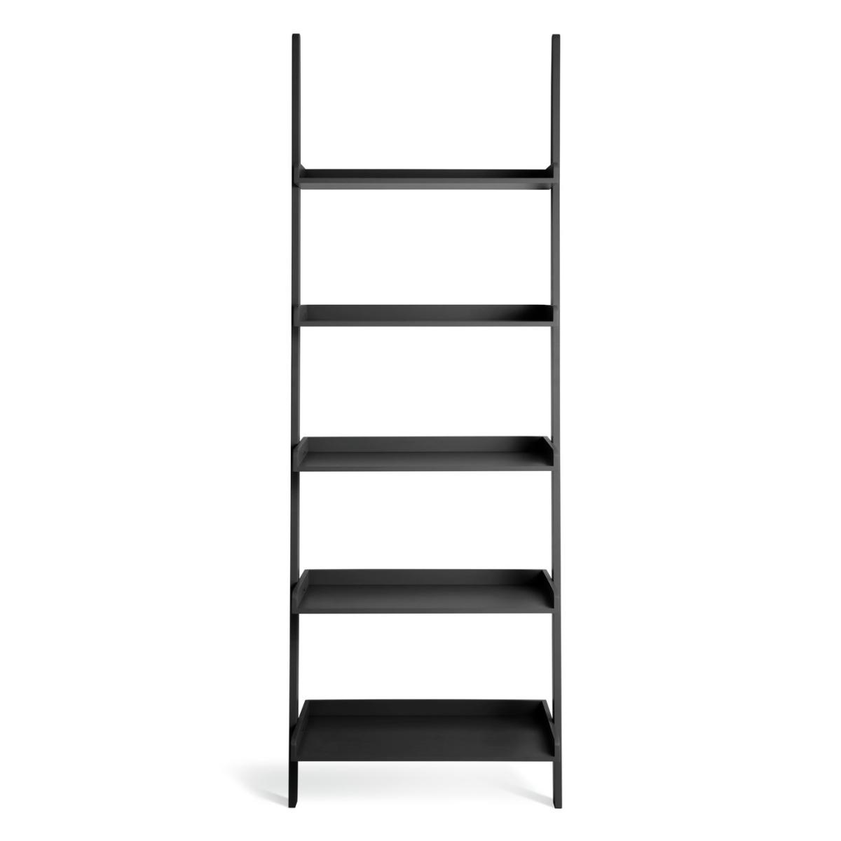 Storage that steps up. Jessie's wide-leaning frame creates a striking ladder effect with open shelves that graduate in size. Ideal for stacking books, showing off ceramics or letting your favourite foliage trail. Finished in a smooth lacquered black, its clean lines and slim profile make it a smart fit for smaller spaces. Ready to lean into your style? Part of the Jessie collection. Made from MDF with a painted finish. 5 fixed shelves. Packed flat - 2 people recommended. If this product is over 60cm high it must be securely attached to the wall to prevent overturning (fixings not included). Dimensions: Size H189, W66, D35cm. Weight 13kg. Internal shelf space: H 33.8, W 59.8, D 30cm. Wall fixing recommended. Shelves range from 20.9cm wide (narrowest) to35 cm wide (widest)Recommended maximum load per shelf: 10kg. Package dimensions: Package 1 dimensions: H7.5, W43.5, D201.5cm. General Information: By choosing FSC certified products, you are supporting responsible management of the world's forests. Manufacturer's 1 year guarantee.
