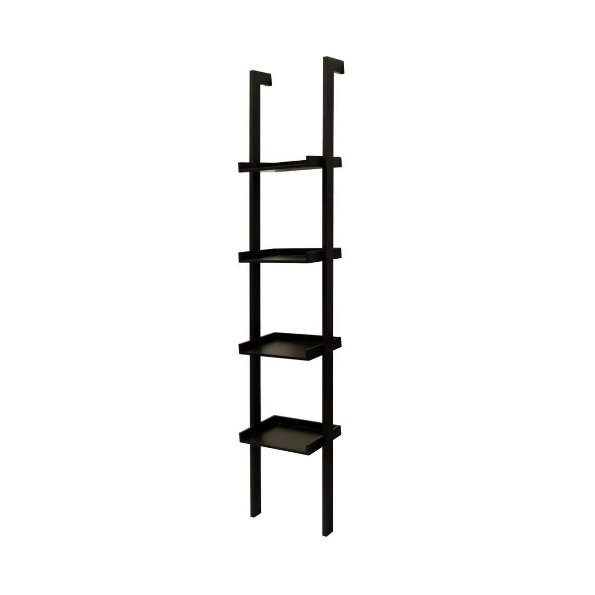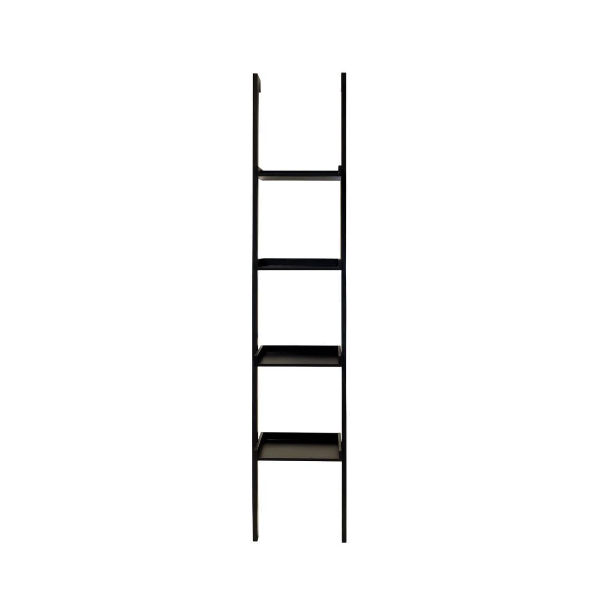 Lean in. Our Jessie bookcase is a stylish space saver that leans against your wall. Channelling the industrial trend, its ladder style looks the part whilst providing a space for books, picture frames, plants and other collectibles. The sleek black colour fits in with whatever scheme you have in your room, from monochrome to luxe to Scandi. Easy chic. Jessie easily fixes to your wall with the fittings included, making it sturdy and functional. Layer it up with carefully chosen objects and create a focal point for your room that adds dimension and shows off your personal flair. Part of the Jessie collection. Made from wood and wood veneer with a wood finish. 4 fixed shelves. Self-assembly. If this product is over 60cm high it must be securely attached to the wall to prevent overturning (fixings included). Dimensions: Size H179, W37, D37cm. Weight 7kg. Wall fixing recommended. Package dimensions:Package 1 dimensions: H5.2, W36.5, D189.5cm. Package 1 weight: 8.2kg.