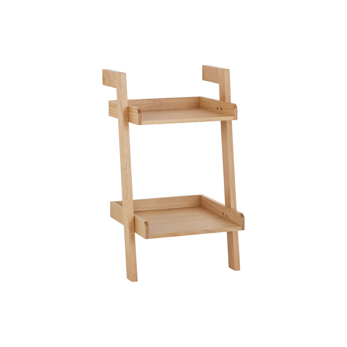 The versatile Jessie oak bedside table with shelves provides generous storage and display space for books, accessories and a bedside lamp. Created in the Habitat design studio, Jessie has crisp lines in oak veneer with solid oak uprights. With 2 generous open shelves, this table looks equally at home next to a sofa or beside a bed. Perfect for small spaces, it’s also available in walnut. Part of the Jessie range, mirrors and wardrobes are also available for the bedroom, alongside leaning bookcases in various finishes.