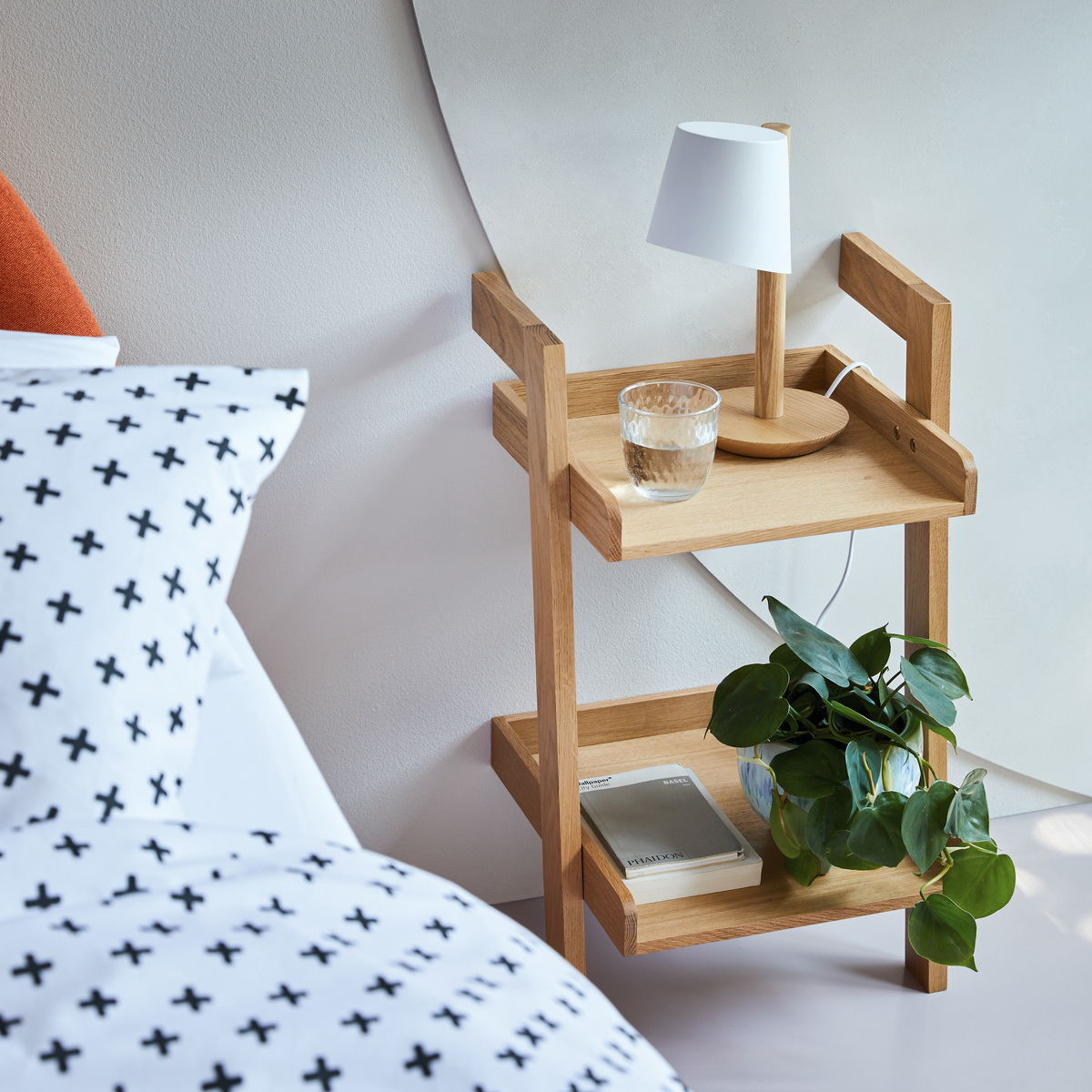 I love the Habitat Jessie walnut bedside chest for its clean, minimalist design and warm, natural finish, making it a versatile piece for a range of interiors. It works particularly well in contemporary or Scandinavian-inspired bedrooms where simplicity and functionality are key. To style it effectively, consider pairing it with textured textiles and adding a small lamp, a book, or a decorative object to create a lived-in yet organised look. Its open shelving provides practical storage, so it’s perfect for keeping everyday essentials close at hand without feeling cluttered. This piece lends itself well to both modern and eclectic schemes, adding warmth and character with its walnut veneer.