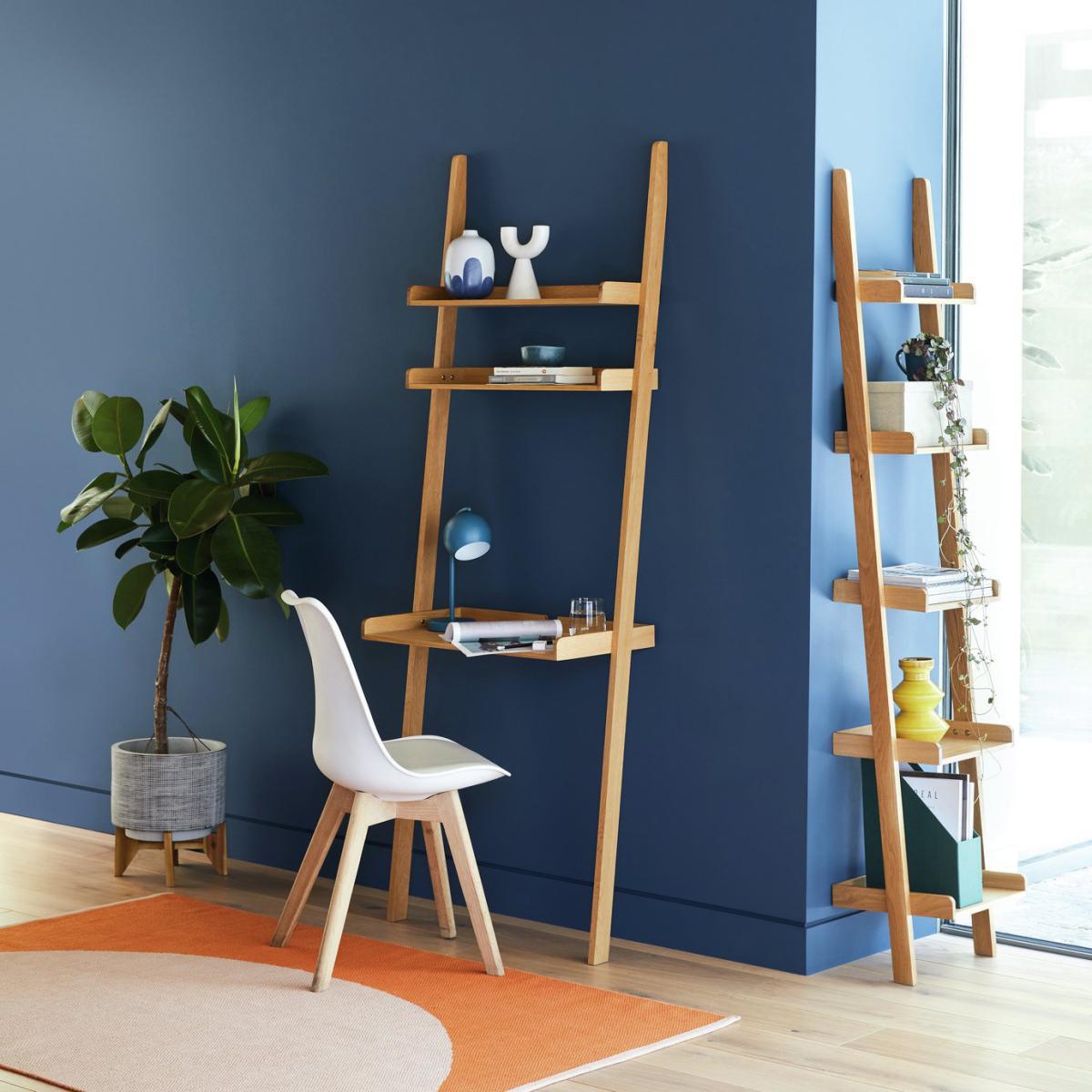 The Habitat Jessie walnut ladder desk is a stylish, functional piece that works particularly well in minimal or Scandinavian-inspired interiors. Its natural walnut finish adds warmth, making it ideal for cosy study nooks or a versatile home workspace. I love how the ladder design brings a contemporary touch while maintaining a sense of lightness. Practical styling tips include pairing it with simple accessories, such as a sleek desk lamp and organised storage baskets, to keep the surface clutter-free. To create a balanced look, position it against textured walls or alongside soft textiles to soften its modern lines, making it both a practical and an attractive addition to any room.