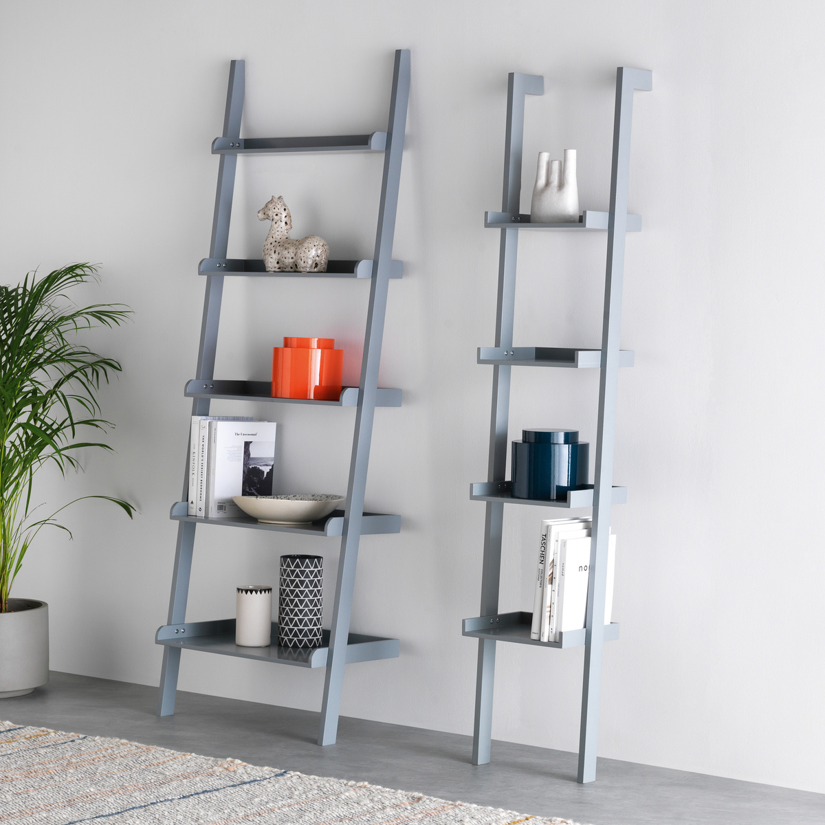 I love this little ladder shelf because of its versatile, contemporary design and soft grey finish which easily fits into a variety of interiors, from minimalistic modern spaces to more cosy, eclectic rooms. It’s perfect for displaying books, late-night reading lamps, or decorative items without overwhelming the space. Practical styling tips include stacking a blend of books and decorative accents on the shelves for visual interest, or pairing it with baskets on some of the tiers to add texture and organisation. Its slim profile makes it an ideal choice for narrow walls or small spots, and it works equally well in living rooms, bedrooms, or even bathrooms if used for towels or plants.