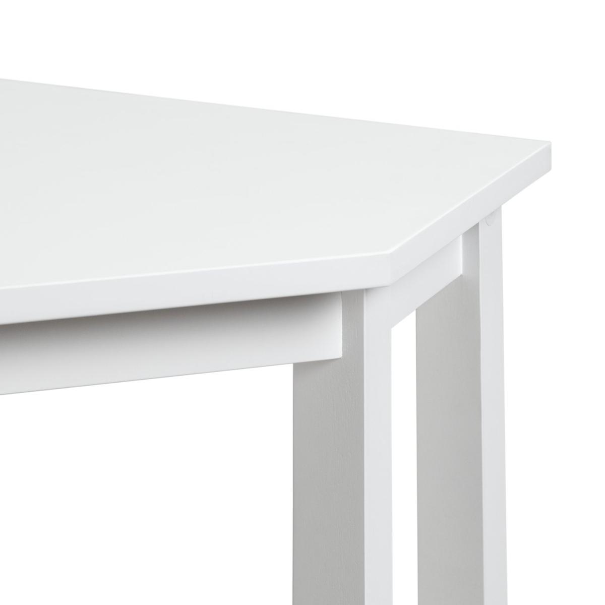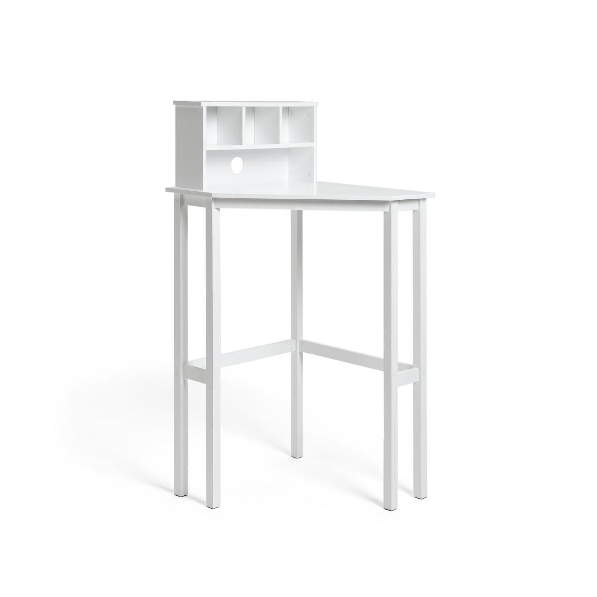 Sit or stand? You choose with this space-saving answer to a home office. Our wooden desk fits snugly in a corner, with plenty of room for a laptop or PC. The clever curved design means everything's to hand. And three box shelves offer a stylish place to stow pens and stationary. There's a cut-out for your cable to keep everything neat and tidy. Just thread through and plug in, brilliant. Finished in bright white, this desk looks fresh and contemporary. Welcome to your home working hub.