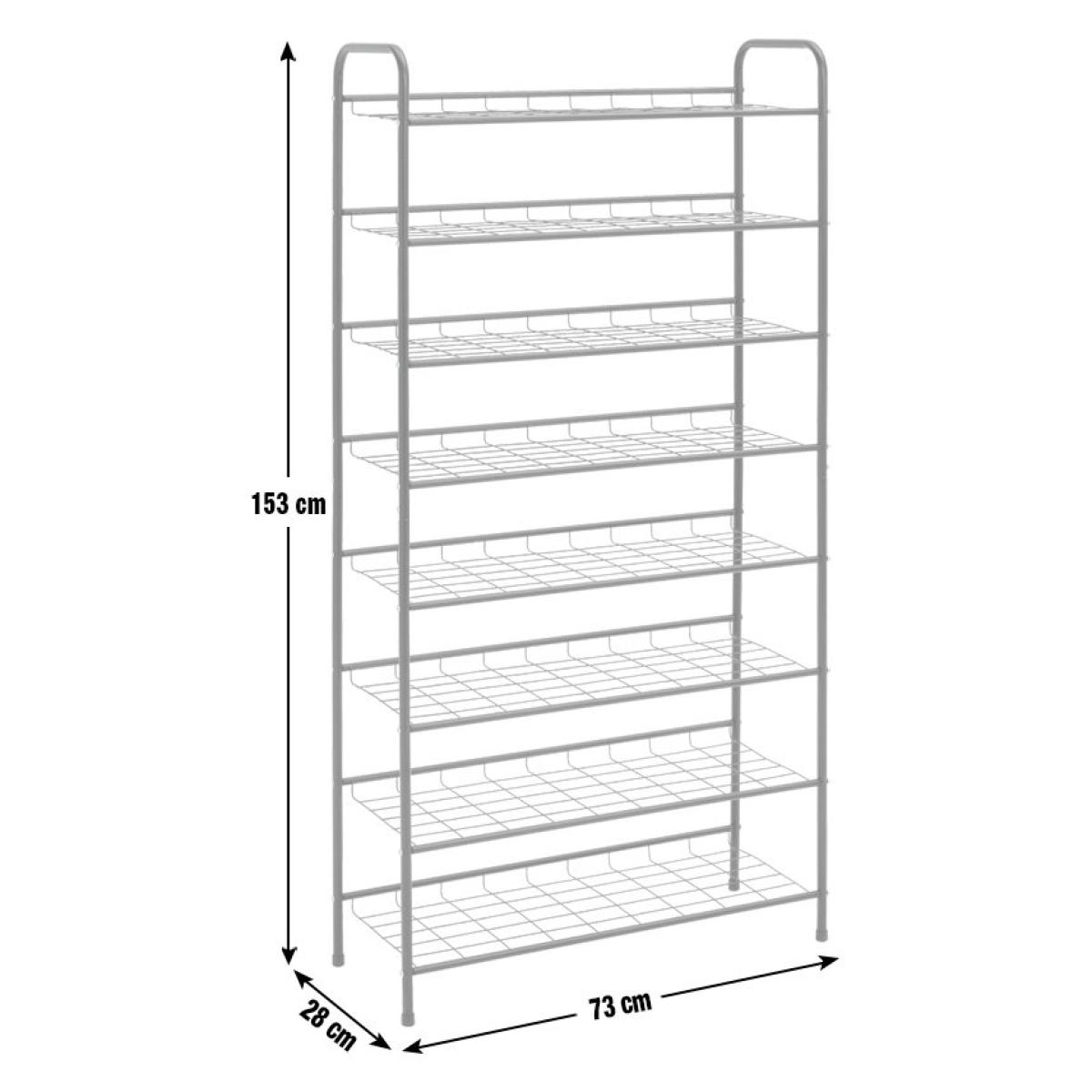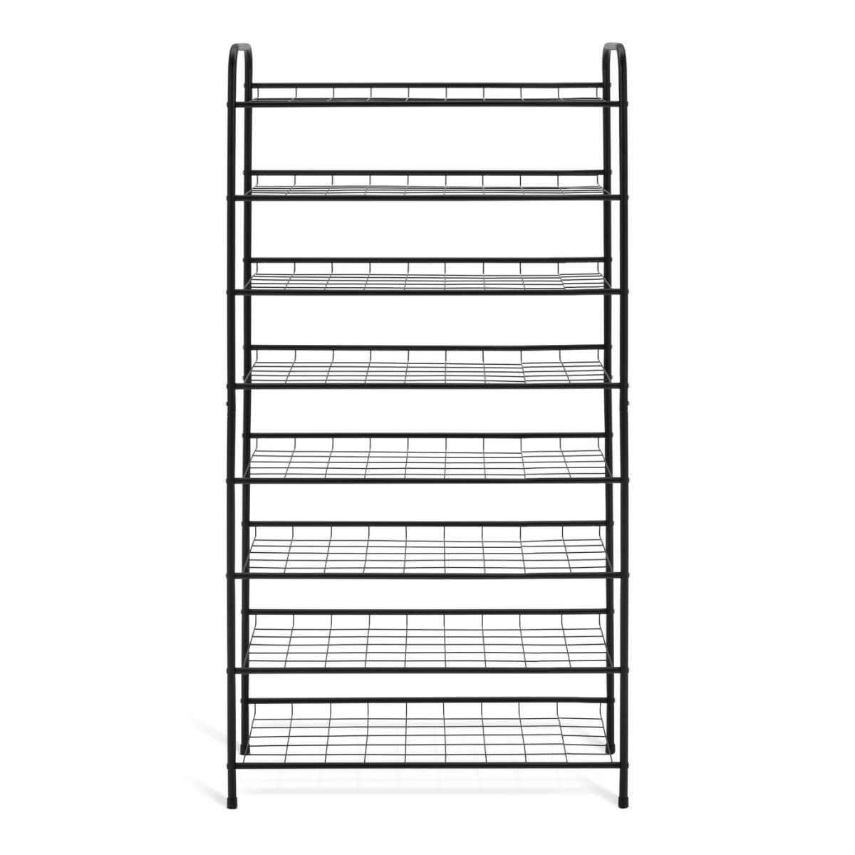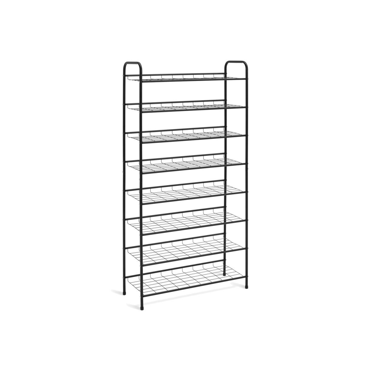 Leave muddy shoes at the door with the Jorn 8-tier shoe rack. Showcasing a minimalist black mesh frame, Jorn neatly stores everything from trainers and flip flops to high heels and boots. Quick and easy to assemble, add Jorn to your hallway or bedroom for instant de-cluttering. Part of the Jorn collection. Made from steel with a metal finish. Stores an average of 24 pairs of shoes. Up to maximum shoe size 31. 8 fixed shelves. Size H153, W73, D28cm. Weight 4.08kg. Self-assembly. Package Dimensions: Package 1 dimensions: H82.5, W40, D8.5cm. Package 1 weight: 5.06kg. General information: Manufacturer's 1 year guarantee.