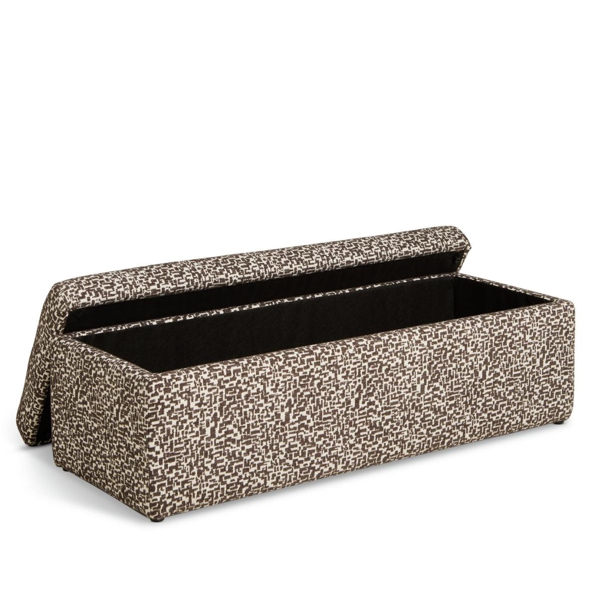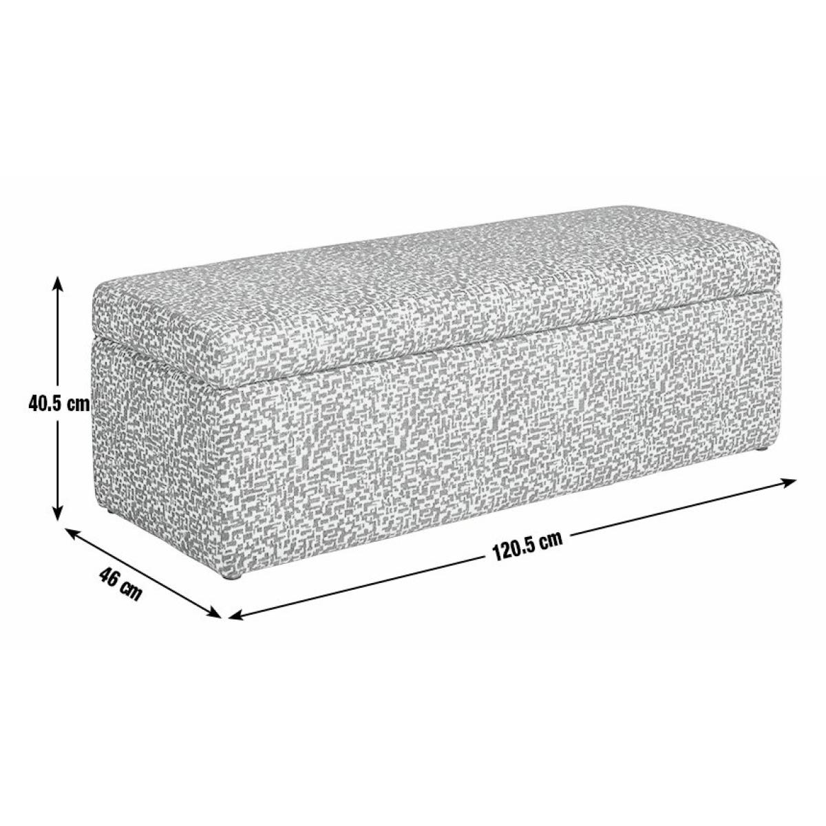 Need heaps of hidden storage under a fashionable exterior? Josh does the job. The intricate geo pattern gives this cushioned ottoman plenty of character. A perfect place to stow away spare linens, seasonal clothes and other stuff you want to keep out of sight. Think tidy, think Josh. Part of the Josh collection. Made from fabric and polyurethane. Stackable. Size H40.5, W120.5, D46cm. Weight 17kg. Fully assembled. Storage capacity: 130 litres. Package Dimensions: Package 1 dimensions: H43, W122, D46cm. General information: Manufacturer's 2 year guarantee.
