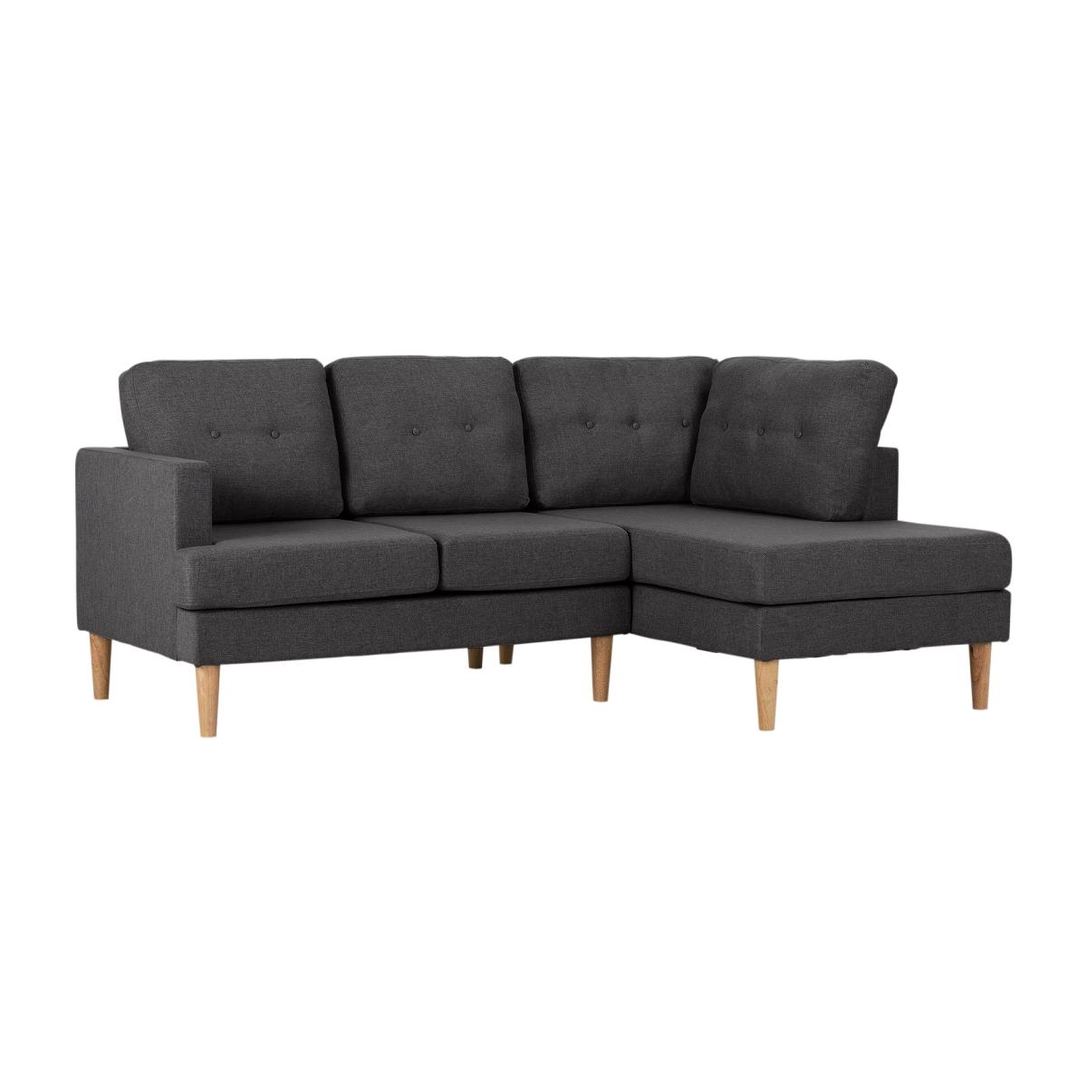 Fresh style. Kit out a contemporary living space with the Habitat Joshua corner sofa. If you like Scandi design, you'll love Joshua. With soft-touch fabric and foam-filled cushions, this understated sofa will offer firm back and bottom support, while retaining its shape for longer. Easy to wipe clean, and finished with tapered wooden legs, it's a brilliant buy for a modern space. A button-backed beaut. We'll cover manufacturing faults on frames, feet, arms, internal springs or webbing. We can arrange a repair, replacement, exchange or refund. Part of the Joshua collection. Right hand corner. Material:Made from 100% polyester. Wooden feet. Removable seats with pocket sprung foam filling. Removable cushion(s) with foam fibre wrap filling. Dimensions:Size H90, longer width 200, shorter width 200, D137cm. Floor to seat height: 45cm. Depth of seat: 65cm. Height of seat back: 40cm. Shorter seating area width between arms: 66cm. Longer seating area width between arms: 78cm. Height of arm rest: 65cm. Overall weight 45.9kg. Wipe clean or lightly vacuum. Minimal assembly - just add feet. Maximum individual user weight 440kg. Packaged dimensions:Package size H62, W94, D148cm. Second package size H42, W64, D67cm. General information:We are excited to be welcoming some of our favourite HOME products into the Habitat range. Your product may arrive in Habitat or HOME packaging. Manufacturer's 10 year frame guarantee.