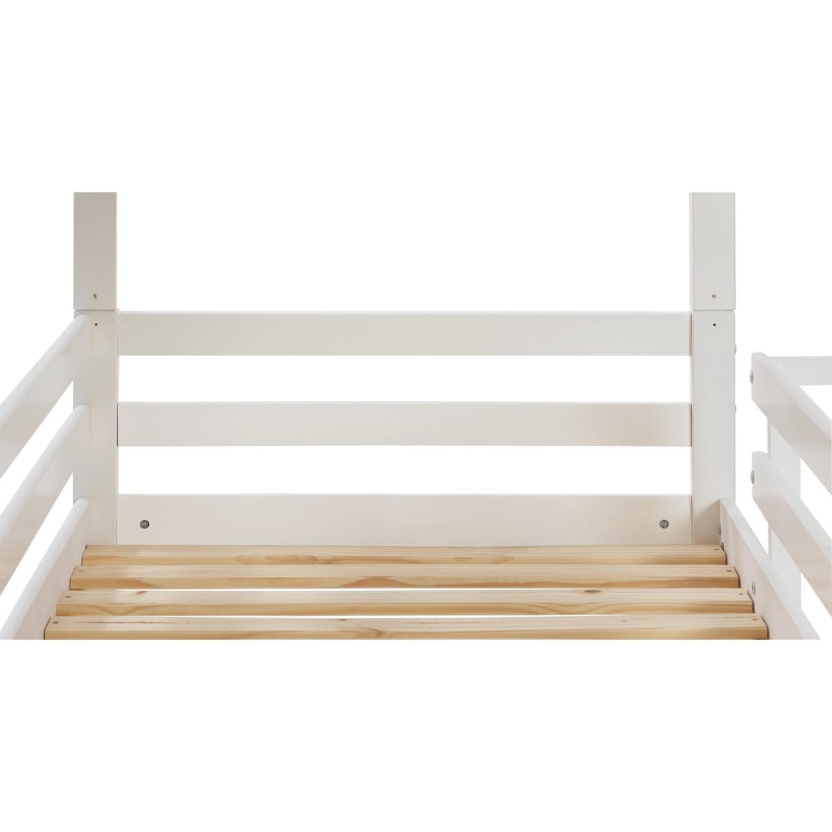 Triple the fun. Ideal for shared bedrooms and sleepovers, this Josie 3-tiered white bunk bed is all about simple style and sturdy design. Made of solid pine with wooden slates and a fixed ladder. Comes with 3 comfy mattresses. Part of the Josie collection. Bunk: Single bed. White bed with a solid wood frame. Includes wooden slats. Packed flat - 2 people recommended. If this product is over 60cm high it must be securely attached to the wall to prevent overturning. Maximum user weight per bunk 100kg. For ages 6 years and over. Suitable for adult use (safety tested to 100kg). Mattresses: Requires 3 mattresses (included). Medium firm feel mattress. Open coil mattress with 192 springs. Knit cover with flat top finish. Easy care no turn mattress. For safety, maximum depth of mattress to be used on top bunk is 16cm. Dimensions: Frame size L197.8, W105.7, H200cm. Mattress size L190, W90, H10cm. Package dimensions: Package 1 size H21.4, W121.1, D28.7cm. Package 2 size H13.6, W196, D32.8cm. Package 3 size H11.8, W95, D44.4cm. General Information: Manufacturer's 1 year guarantee. FSC certified meaning the materials used for this product are responsibly sourced.