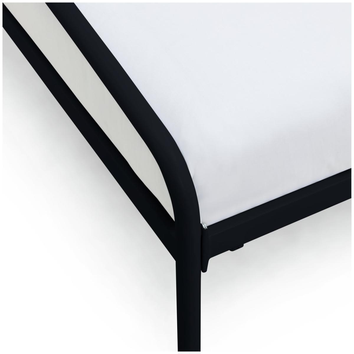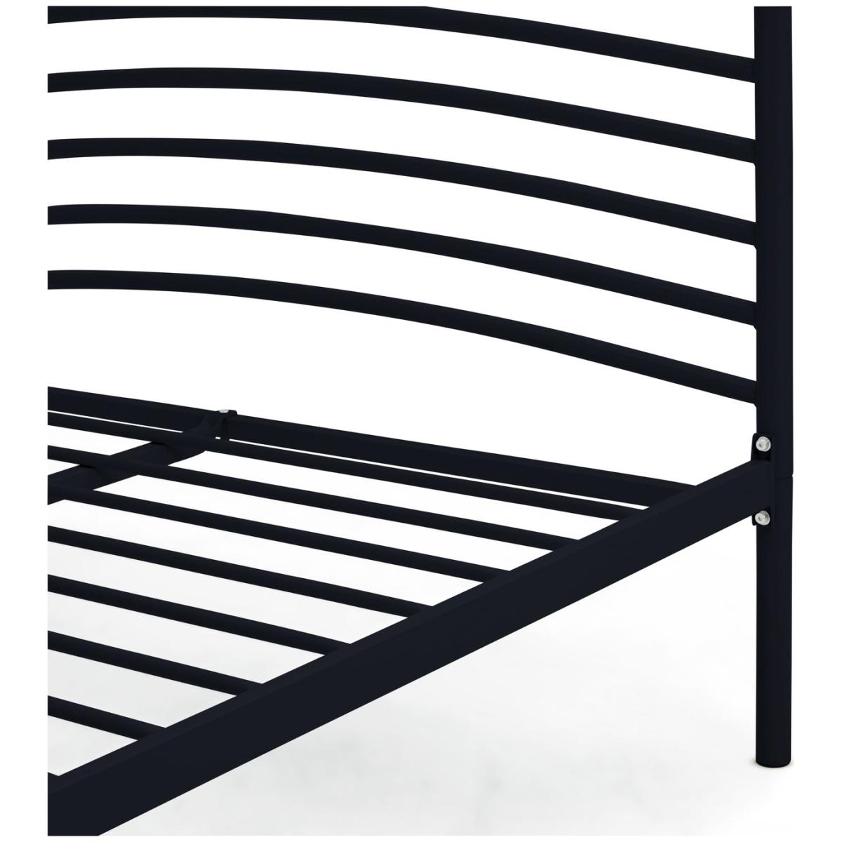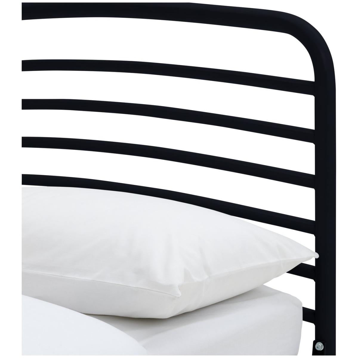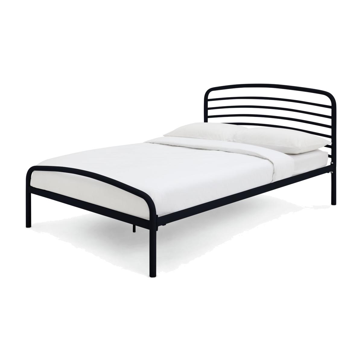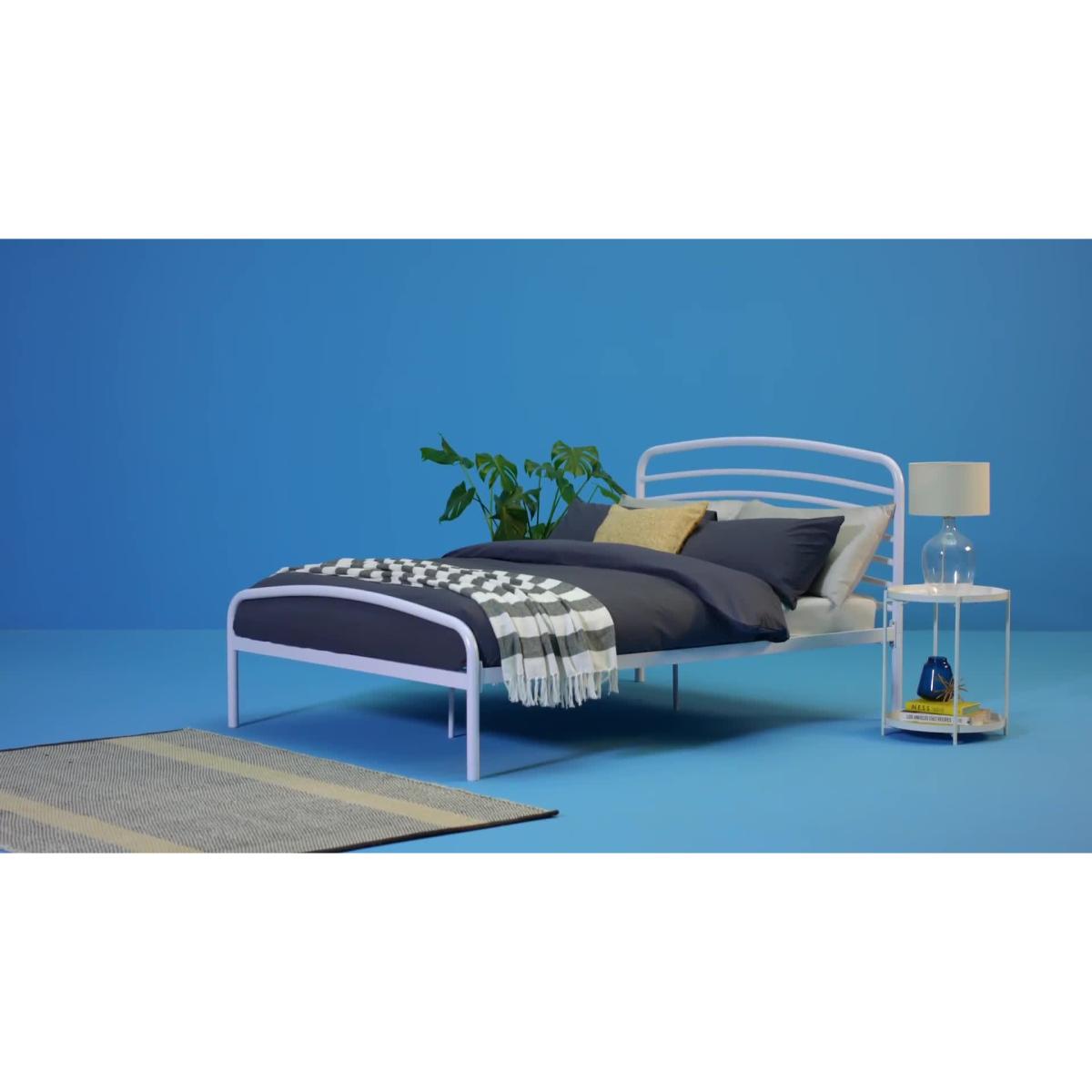 Strong but light. Jubilee is a king size bed frame designed for comfort. Look at those soft curves formed from steel. No sharp edges or toe-stubbing corners. This is a robust bed frame made with the luxury of sweet sleeping in mind. Plump your pillow against the headboard and tuck the covers in tootsie end. Ahh, dreamy nights. A metal slatted base gives the best mattress support and allows plenty of mattress aeration. And with an underbed clearance of around 30cm, you've got slide under storage space too. Part of the Jubilee collection. Metal frame. Base with metal slats. Size W158.3, L210.8, H102cm. Height to top of siderail 35cm. 30cm clearance between floor and underside of bed. Weight 24.7kg. Total maximum user weight 110kg. Self-assembly - 2 people recommended. Package Dimensions: Package 1 dimensions: H9, W73, D163cm. Package 1 weight: 18.6kg. Package 2 dimensions: H6, W13.5, D215cm. Package 2 weight: 8.7kg. FSC certified meaning the materials used for this product are responsibly sourced. General Information: We are excited to be welcoming some of our favourite HOME products into the Habitat range. Your product may arrive in Habitat or HOME packaging. Manufacturer's 2 year guarantee.