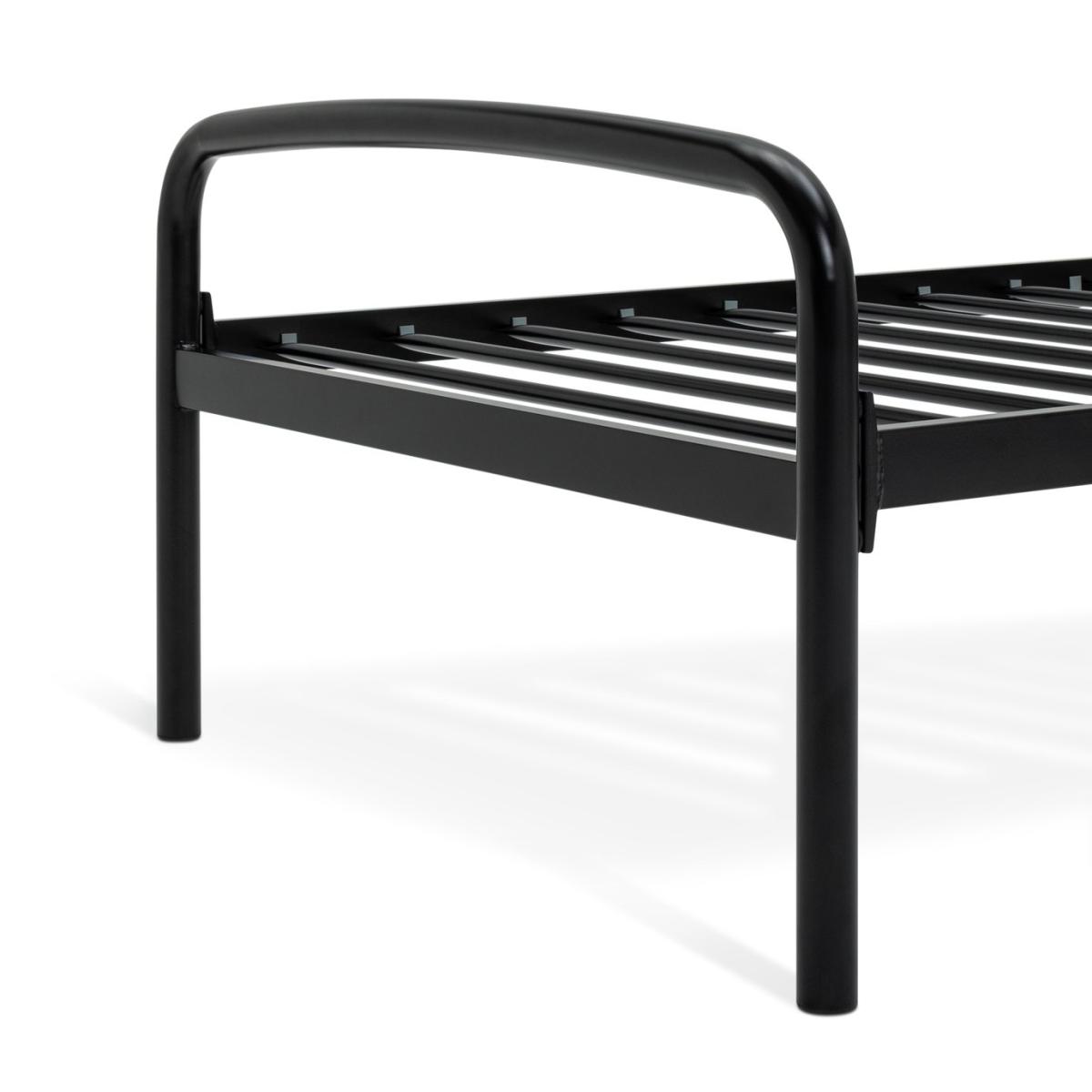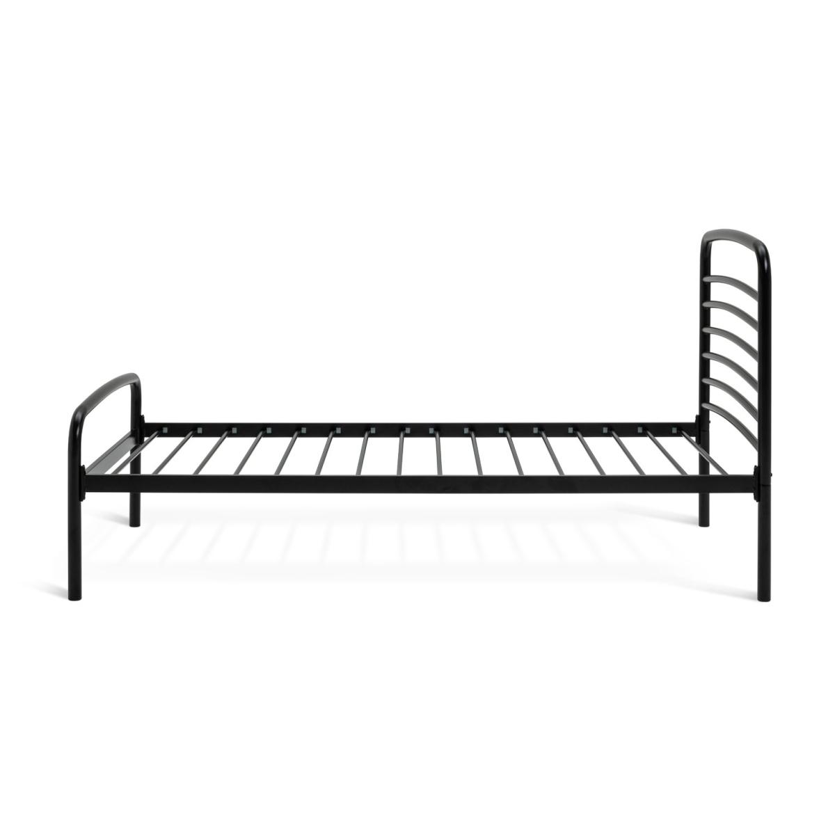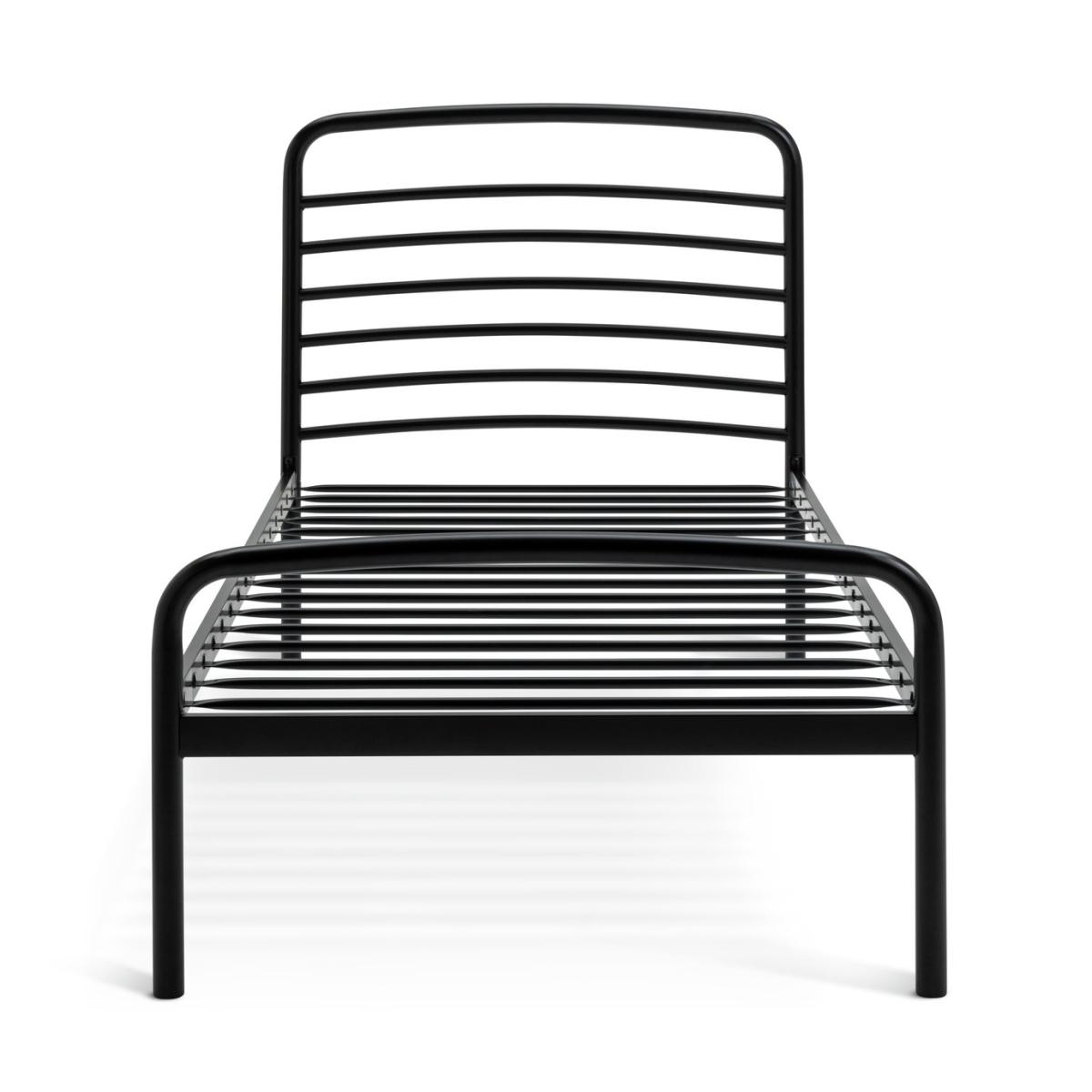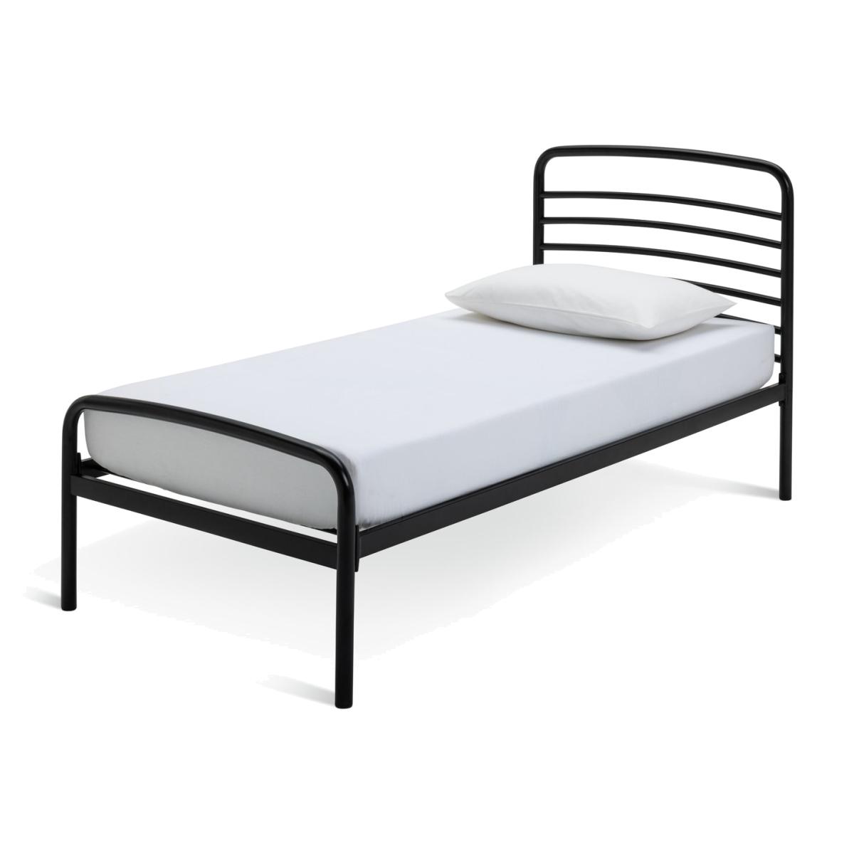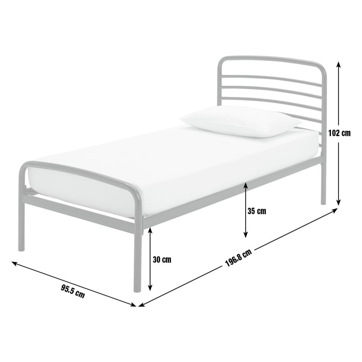 Strong but light. Jubilee is a single bed frame designed for comfort. Look at those soft curves formed from steel. No sharp edges or toe-stubbing corners. A robust bed frame made with the luxury of sweet sleeping in mind. Plump your pillow against the headboard and tuck in. Part of the Jubilee collection. Metal frame. Metal feet. Base with metal slats. Size W95.5, L196.8, H102cm. Height to top of siderail 35cm. 30cm clearance between floor and underside of bed. Weight 14.3kg. Total maximum user weight 110kg. Self-assembly - 2 people recommended. General Information: Manufacturer's 2 year guarantee.