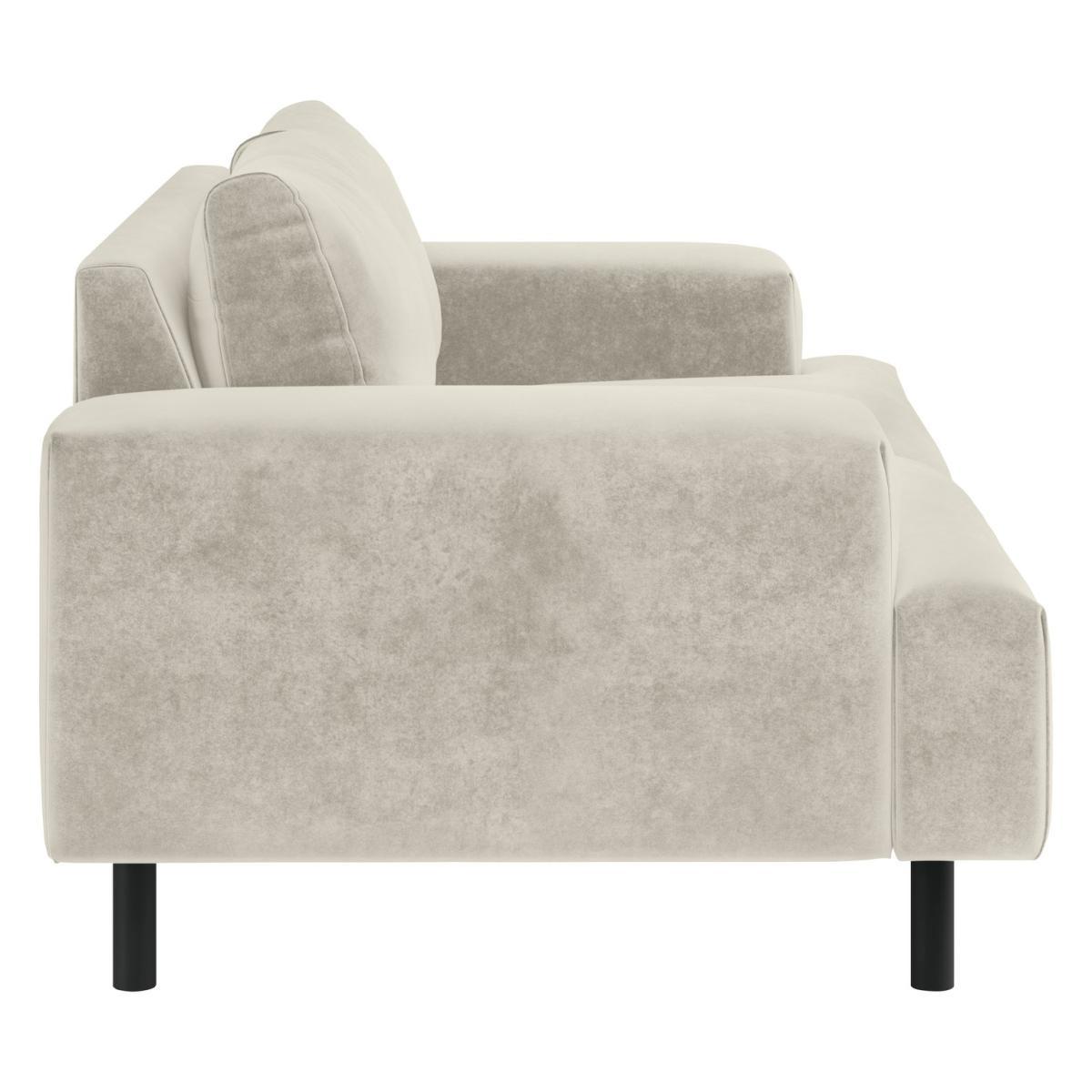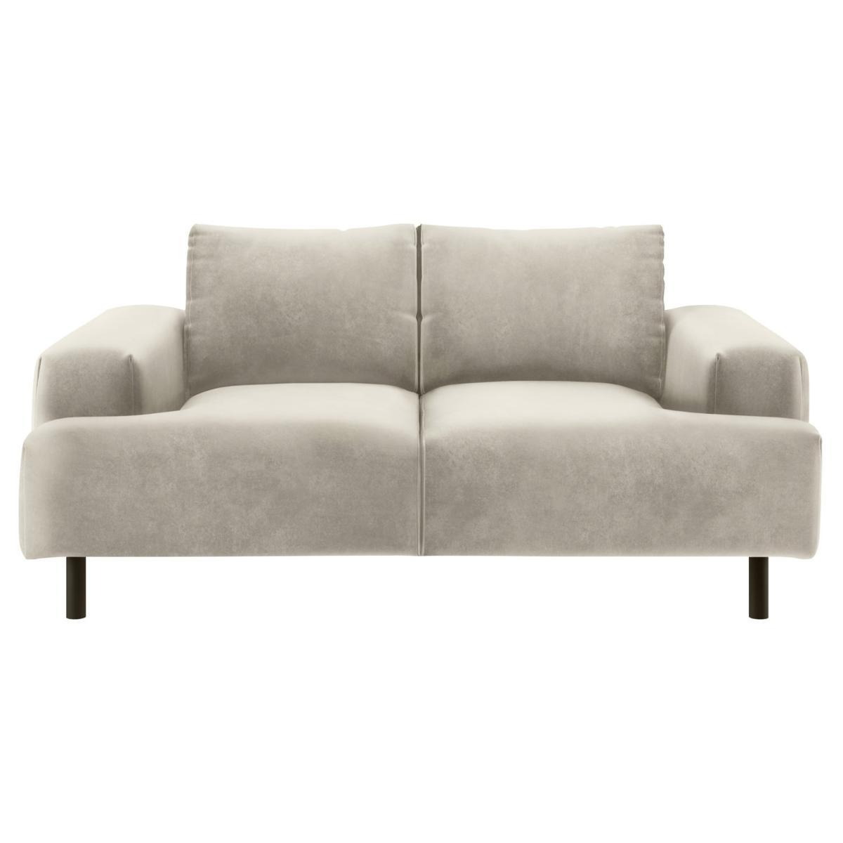 I love this sofa for its clean, modern look combined with the luxe feel of velvet, which adds warmth and texture to a space. The natural colour makes it versatile, working well in both contemporary and Scandinavian-inspired interiors, especially when paired with soft neutrals or earthy tones. Practical styling tips include adding cosy cushions in contrasting textures or colours to create visual interest, and positioning it near natural light to enhance its plush fabric. Its compact size makes it ideal for smaller living rooms or as an inviting seating option in open-plan spaces, while the simple silhouette allows it to blend seamlessly with a range of decor styles.