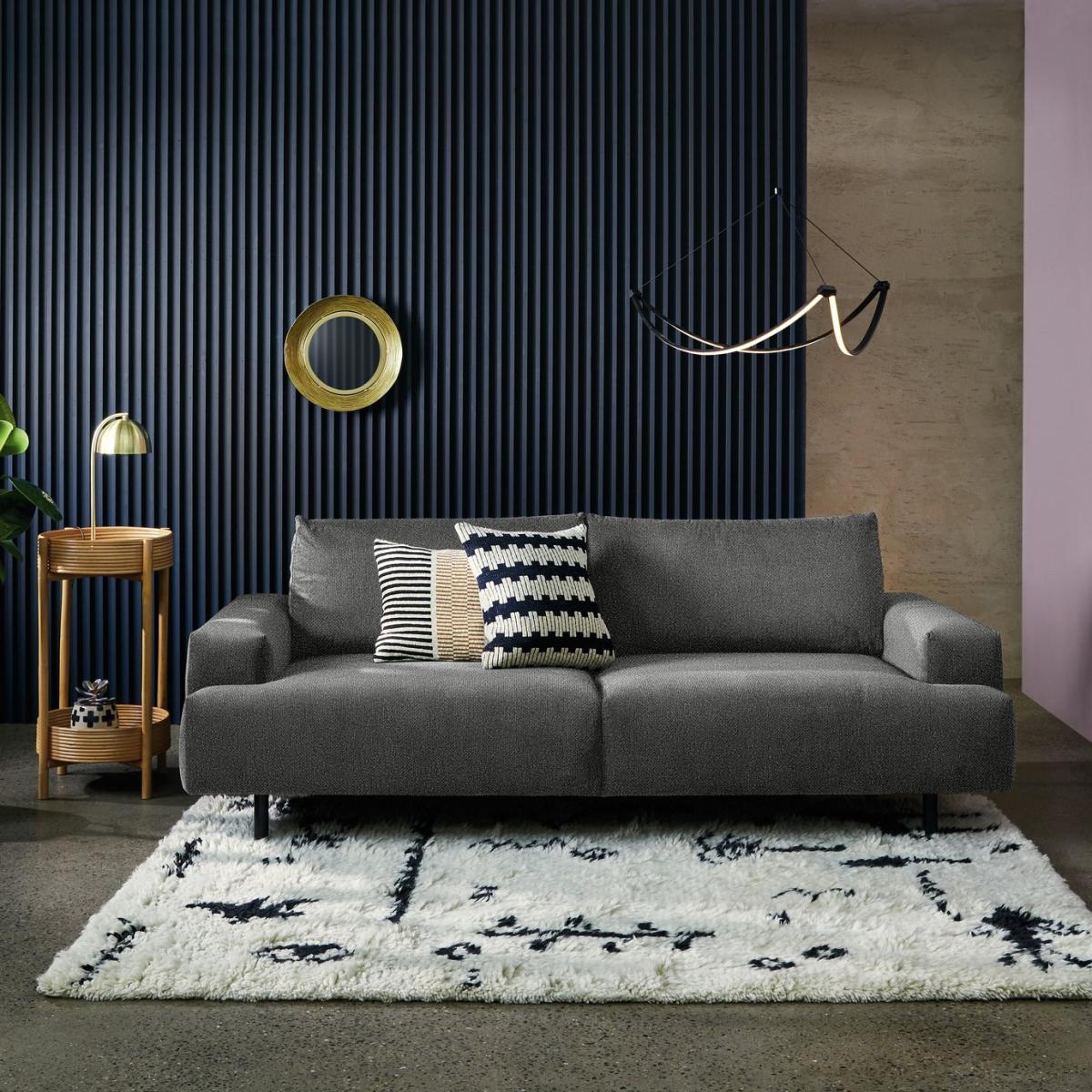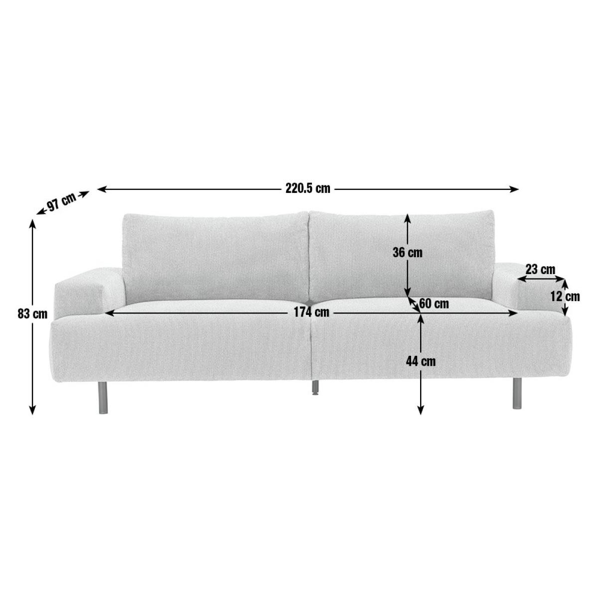 Armed with city living charm. Julien's generous dimensions make this one sociable sofa. Race to the lounge to nab the prime spot. Once you're seated, you'll discover the foam-filled T-shaped seat cushions and foam back cushions offer the utmost comfort and support. Designed inhouse, this Habitat sofa's wide arms and cylindrical legs give it a real modern edge. Clamber on and nestle down. Part of the Julien collection. Material: Made from 96% polyester and 4% acrylic. Metal feet - black. Medium firm seat cushions. Fixed seats with foam filling. Reversible cushion(s) with fibre filling. Dimensions: Size H83, W220.5, D97cm. Floor to seat height: 44cm. Depth of seat: 60cm. Height of seat back: 36cm. Width of seating area between arms: 174cm. Height of arm rest: 12cm. Weight: 50kg. Packaged dimensions: Package size H58, W224.5, D99cm. General information: FSC certified meaning the materials used for this product are responsibly sourced. Do not clean with abrasives. Plump cushions regularly to maintain shape. Minimal assembly - just add feet. Maximum individual user weight: 110kg. Manufacturer's 2 year guarantee.