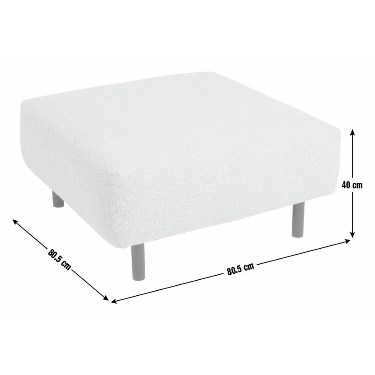 Packed with city living charm. This plump footstool is ideal for popping your feet up and relaxing. Makes a great spare seat too. Fashionably upholstered in subtle cream fabric, it's designed with pocket springs for a cosy cushioned perch. Softly rounded with cylindrical black legs it has a comfortably modern vibe. Part of the Julien collection. Material: Made from 96% polyester and 4% acrylic. Steel feet. Fixed cushion(s) with foam filling. Dimensions: Size H40, W80.5, D80.5cm. Weight: 12.5kg. General information: Dust or wipe with a damp cloth only. Minimal assembly - just add feet. Maximum individual user weight: 110kg. Manufacturer's 2 year guarantee. Packaged dimensions: Package size H31, W82, D82cm.