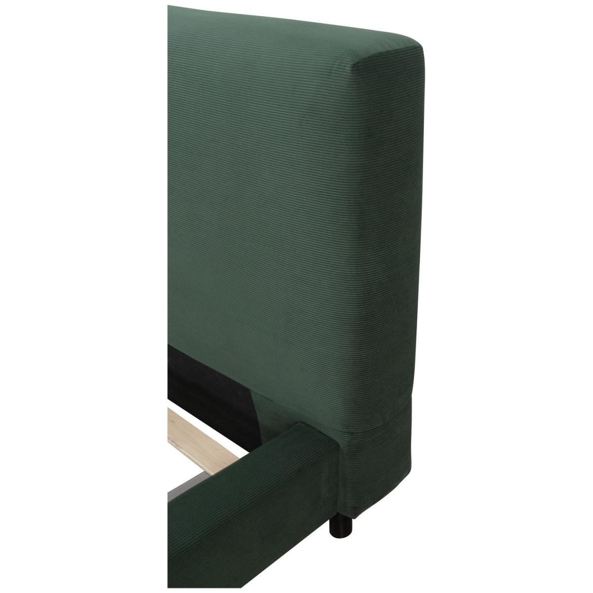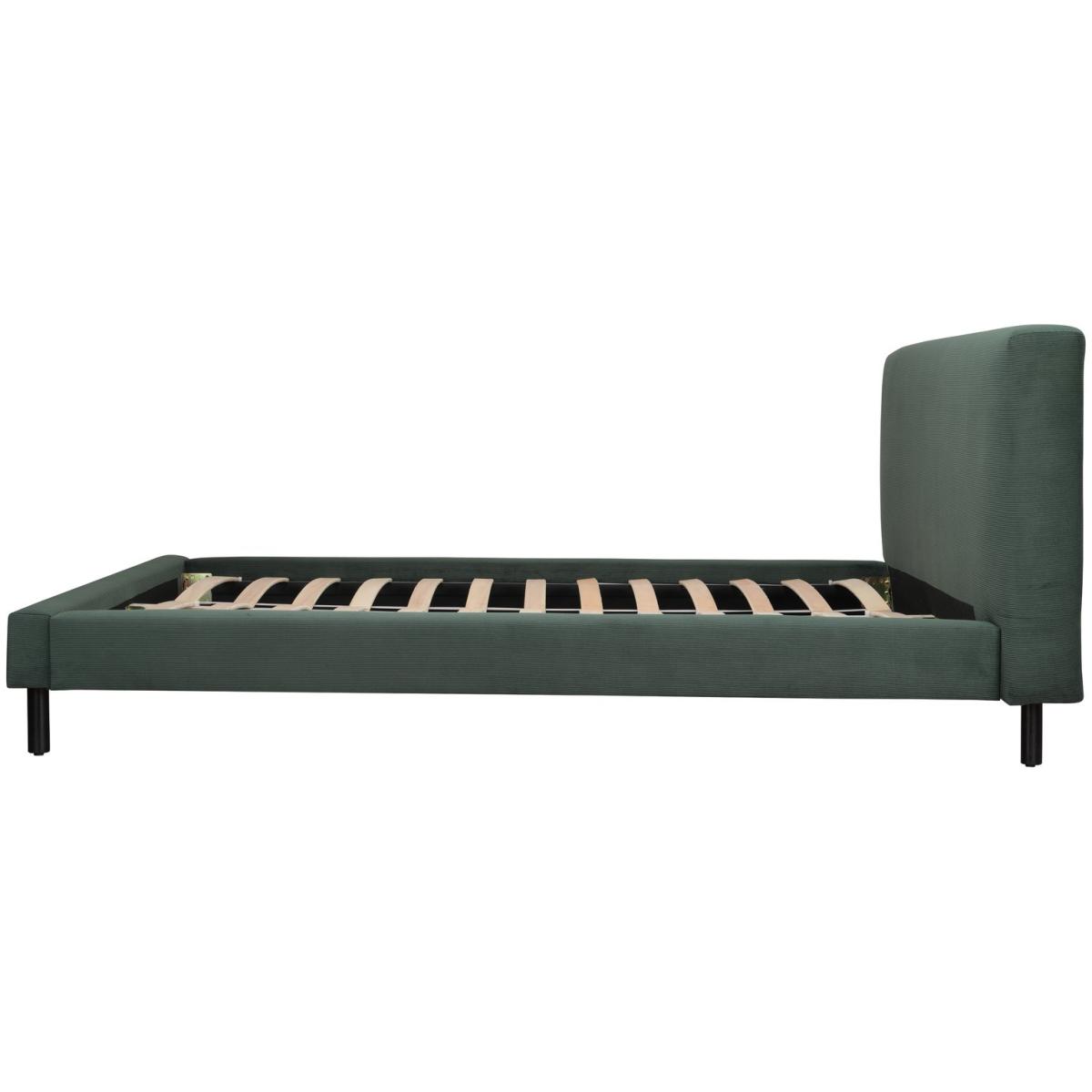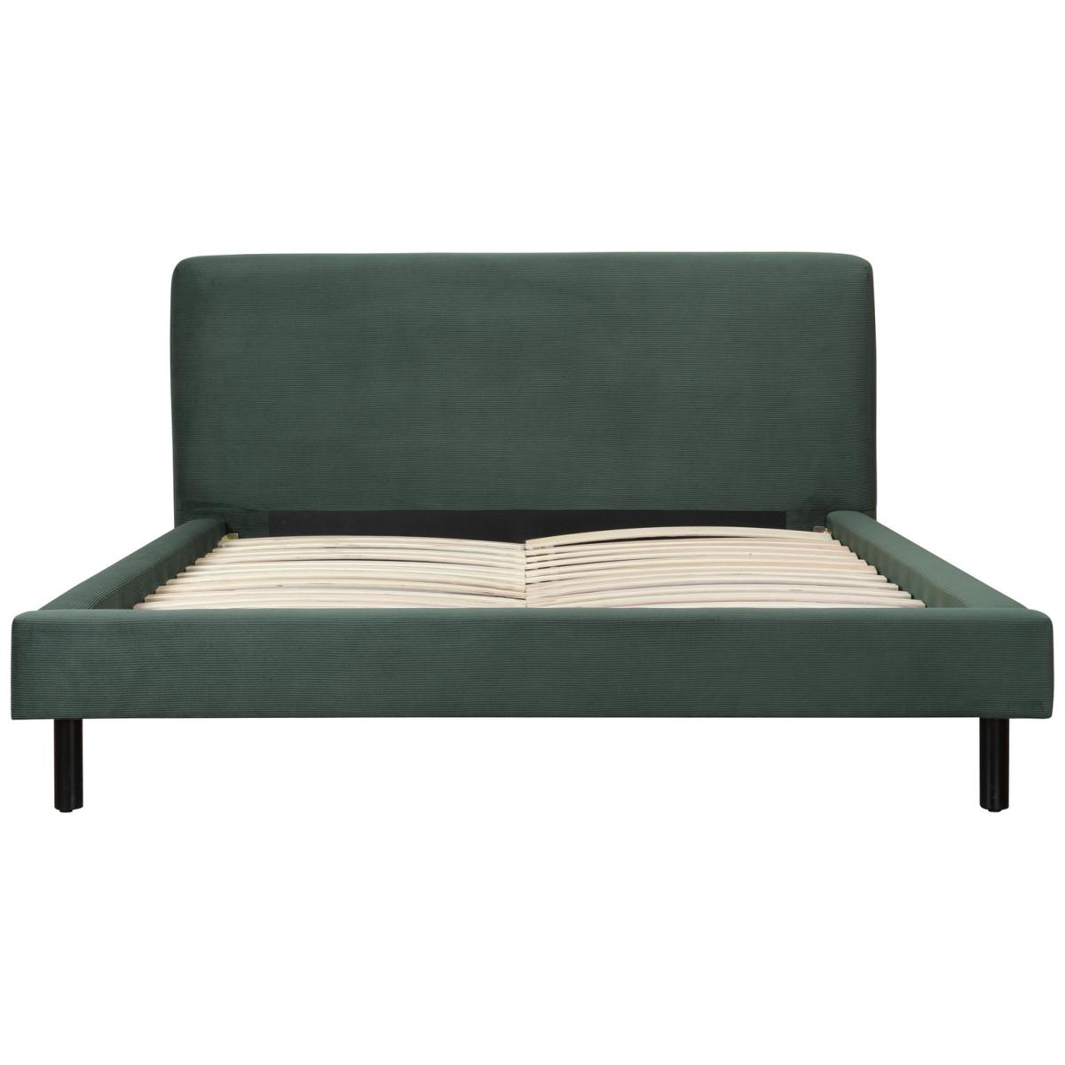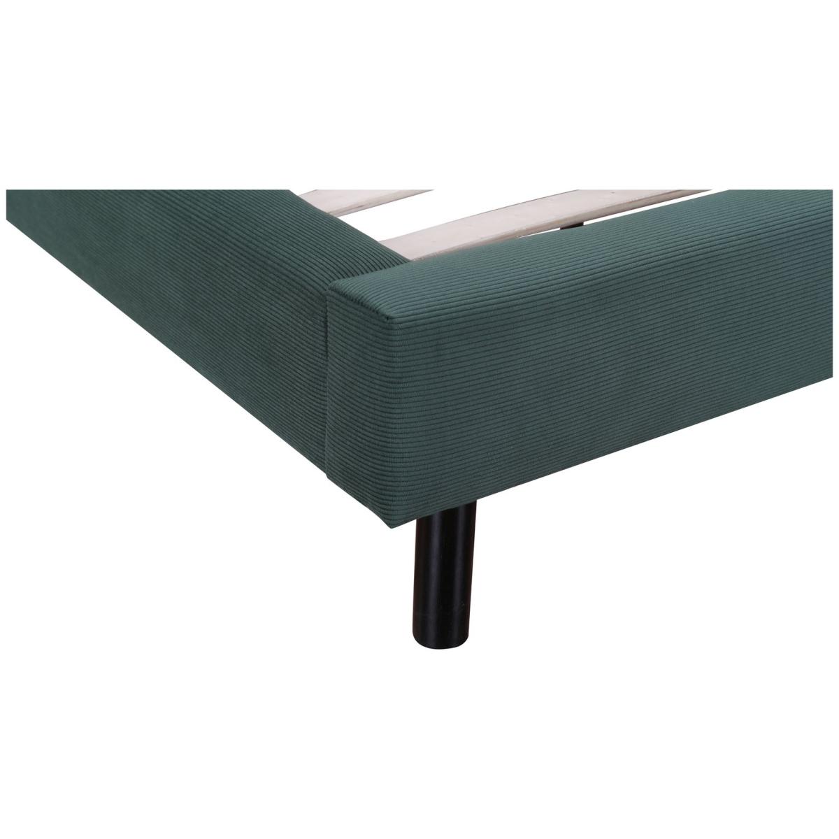 Our Julien kingsize bedframe exudes quiet modern luxury. The impressive, padded headboard invites you to lean back and relax. Upholstered by hand, the rich ribbed green velvet fabric is irresistibly tactile. Underneath sprung wooden slats offer comfortable, ventilated support. Black wooden legs complete this fine design. Velvet with distinct channels that bring a refined touch to classic bed design. Part of the Julien collection. Upholstered frame. Velvet fabric - 100% polyester. Wooden feet. Base with sprung wooden slats. Size W179, L227.5, H91cm. Height to top of siderail 26.5cm. 14.5cm clearance between floor and underside of bed. Weight 53.4kg. Total maximum user weight 220kg. Self-assembly - 2 people recommended. Package Dimensions: Package 1 dimensions: H19, W182, D83.5cm. Package 1 weight: 28.3kg. Package 2 dimensions: H16.5, W211.5, D36cm. Package 2 weight: 33.8kg. General Information: Manufacturer's 1 year guarantee. FSC certified meaning the materials used for this product are responsibly sourced.