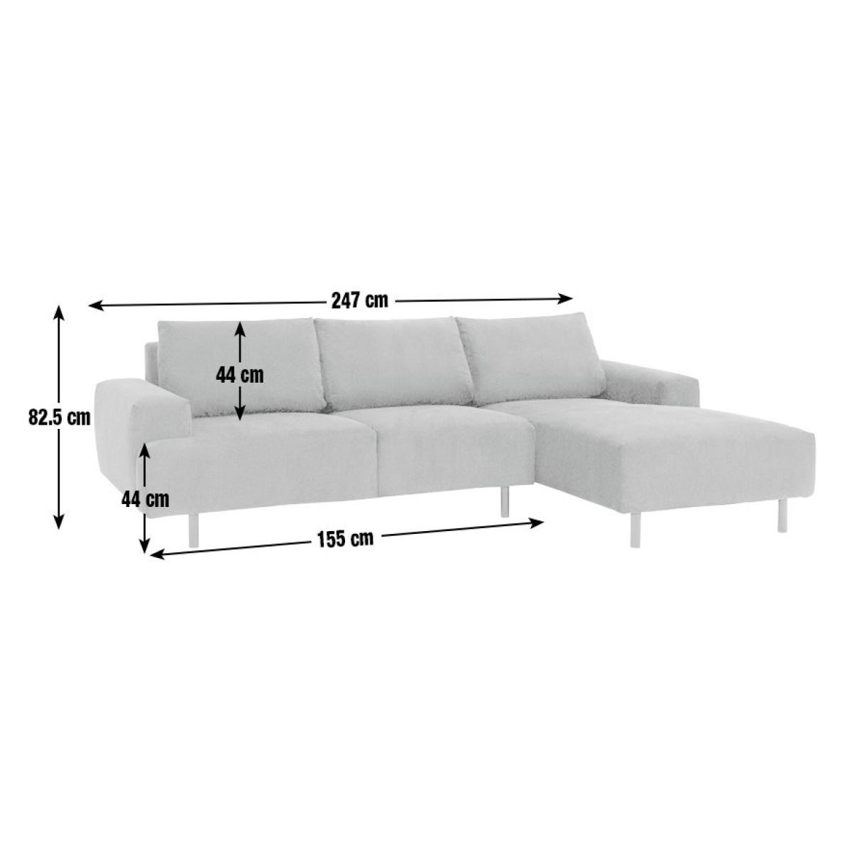 Designed in-house, Julien's generous dimensions are made for luxe chaise lounging. Clamber on and nestle into the foam filled T-shaped cushions and foam filled seating. Total comfort. Wide arms and cylindrical legs give Julien a modern edge. And who's going to nab the stretch out spot? Better be quick. Want more? No problemo. Julien has matching pieces to fall in love with. Part of the Julien collection. Right hand corner. Material: Velvet fabric - 100% polyester. Metal feet. Fixed seats with foam filling. Reversible cushion(s) with fibre filling. Free fabric swatch available on this line. Dimensions: Size H82.5, longer width 247,. Floor to seat height: 44cm. Depth of seat: 128.5cm. Height of seat back: 44.5cm. Shorter seating area width between arms: 92cm. Longer seating area width between arms: 155cm. Height of arm rest: 56cm. Overall weight 71.4kg. Wipe clean or lightly vacuum. Minimal assembly. Maximum individual user weight 120kg. Packaged dimensions: Package size H57, W167, D98cm. Second package size H57, W93, D168cm. General information: Manufacturer's 10 year frame guarantee.
