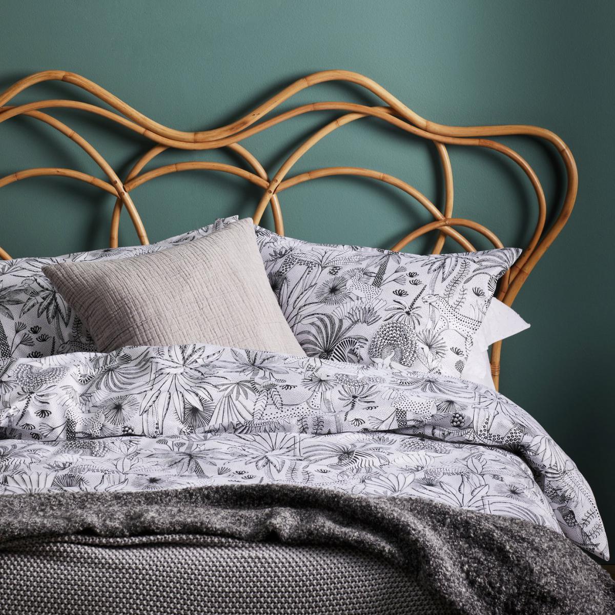 Dreaming of distant lands. Our Jungle bedlinens feature a black and white print of jungle plants for a quirky, chic look. 100% cotton and a 180-thread count makes them cosy to sink down into at the end of the day. Jungle fits with any decor style from natural to monochrome to Scandi. And this great value kingsize set comes with 2 pillowcases and a duvet cover.