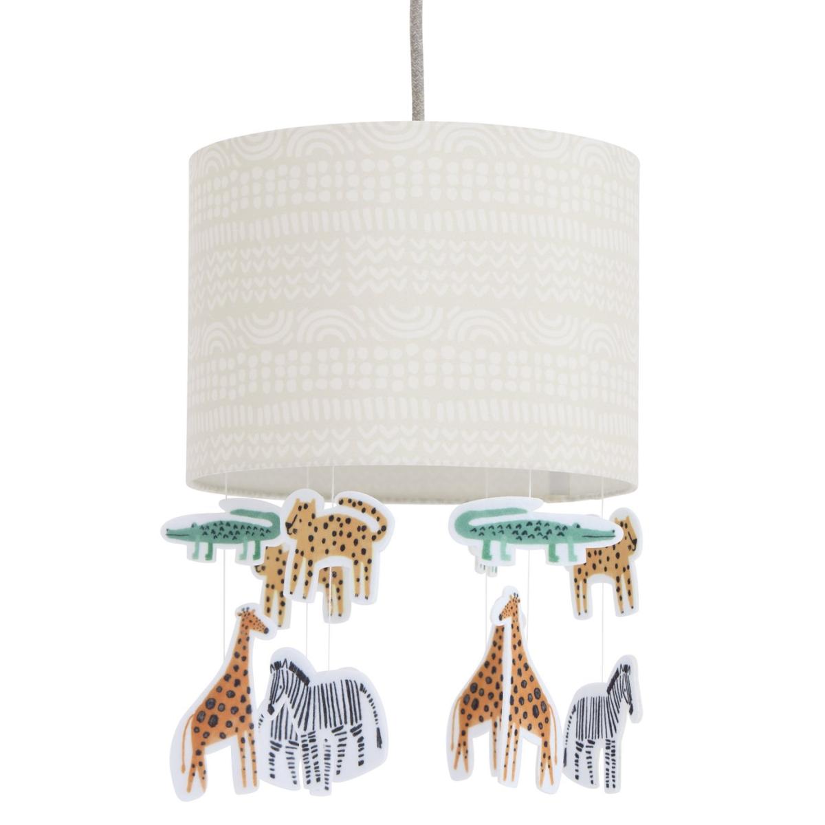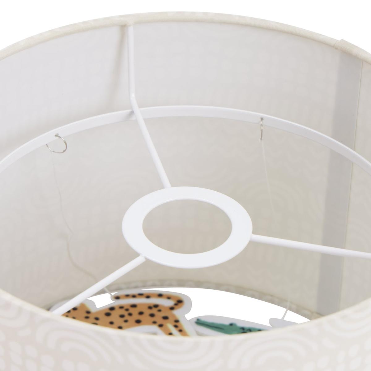 Go a little wild. This lampshade is brought to life by the playful jungle creatures hanging below. Turn the light on and shadows dance on the walls. It's like a mini safari that can turn story time into an adventure. Great as a fun finishing touch for kids' rooms or play spaces. With a reversible gimbal, it can be hung from the ceiling or popped onto a lamp base. Made from polyester. Size H35cm, Diameter 25cm. Recommended maximum bulb wattage 15 watts. Fully assembled. Easy fit shade. Manufacturer's 1 year guarantee.