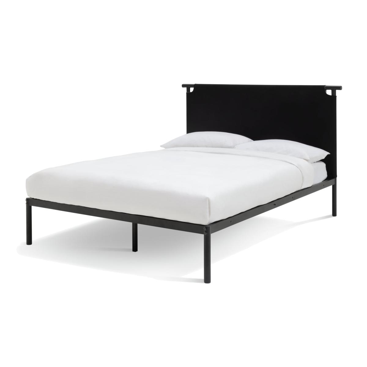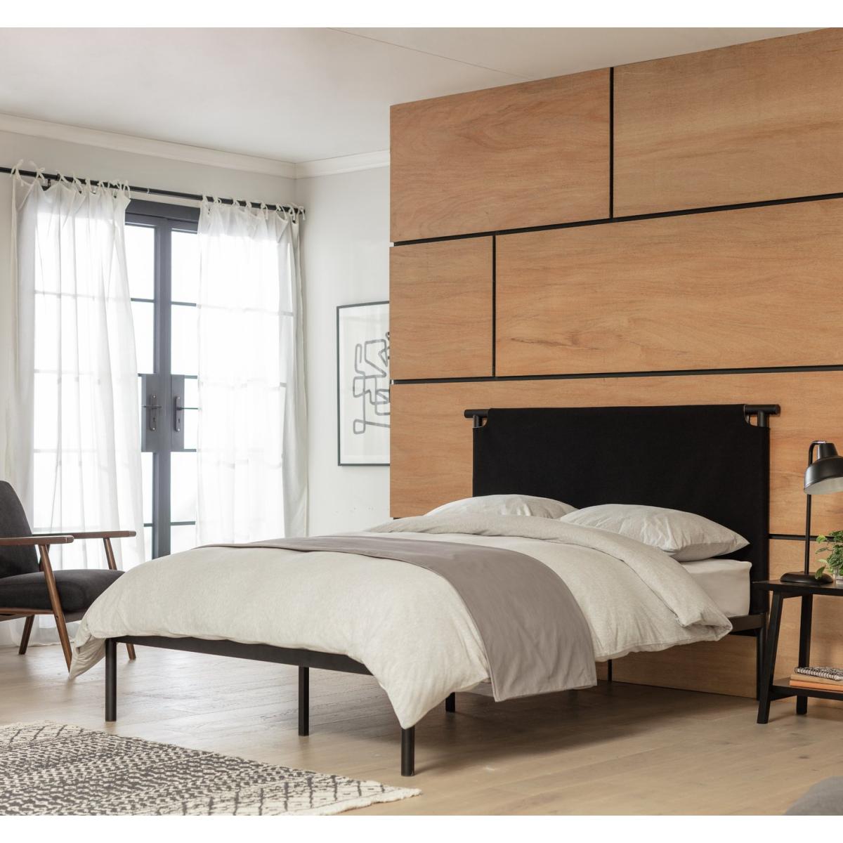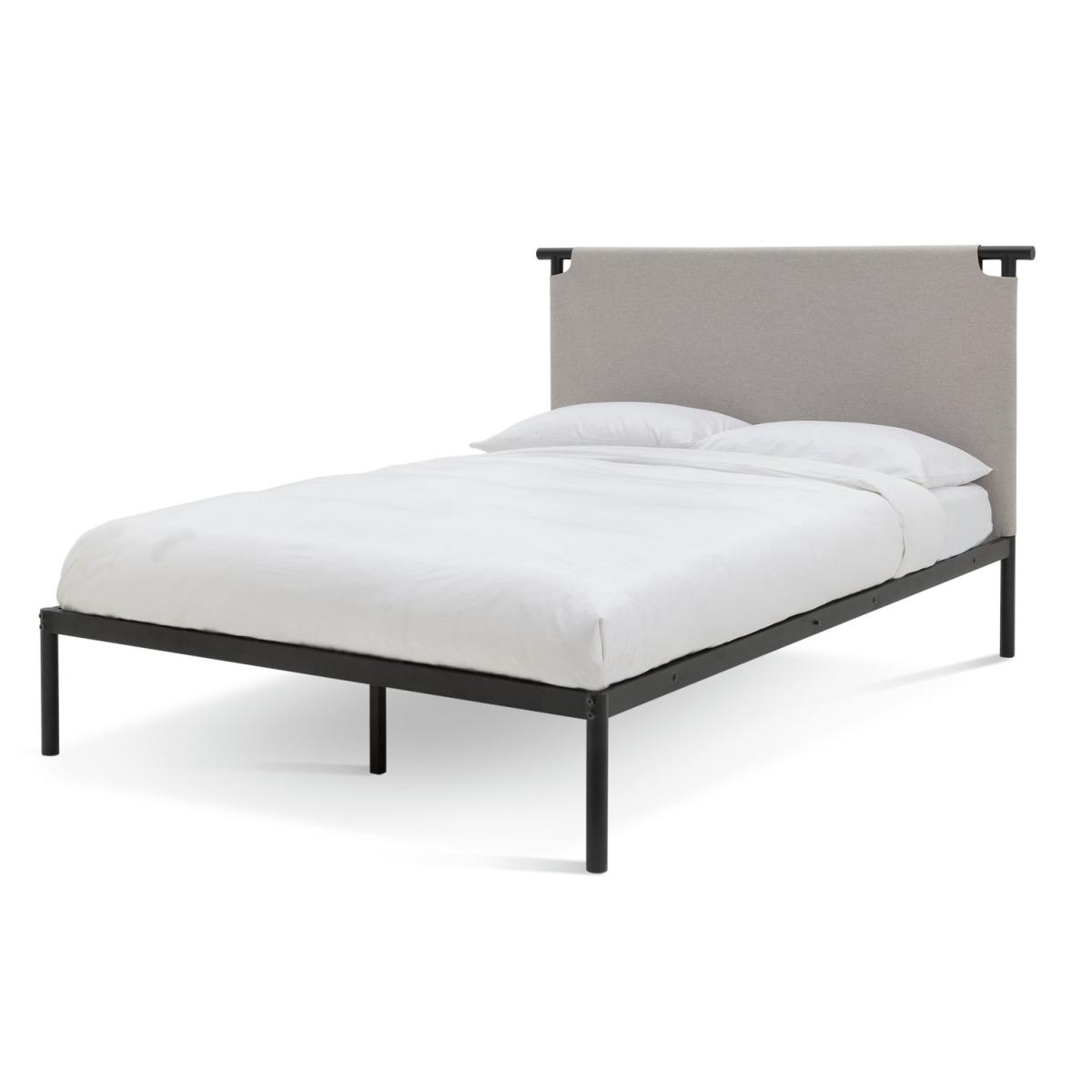 End your day on a high with Kai. A modern metal bed designed to let you change the colour scheme at a whim. Summer, winter or just a change of mood, you can reverse the soft fabric headboard from dark to light in minutes. With central metal legs and slats for mattress support and aeration, Kai offers a strong frame combined with softness where it matters. Easy, flexible and modern. Soft touch woven fabric with ubtley flecked weave. Part of the Kai collection. Painted frame. Flat weave fabric - 100% polyester. Metal feet. Base with metal slats. Size W151, L200, H110cm. Height to top of siderail 32cm. 27cm clearance between floor and underside of bed. Weight 20.7kg. Total maximum user weight 220kg. Self-assembly - 2 people recommended. General Information: We are excited to be welcoming some of our favourite HOME products into the Habitat range. Your product may arrive in Habitat or HOME packaging. Manufacturer's 2 year guarantee.