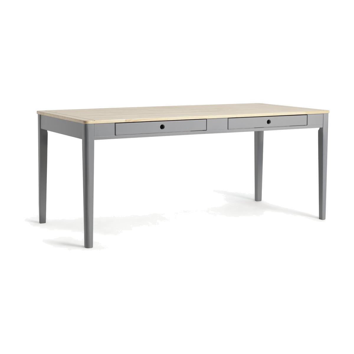 Family feast? Gather round our 6-seater dining table with built-in storage. Crafted from solid wood and veneer with a modern grey painted finish, it's serving contemporary country charm. Great for smaller spaces with its slim, streamlined frame and tapered legs. And the 2 drawers mean you can keep things neatly tucked away, like cutlery, napkins, and tablemats. Neat. Let's eat. Complete the look. Pull up a chair or 6 from our dining furniture collection. Part of the Kalle collection. Table: Table size: H75, L180, W84cm. Solid wood table with solid wood legs. Solid wood table top finish. Self-assembly - 2 people recommended. Weight of table 31kg. Package Dimensions: Table packaging size: H15, W190, D92cm. General information:We are excited to be welcoming some of our favourite HOME products into the Habitat range. Your product may arrive in Habitat or HOME packaging. Manufacturer's 1 year guarantee.