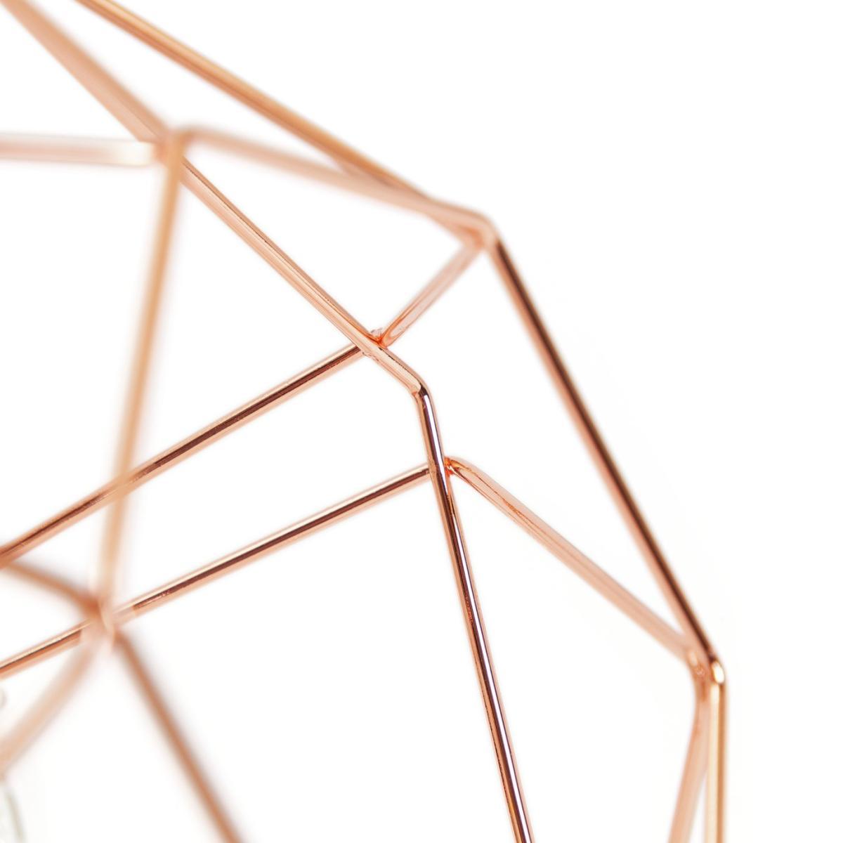 I love this lamp for its contemporary yet tactile appeal; the rose gold finish adds a subtle touch of glamour without feeling over-the-top. Its open cage design makes it versatile - it works beautifully in modern, minimalist interiors as a statement piece or in eclectic schemes where it can add a bit of edge. Practical styling tips include pairing it with neutral or matte finishes to let the metalwork pop, and placing it on a side table or console for a functional focal point. It’s also great for adding ambient or task lighting, particularly in living rooms or bedrooms, where the warm glow enhances cosy moments. Overall, this lamp offers a clever blend of style and practicality that can elevate everyday spaces.