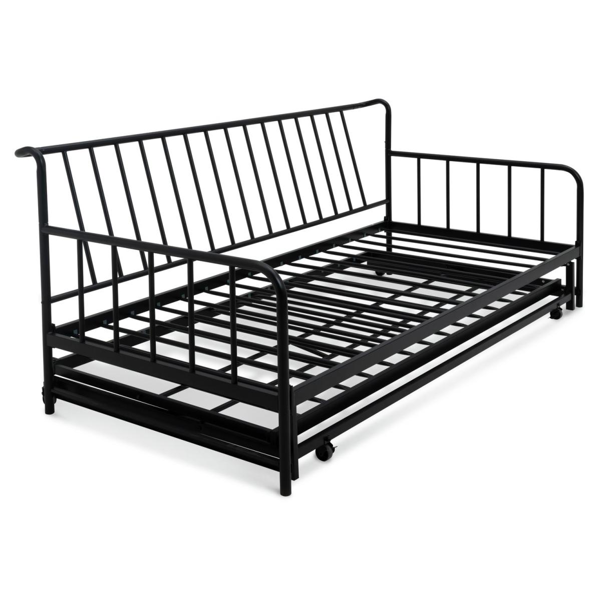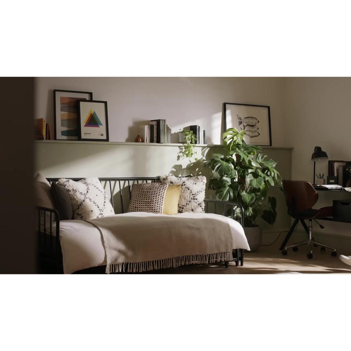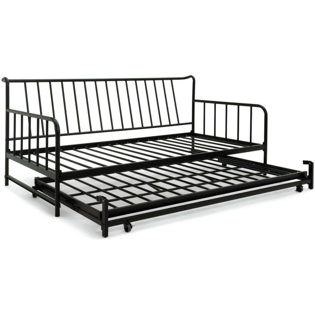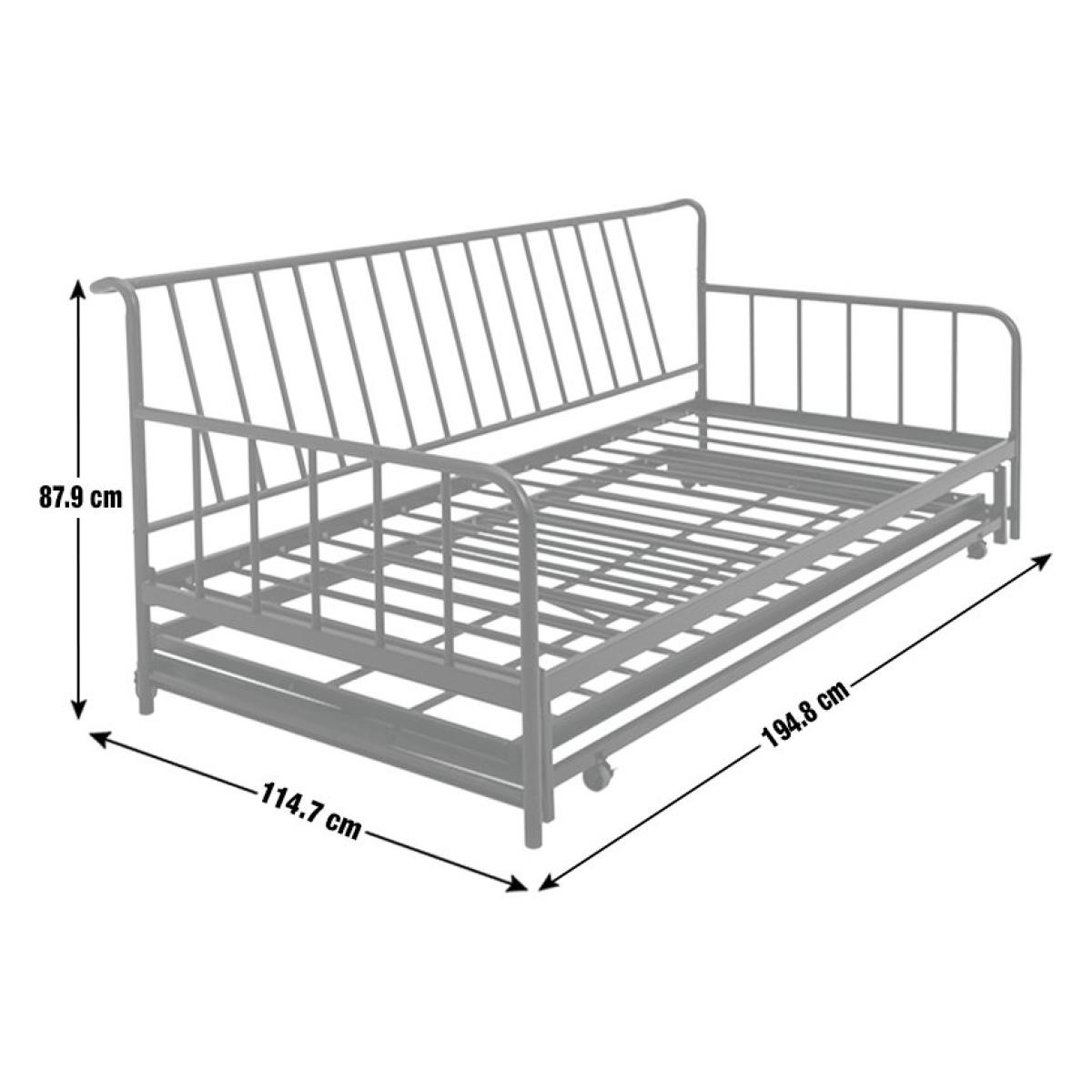 Short on space? Our futon-esque trundle bed frame can be a sofa or overnight sleeper for 2. We're big fans of its space-saving design. Overnighters due? Wheel out the trundle and voila, a twin bed sleep space at the ready. Easy, instant bedtime bliss. Clever Kanso. Now just add mattresses to this clever frame and you're done. We have plenty for you to choose from. Part of the Kanso collection. Metal finish. Model number: 3086430. Supplied with metal slats. Dimensions: Main bed size W114.7, L194.8, H87.9cm. Main bed max. User weight 110kg. Package Dimensions: Package 1 dimensions: H15, W73, D203.5cm. General information: Suitable for everyday use. Self-assembly : 2 people recommended. Manufacturer's 2 year guarantee.