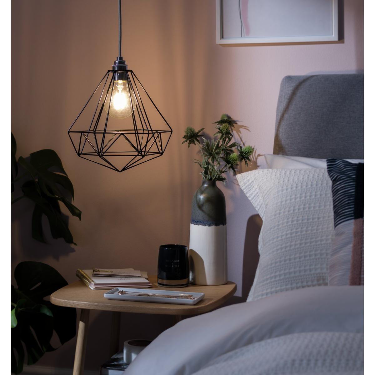I love this wire pendant shade because of its minimalist yet sculptural appeal, making it a versatile choice for a variety of interiors. Its industrial-inspired black finish works particularly well in modern, Scandinavian, or loft-style spaces, adding a touch of edge without overpowering the decor. To style it effectively, I recommend pairing it with warm filament bulbs for a cosy glow, and hanging it over a bedside table or in a corner to create a focal point. It also pairs beautifully with natural materials like wood and greenery, making it a great option for creating a curated, lived-in feel. Its clean lines and open frame make it adaptable for both functional task lighting and decorative statement lighting.